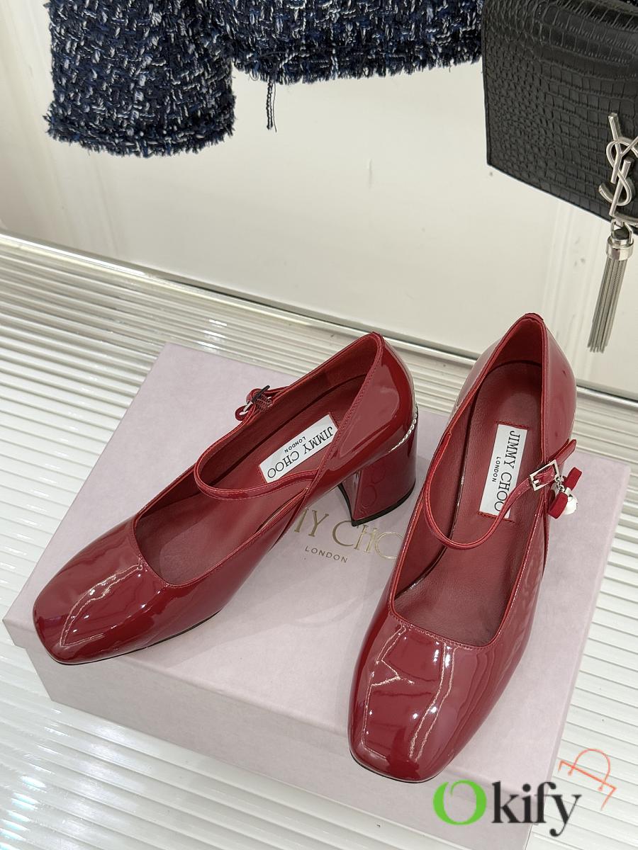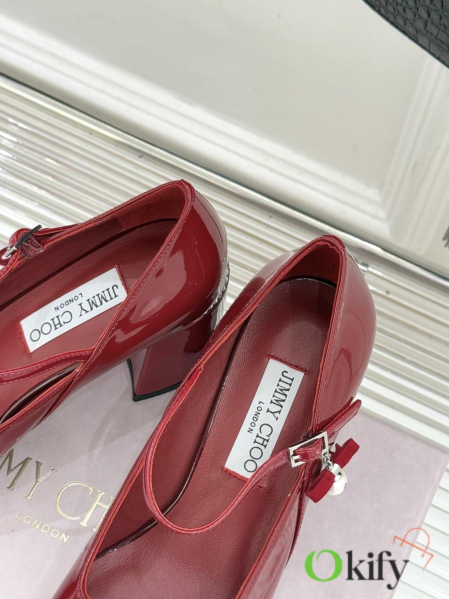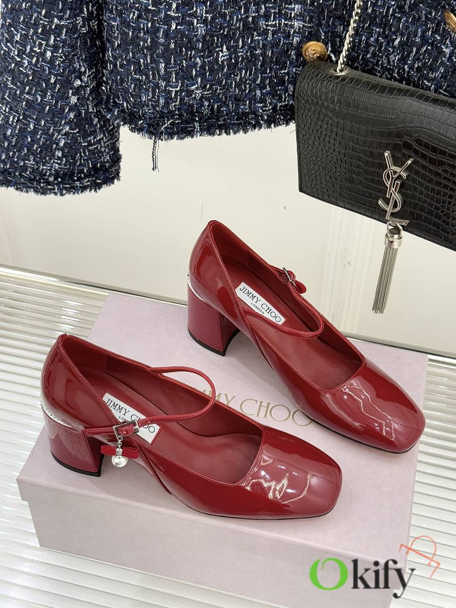 Okify Jimmy Choo Red Mary Jane Heels With Pearl