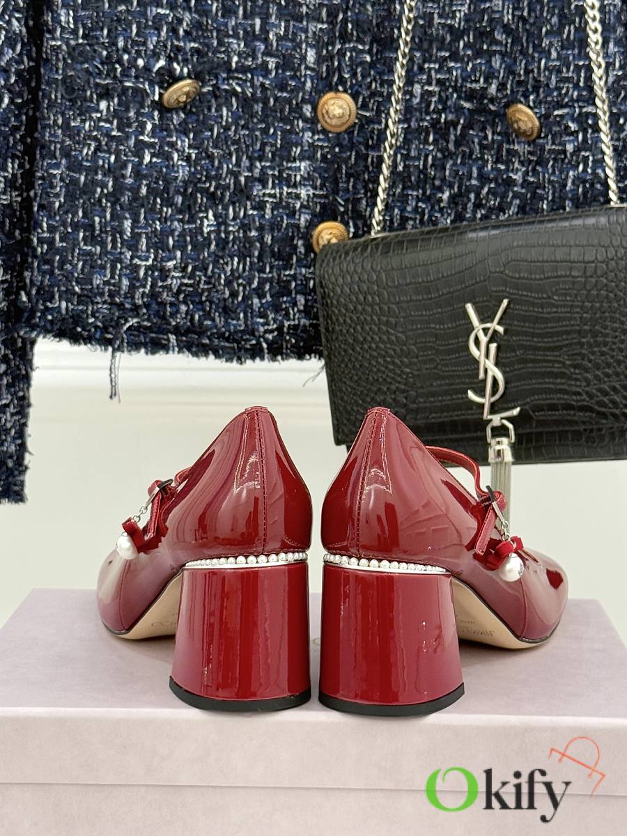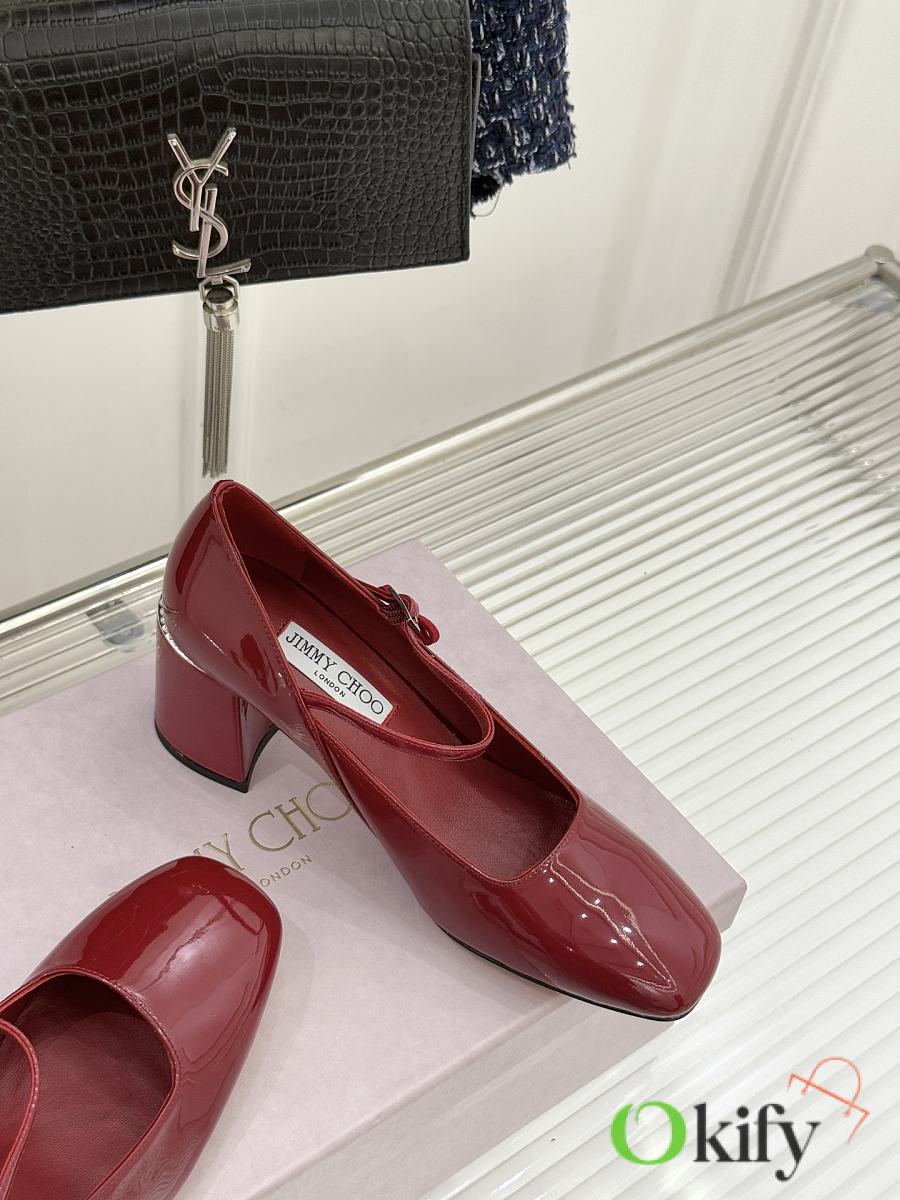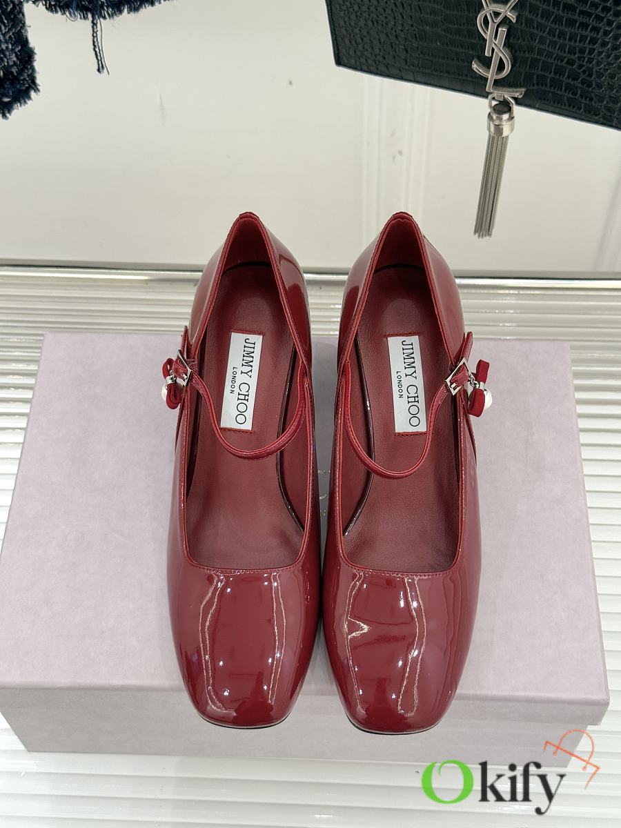 Okify Jimmy Choo Red Mary Jane Heels With Pearl
