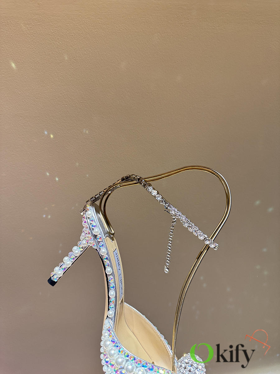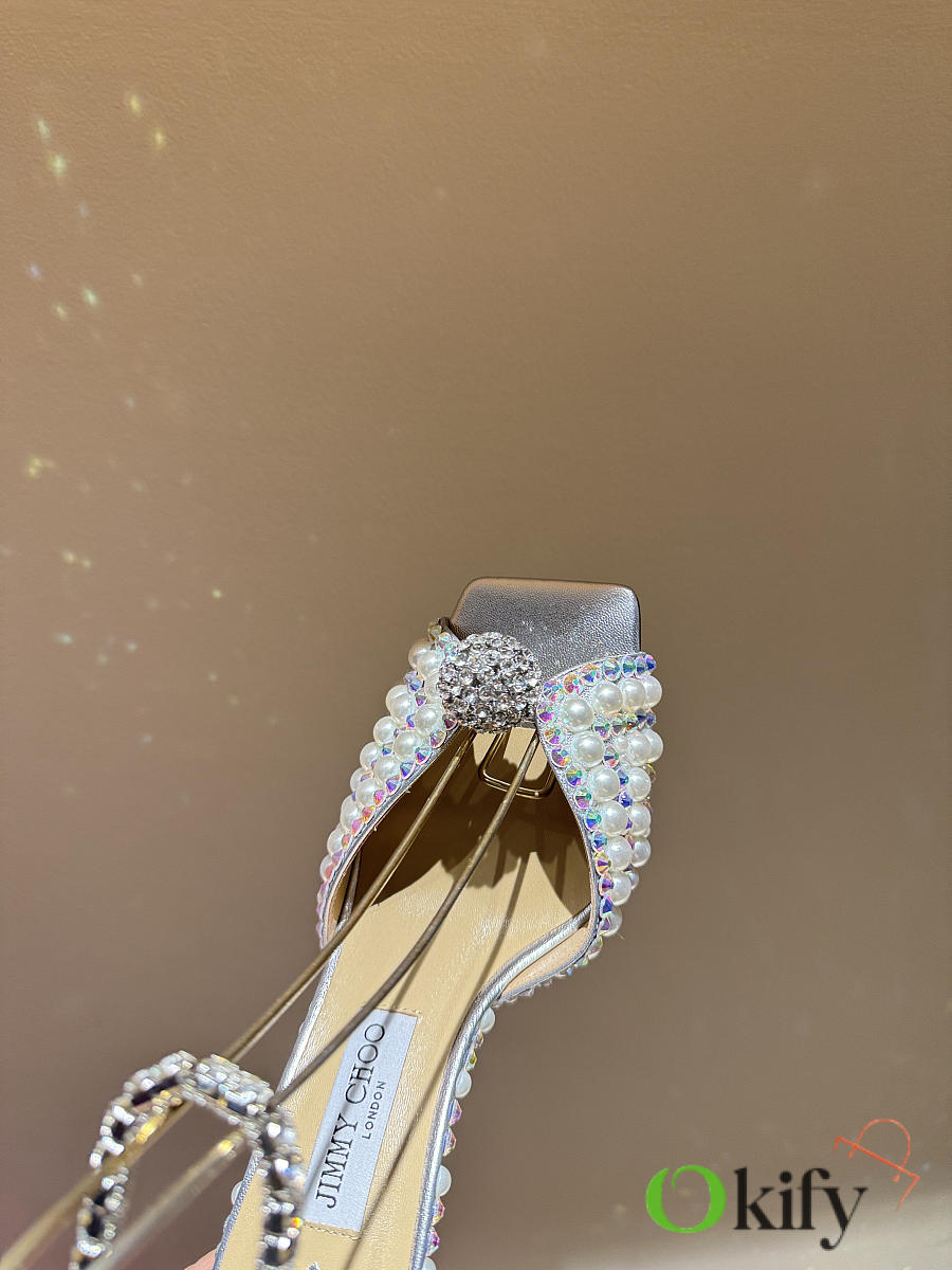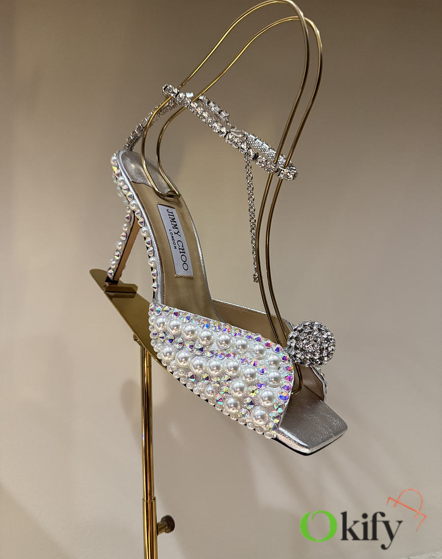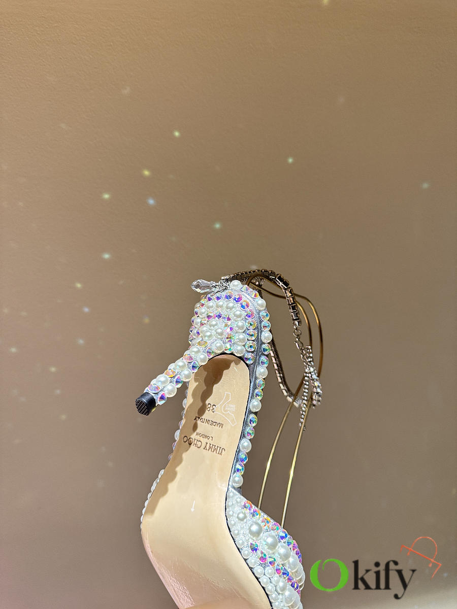 Okify Jimmy Choo Rhinestone Pearl Silver High Heels 8.5cm
