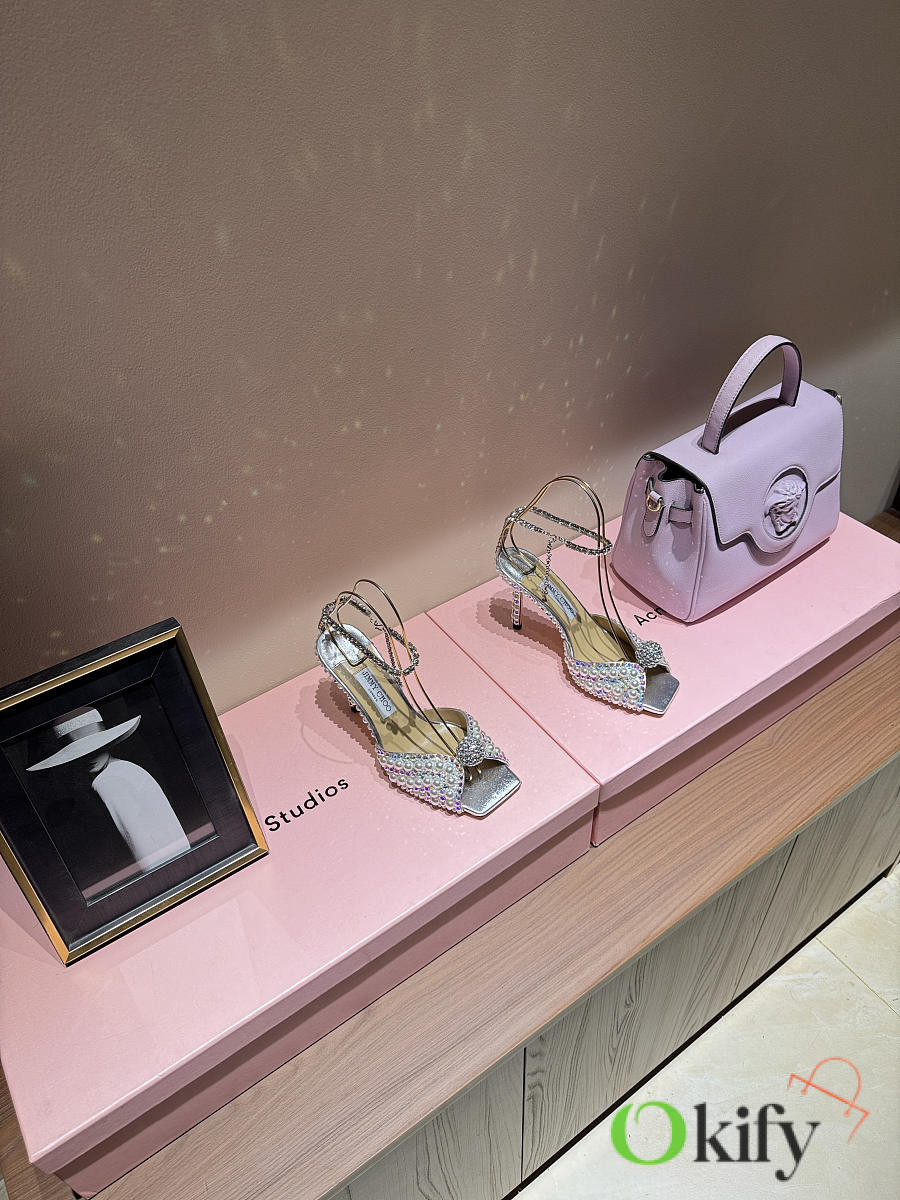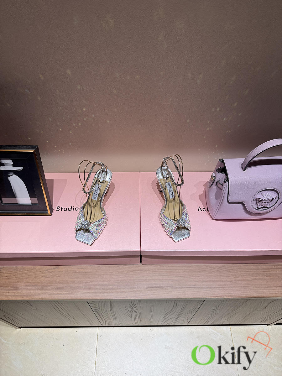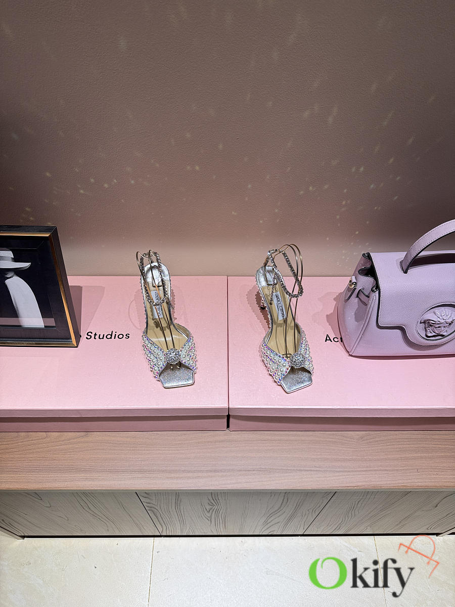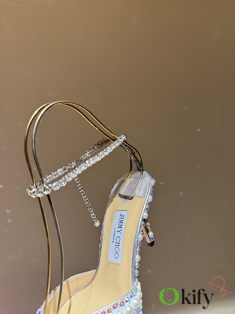 Okify Jimmy Choo Rhinestone Pearl Silver High Heels 8.5cm