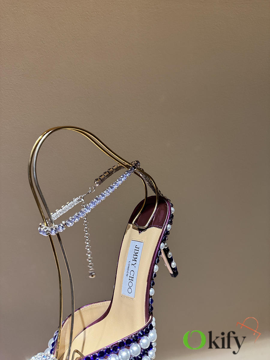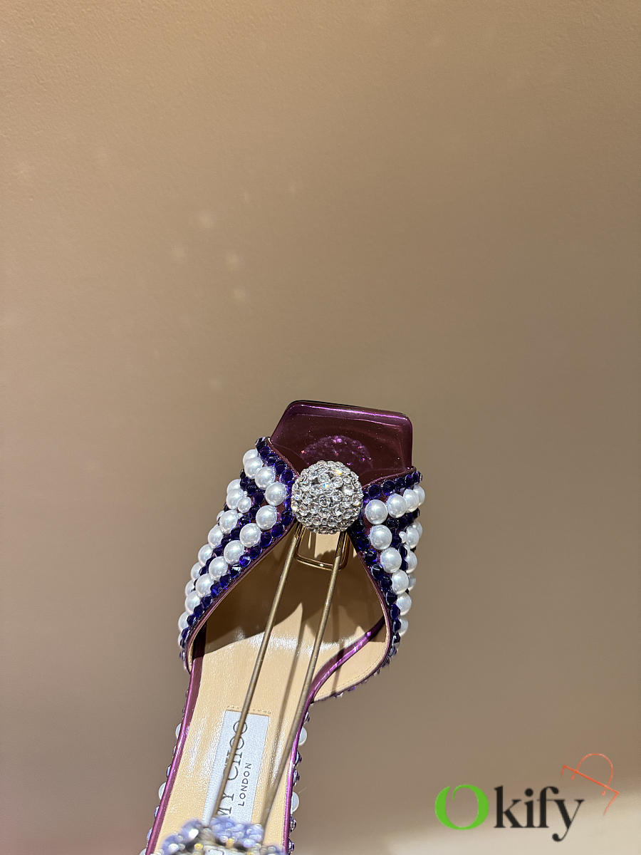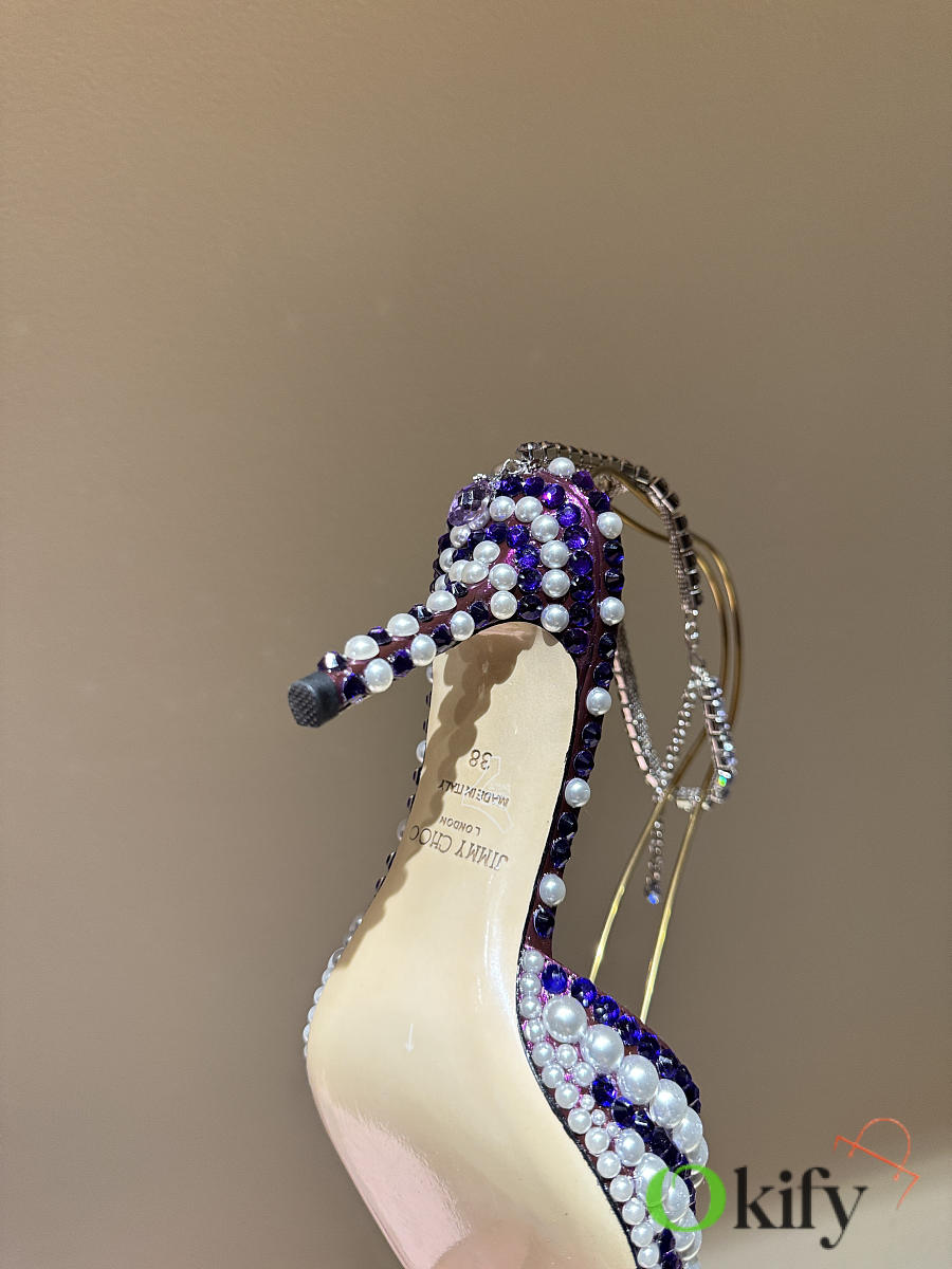 Okify Jimmy Choo Rhinestone Purple High Heels 8.5cm