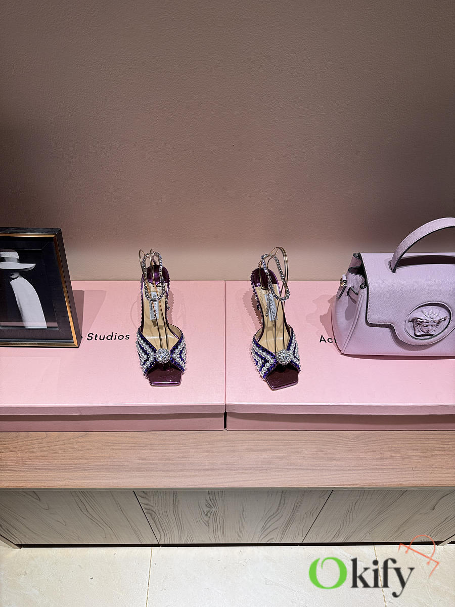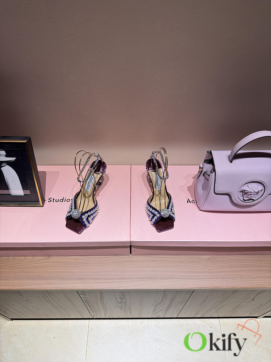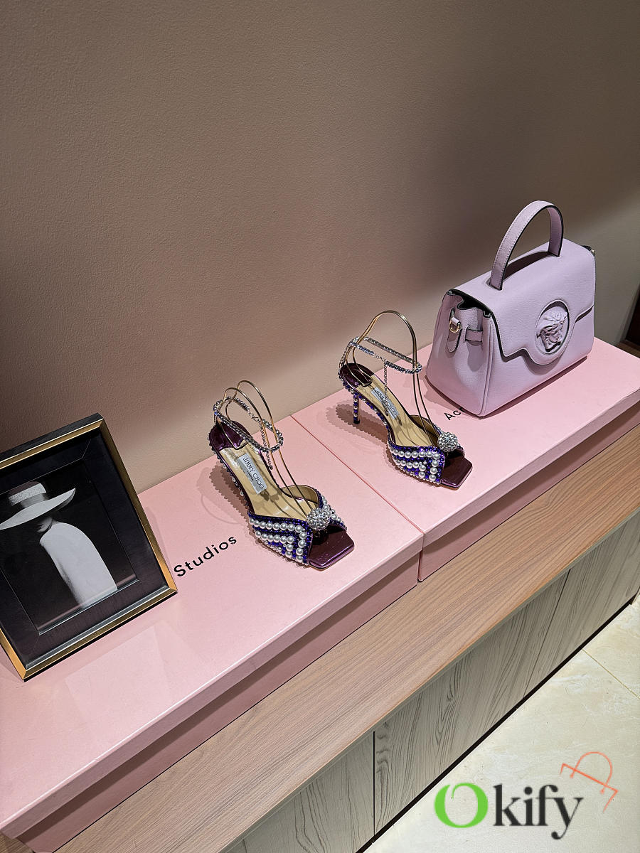 Okify Jimmy Choo Rhinestone Purple High Heels 8.5cm