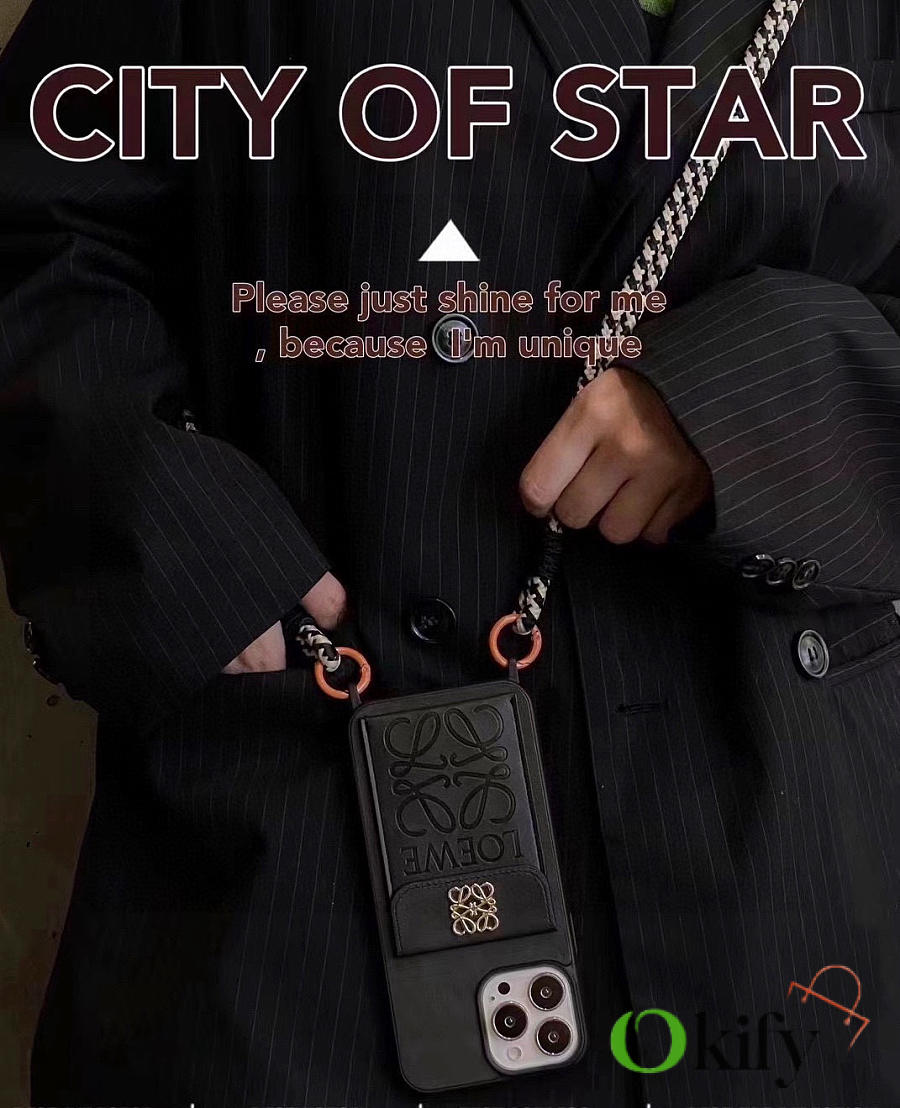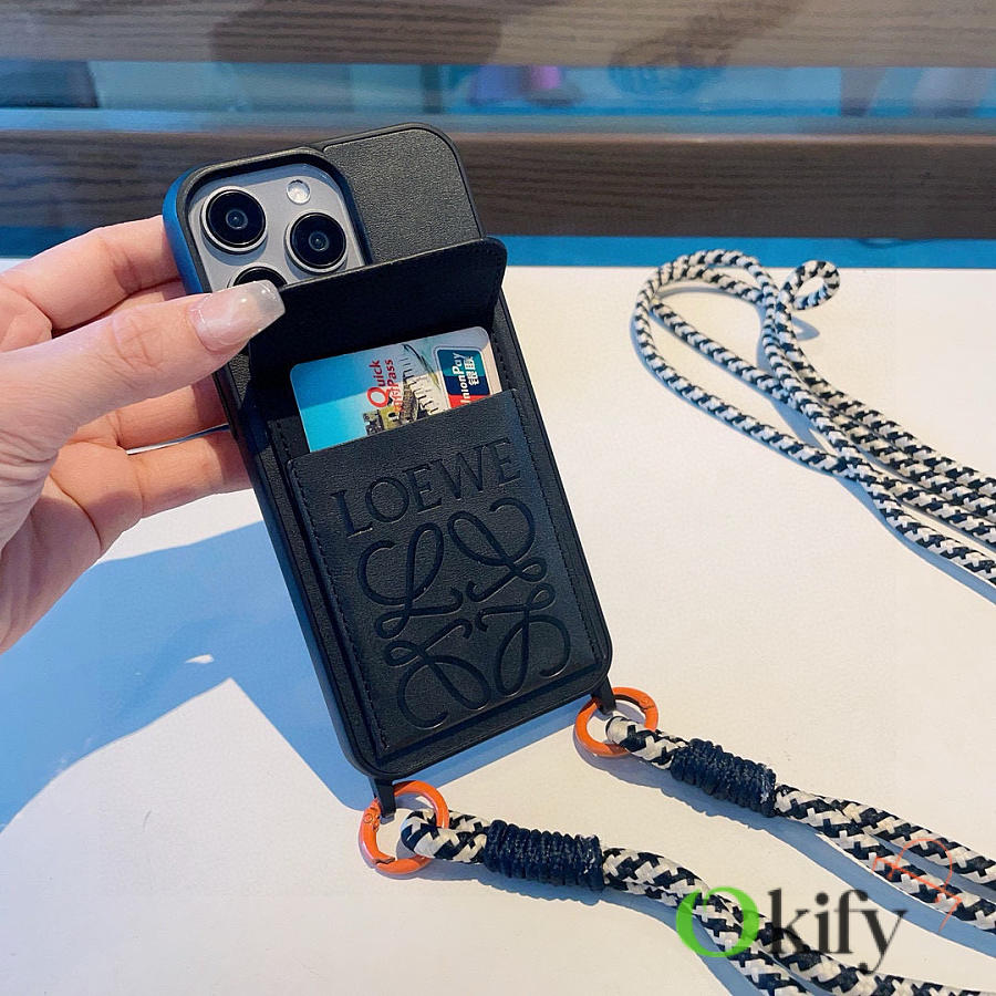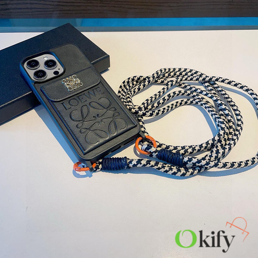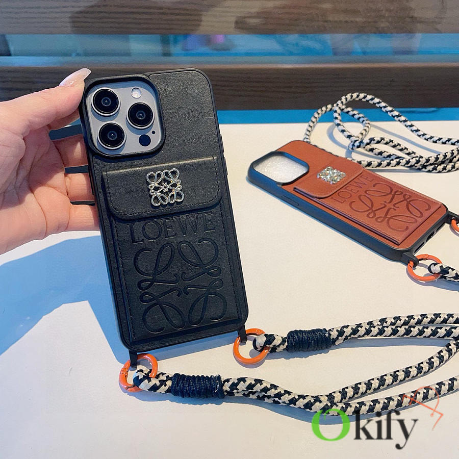 Okify Loewe Black Phone Case With Card Holder And Crossbody Strap