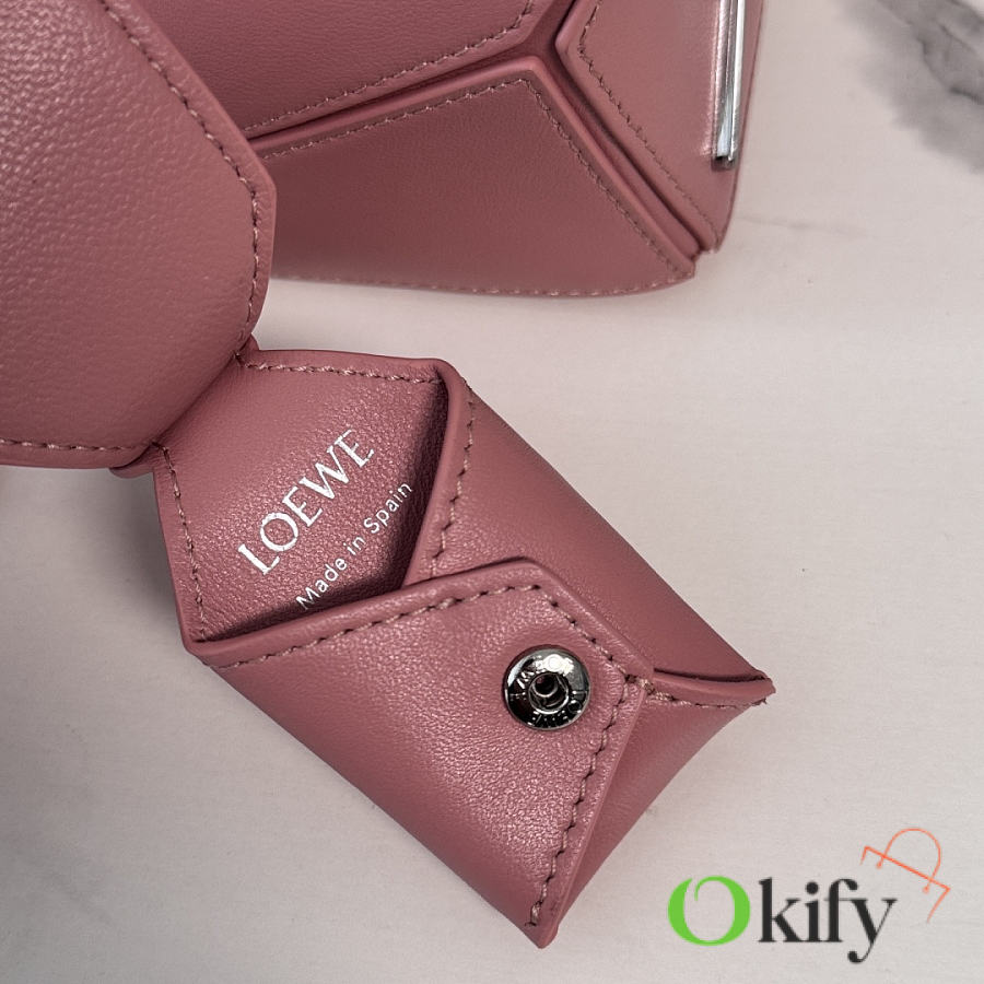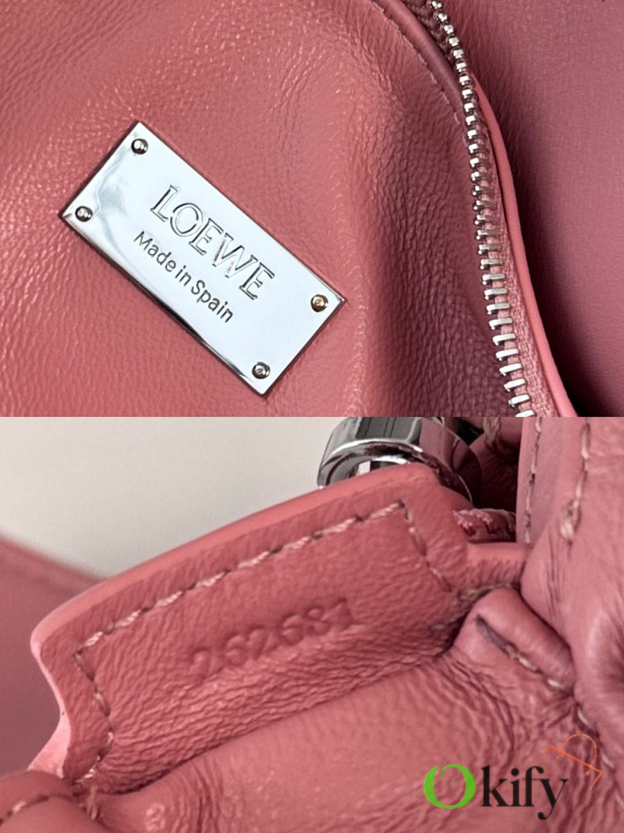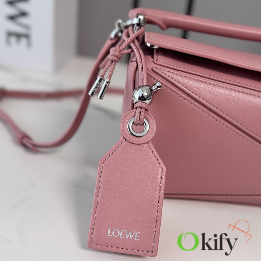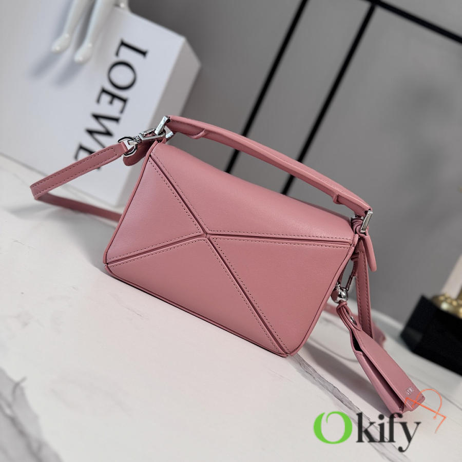 Featherlight Puzzle handbag features a distinctive rectangular shape outlined with geometric lines. The soft, lightweight Nappa leather gives the bag a relaxed, effortless style. It can be carried on the shoulder, crossbody, or by hand. Detachable and adjustable shoulder strap with a rotating buckle* Zipper closure with hinged zipper pull One external zippered back pocket, one internal slip pocket* Detachable LOE**WE gold or silver foil tag, featuring a concealed pocket and balloon dice* Rectangular metal feet Nappa lambskin leather lining Anagram embossing, plaque engraved with LOE**WE. Model: 062511
