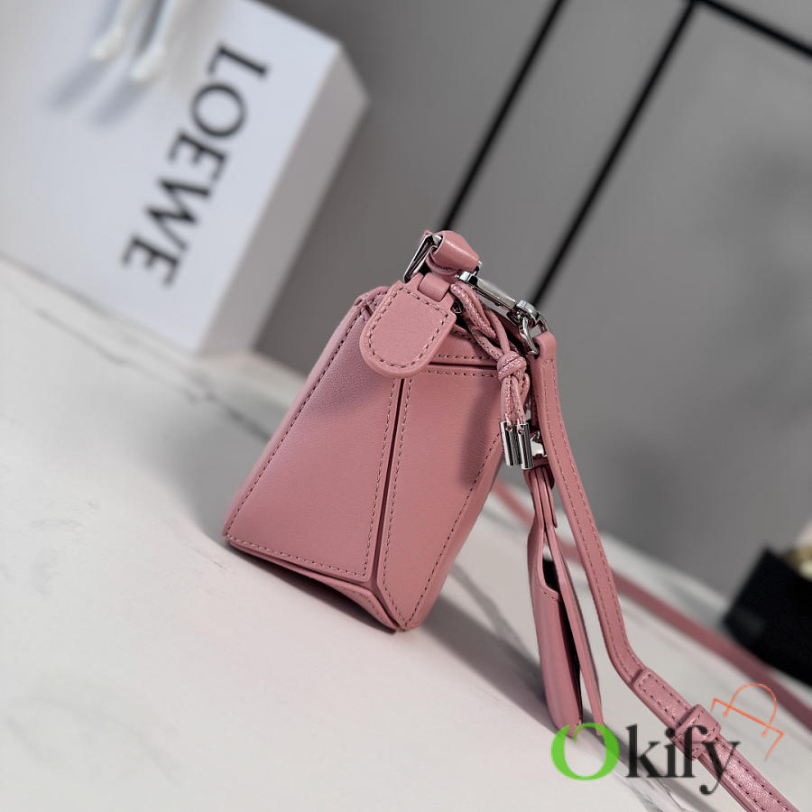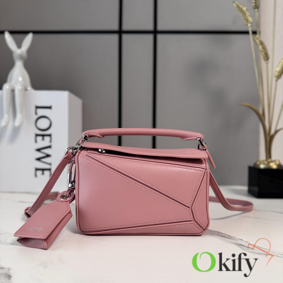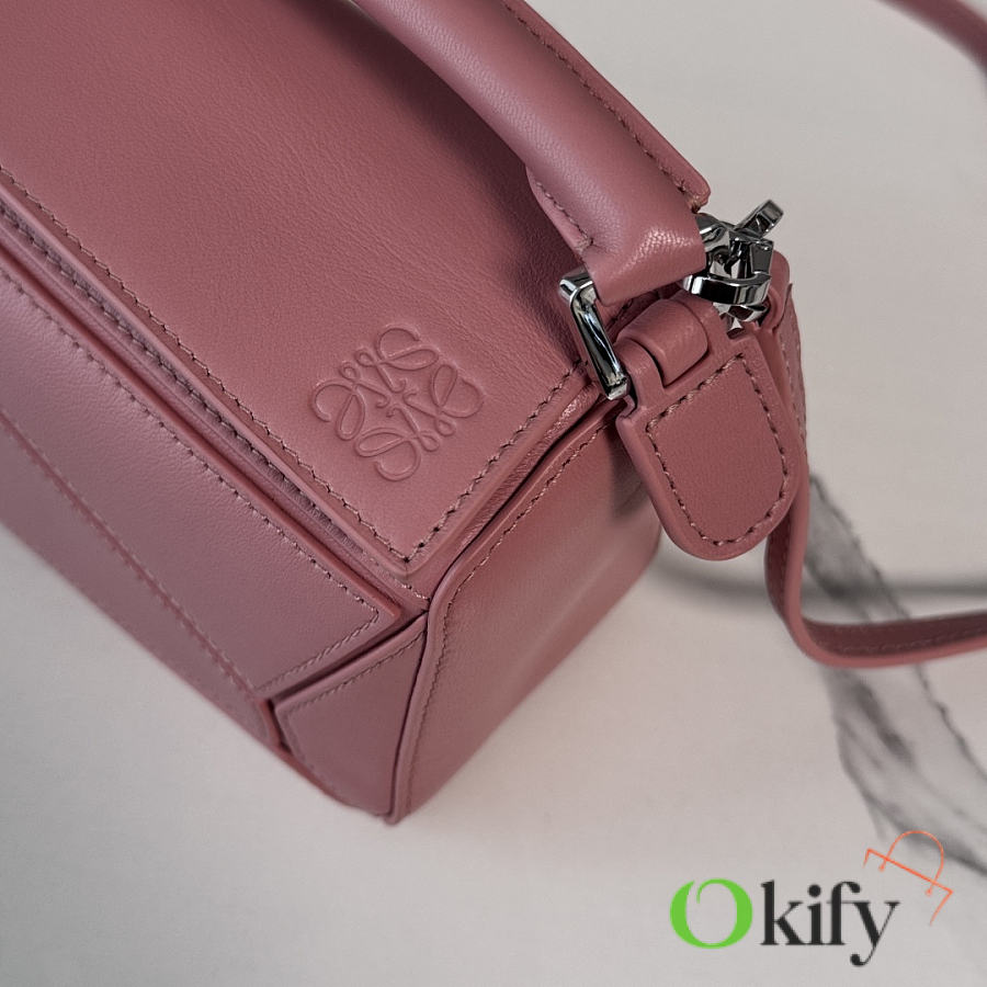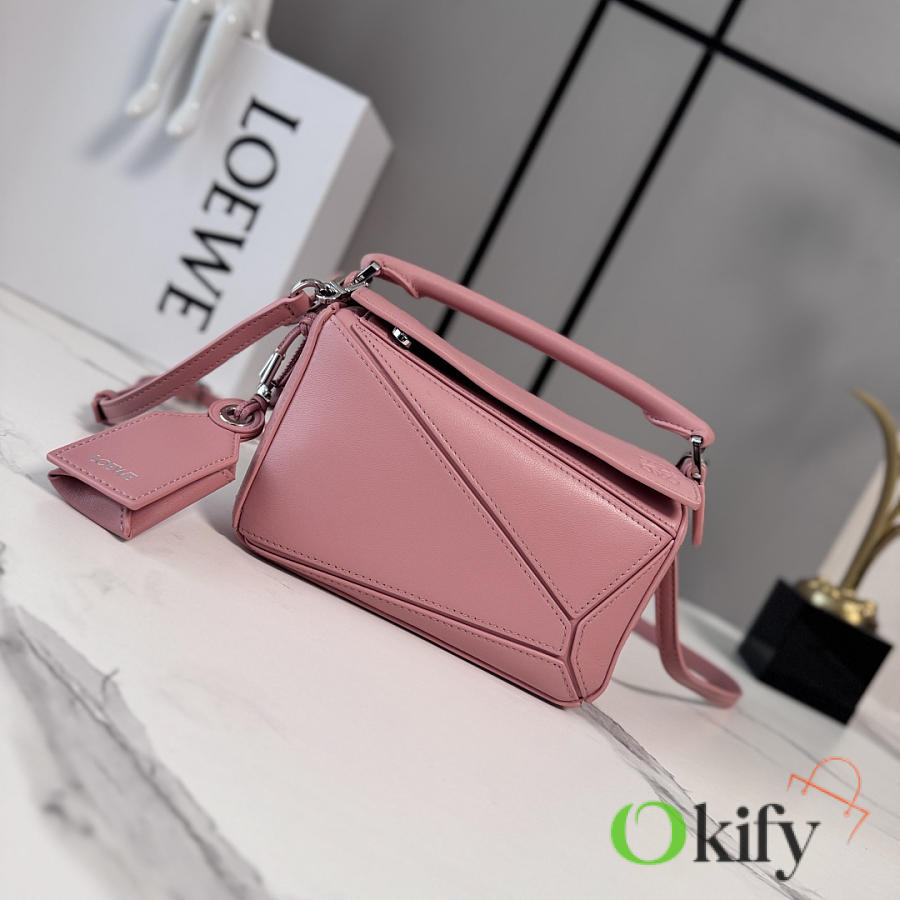 Featherlight Puzzle handbag features a distinctive rectangular shape outlined with geometric lines. The soft, lightweight Nappa leather gives the bag a relaxed, effortless style. It can be carried on the shoulder, crossbody, or by hand. Detachable and adjustable shoulder strap with a rotating buckle* Zipper closure with hinged zipper pull One external zippered back pocket, one internal slip pocket* Detachable LOE**WE gold or silver foil tag, featuring a concealed pocket and balloon dice* Rectangular metal feet Nappa lambskin leather lining Anagram embossing, plaque engraved with LOE**WE. Model: 062511