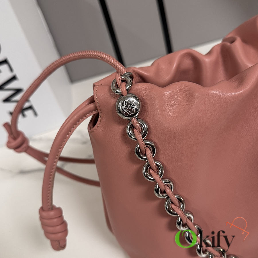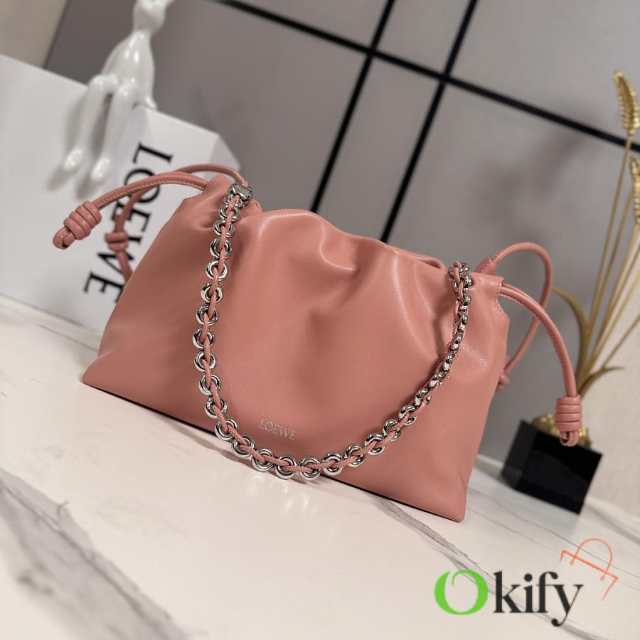 The Soft Nappa Lamb Leather Flamenco Purse Goodie Bag features a pleated design and key details such as the signature rope knot on the side. Stylish and versatile, it can be carried as a clutch, over the shoulder with the donut chain, or crossbody with the leather shoulder strap. This version is crafted from soft Nappa lamb leather. Subtle magnetic closure* Suede lining with gold or silver foil stamping* (Matching metal chain extended leather shoulder strap) Model: 012403