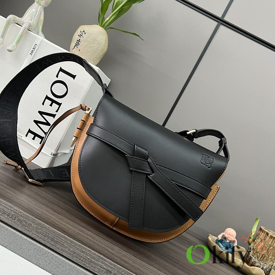 Okify Loewe Gate Bag In Black And Brown 20x19x11.5cm