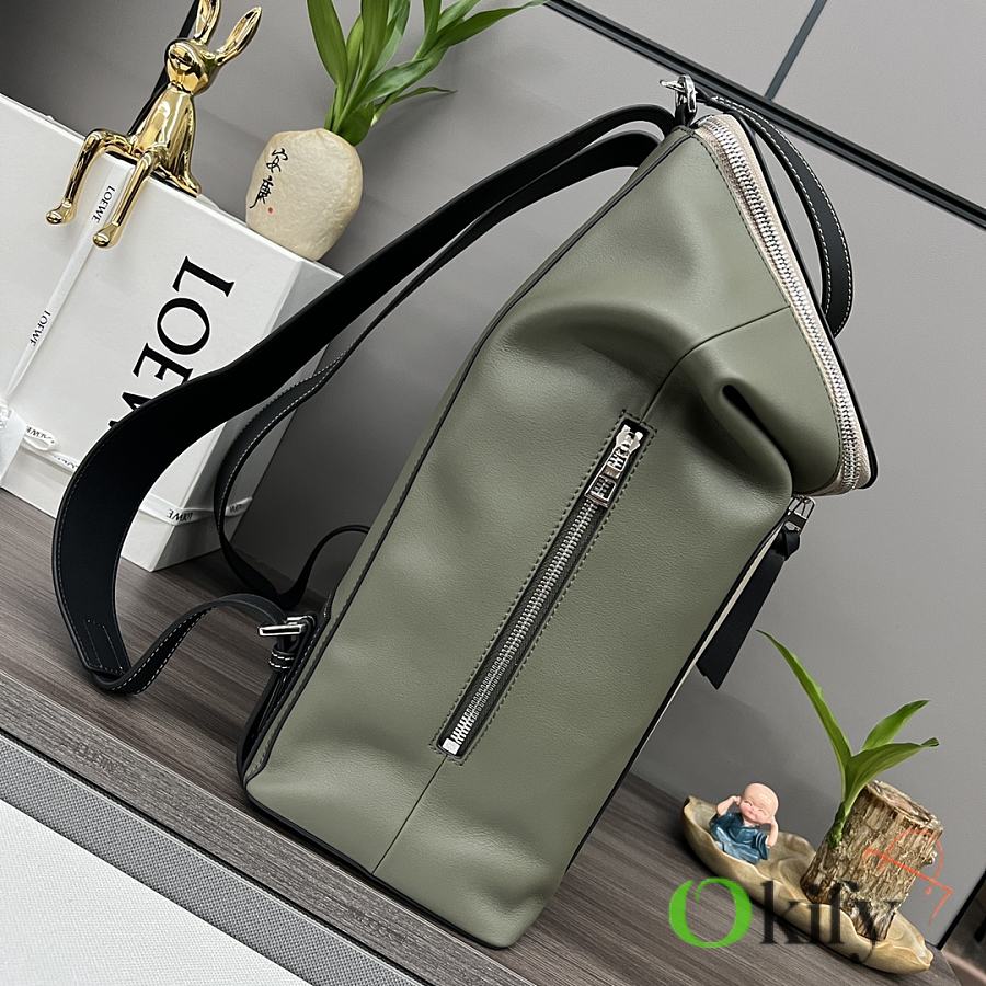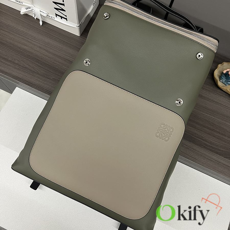 Okify Loewe Goya Backpack In Beige And Green 41x37x15cm