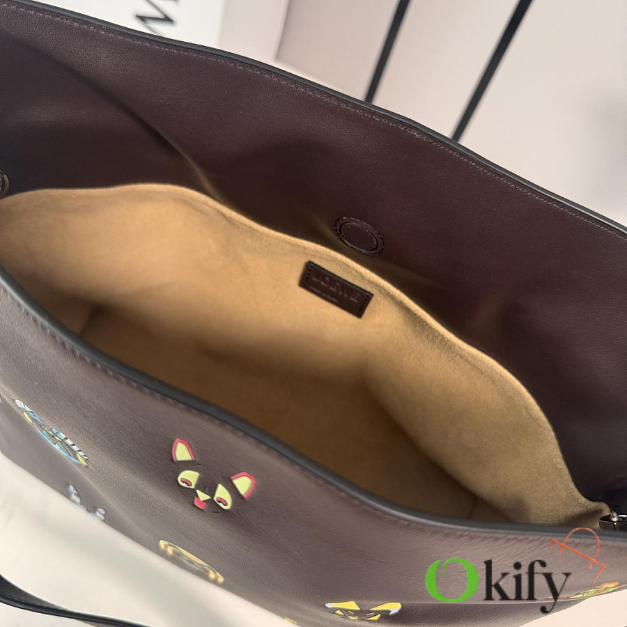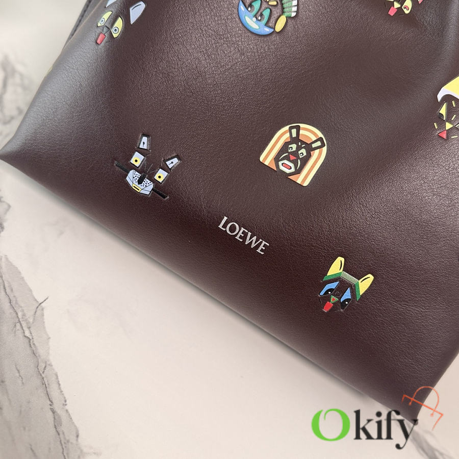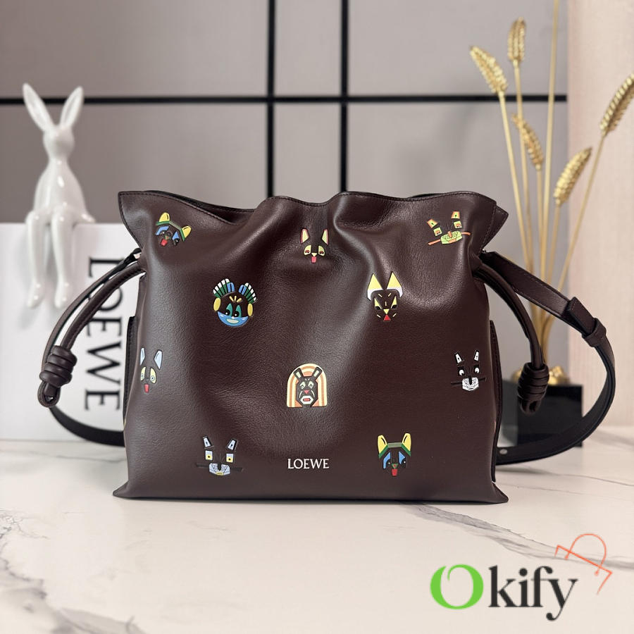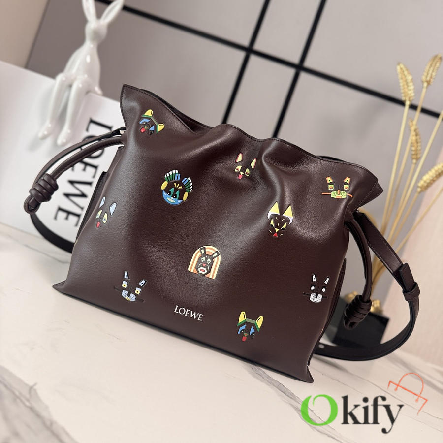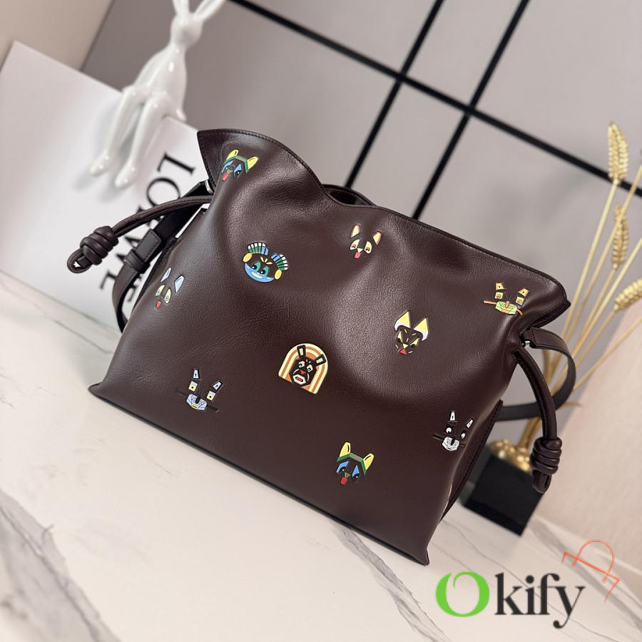 Okify Loewe Medium Flamenco Cats Clutch Bag Dark Brown 30x24.5x10.5cm