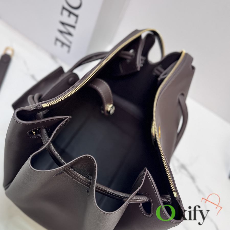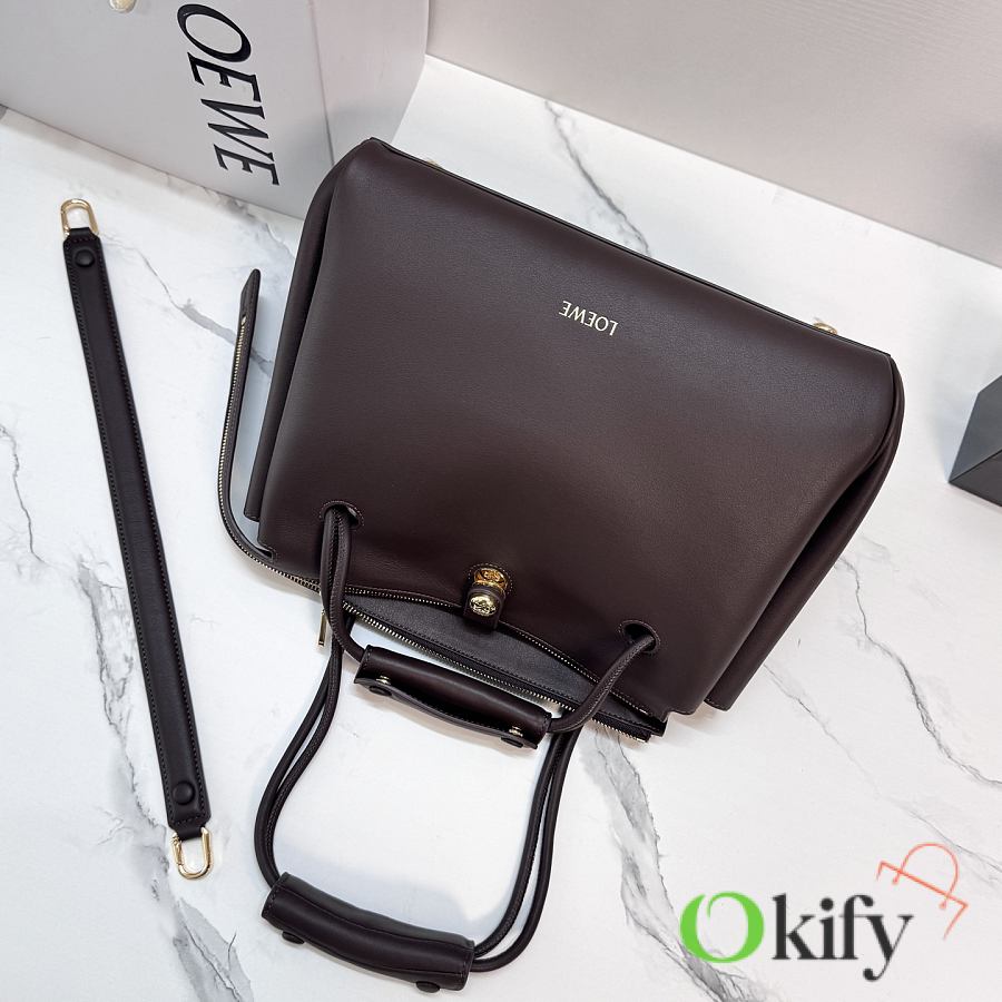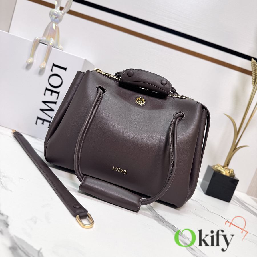 The Madrid features a supple, structured trapezoidal shape with gusseted corners, an adjustable handle, and a Pebble magnetic clasp. This medium version is crafted from supple cowhide leather. Can be carried on the shoulder, crossbody, or by hand.* Adjustable shoulder strap with leather extension strap. Anagram Pebble magnetic snap closure and zipper closure. One zippered inner pocket, one internal card slot Anagram Pebble metal spikes Nappa sheepskin leather lining