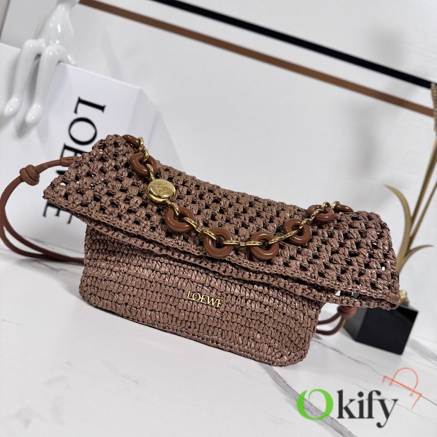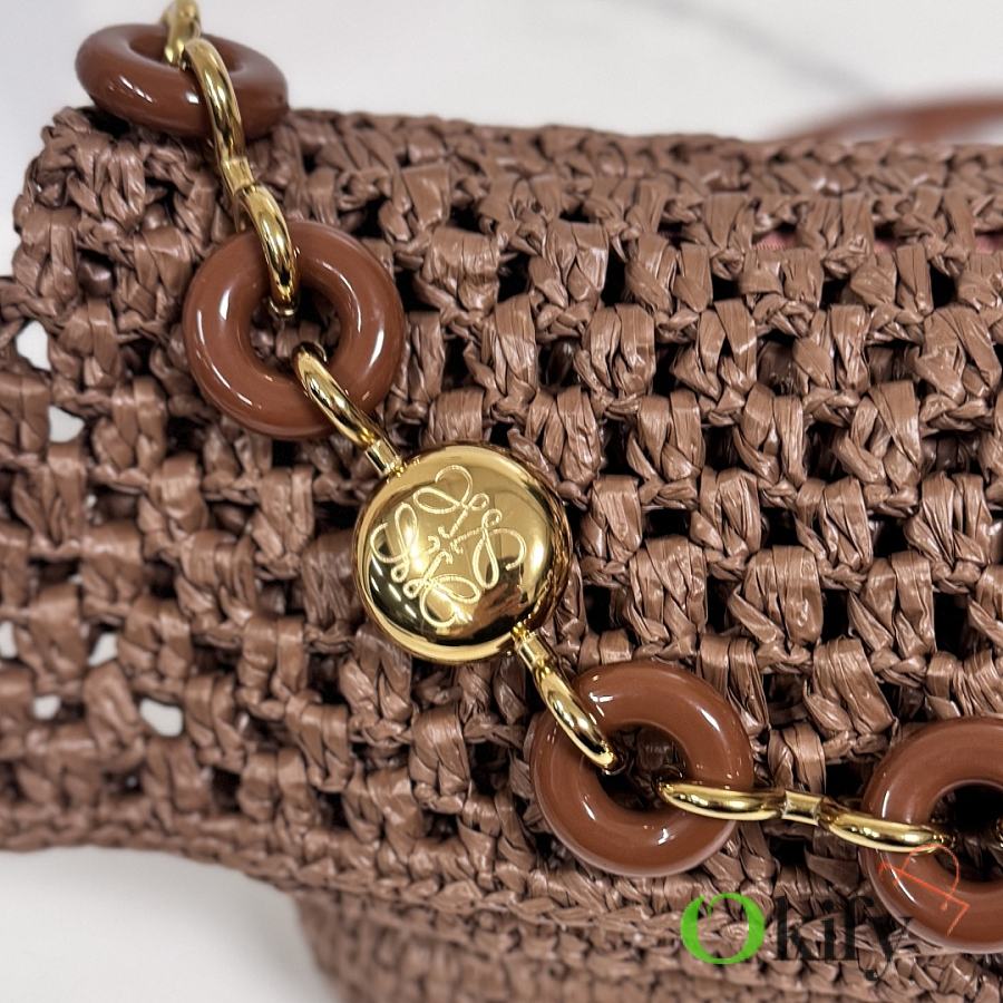 Okify Loewe Paula's Ibiza Ola Medium Bag In Brown Raffia 26x13x18cm