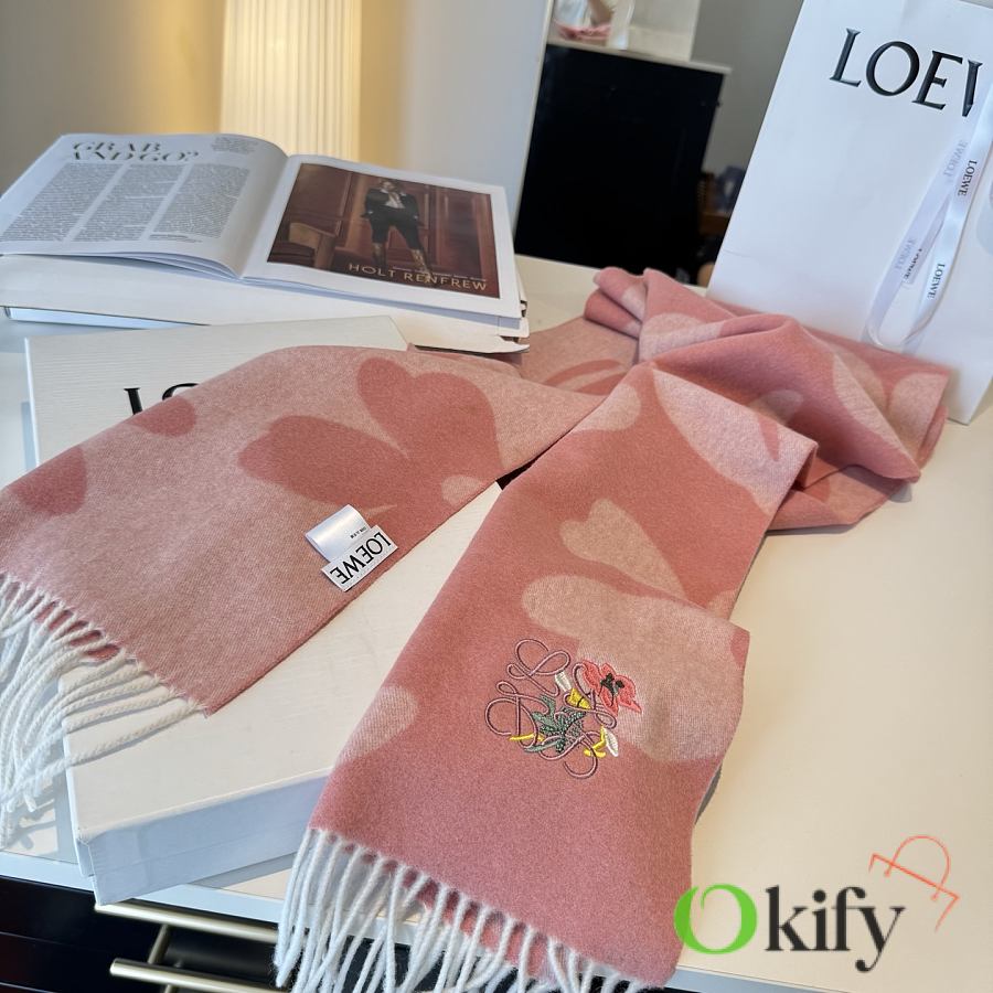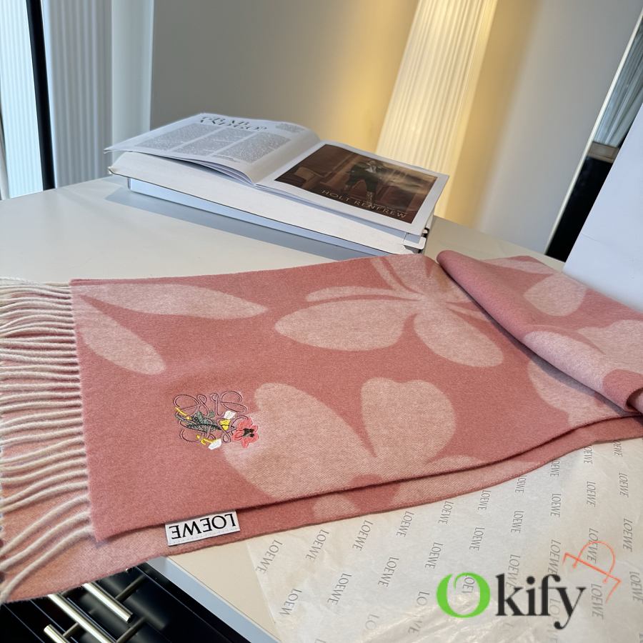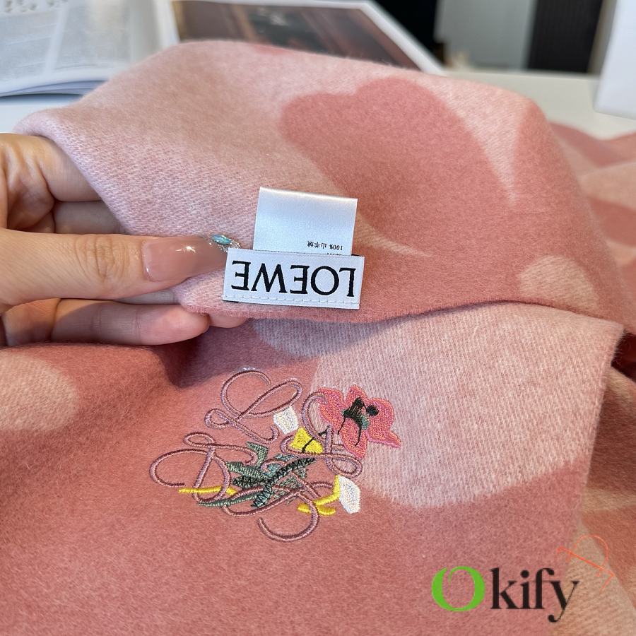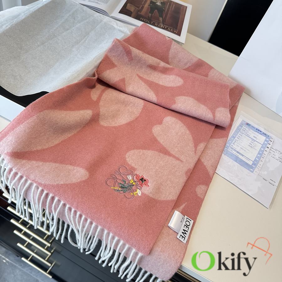 Okify Loewe Pink Cashmere Scarf With Flowers 180x30cm