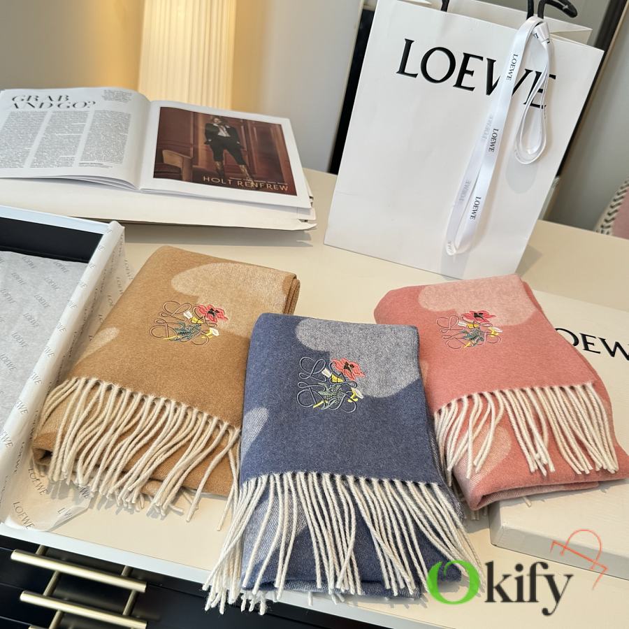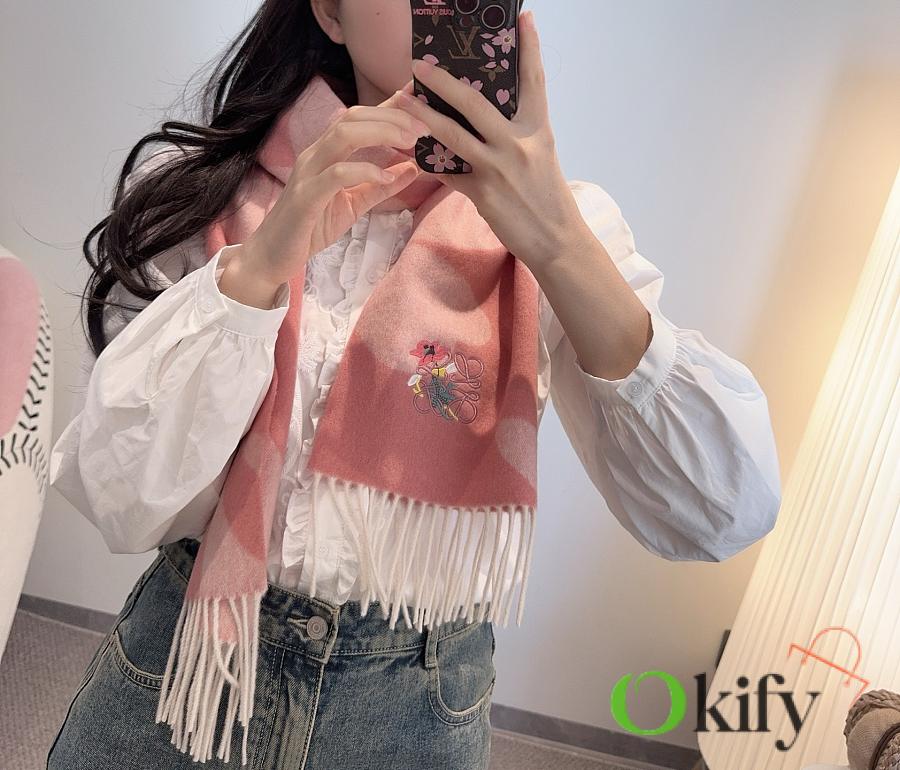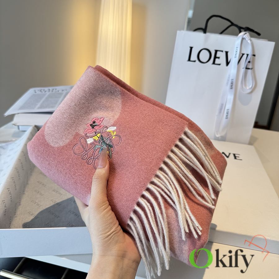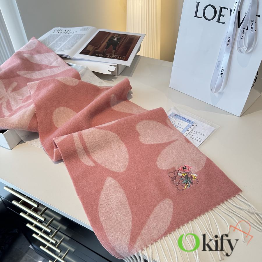 Okify Loewe Pink Cashmere Scarf With Flowers 180x30cm