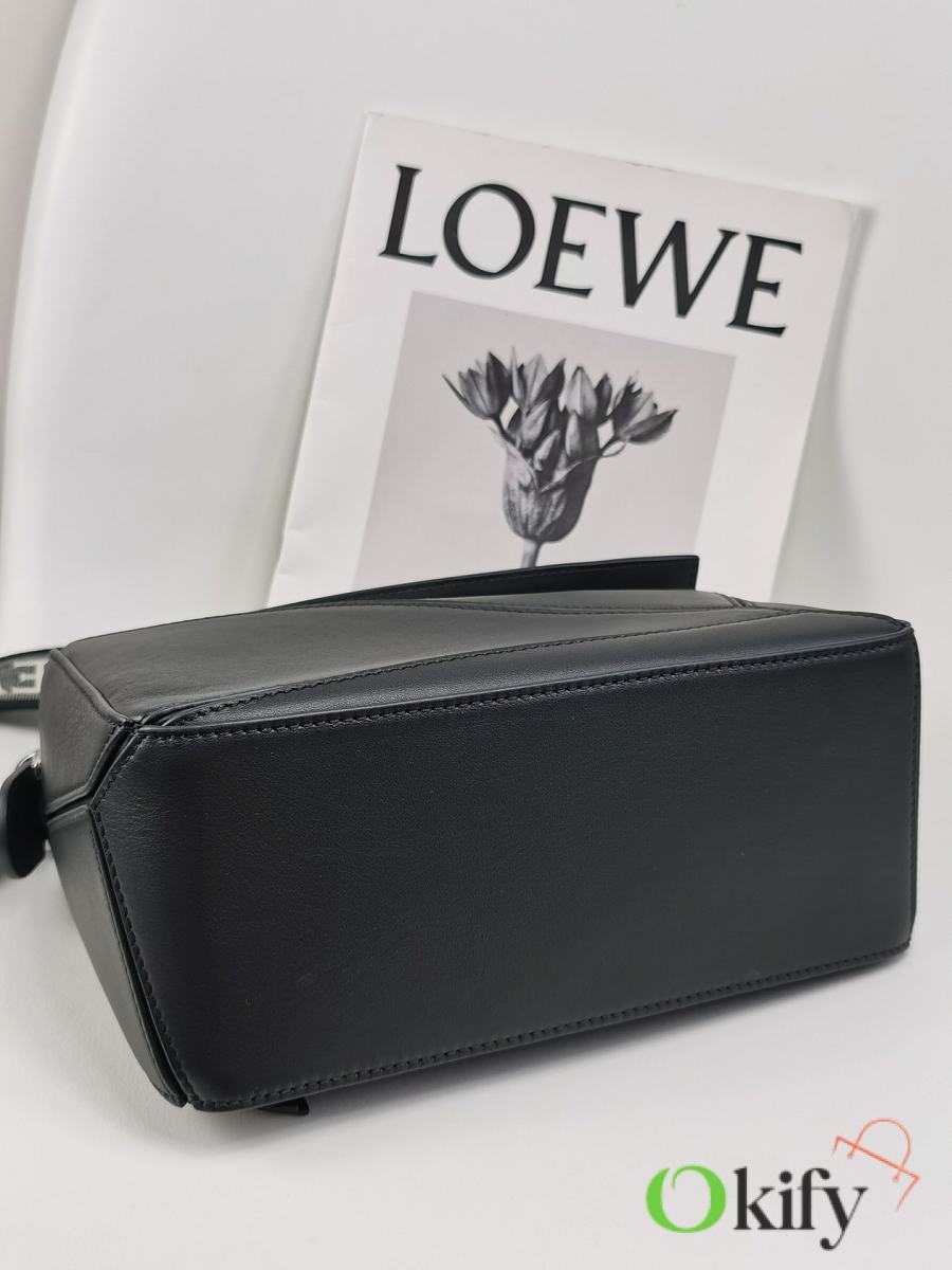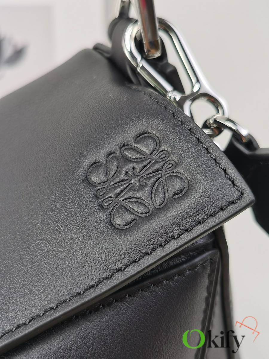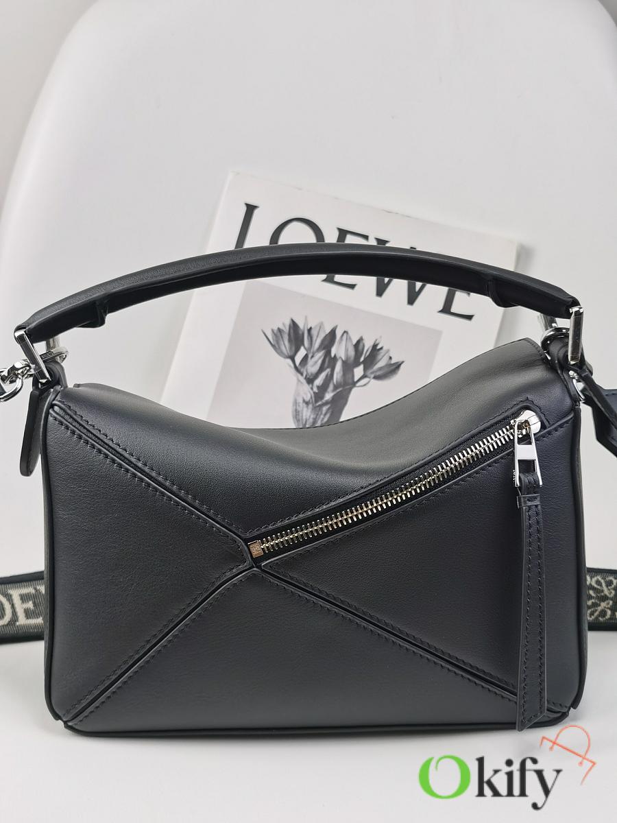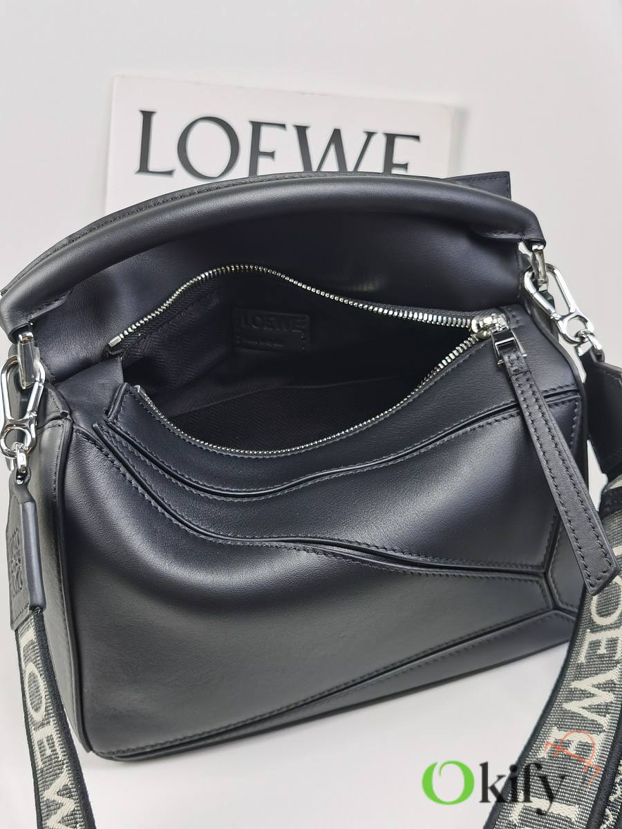 Okify Loewe Puzzle Edge Bag In Black With White And Gray Strap 24x10.5x16cm