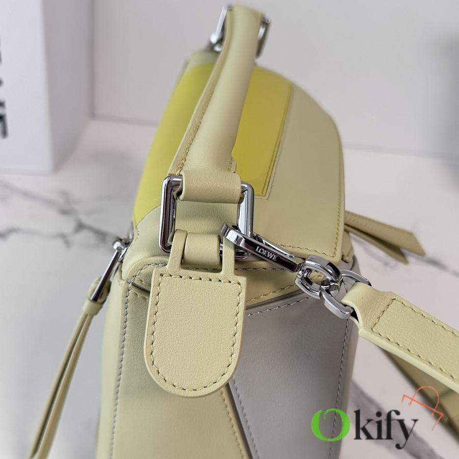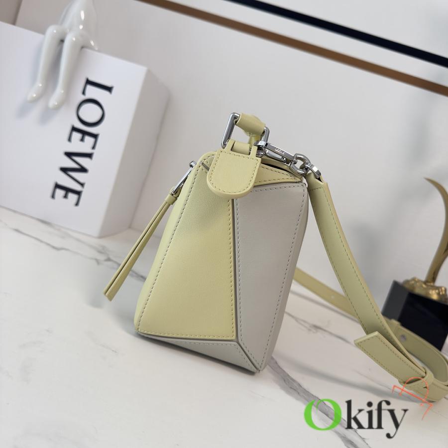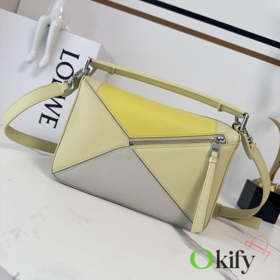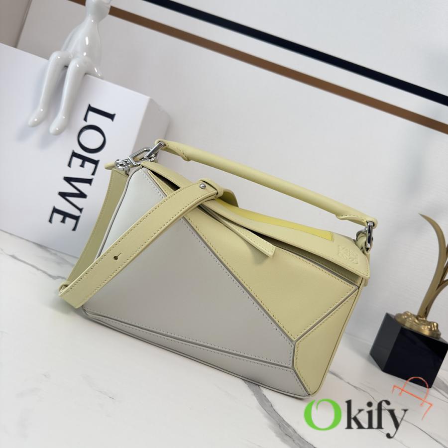 This handbag is part of the Loewe x Josef and Anni Albers collection.* Can be carried on the shoulder, crossbody, or by hand. Detachable and adjustable shoulder strap * Zipper closure with cowhide zipper pull * One external zippered back pocket, one internal slip pocket * Fabric lining * Anagram embossing, L'Oréal-L'Oréal gold foil stamping and Anni Albers signature