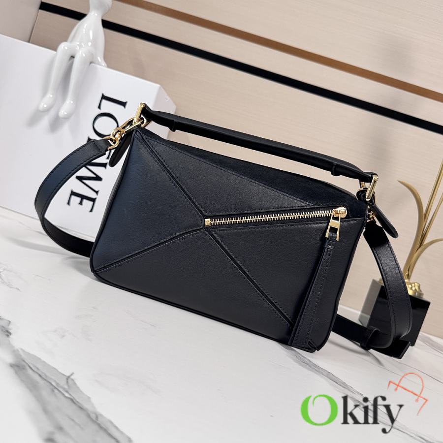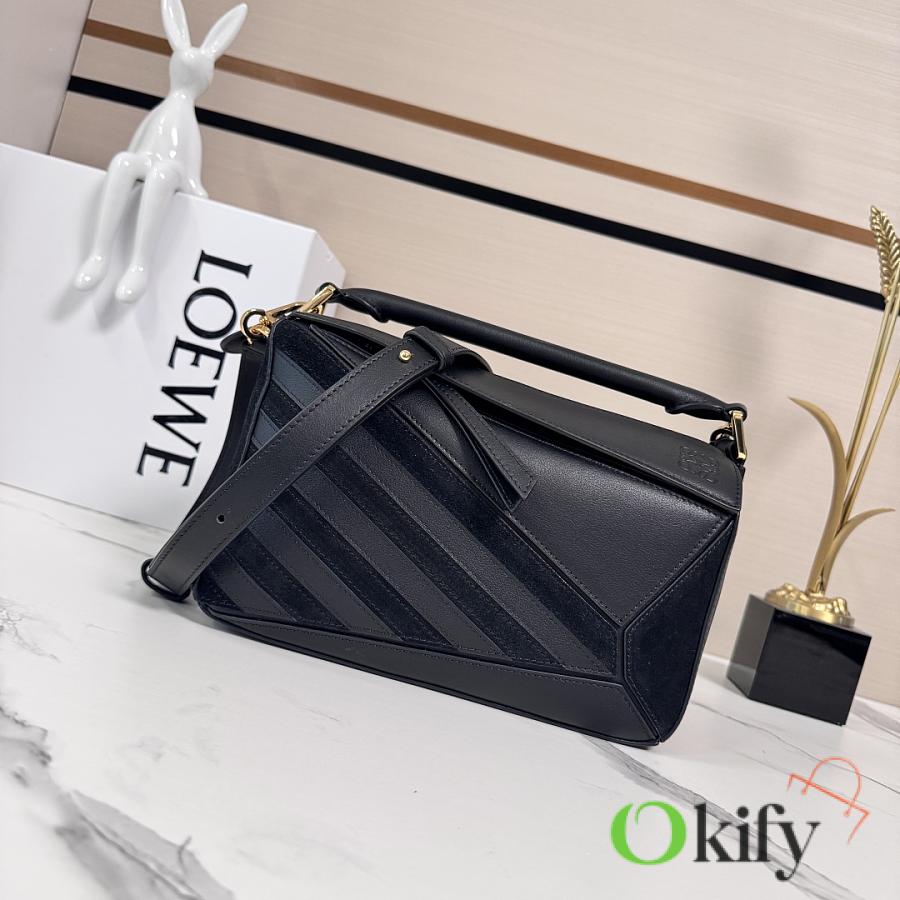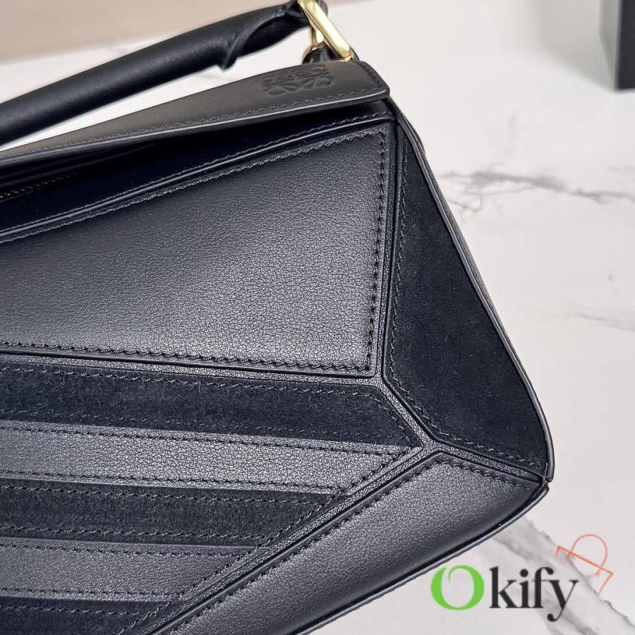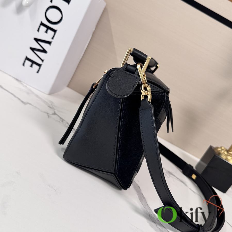 Okify Loewe Puzzle Small Bag In Black Calfskin And Suede 24x16.5x10.5cm