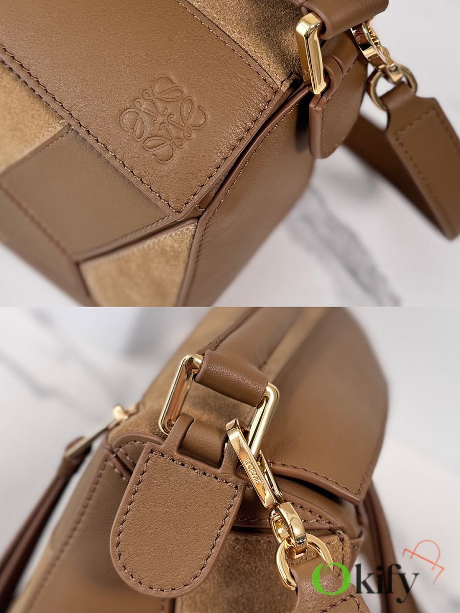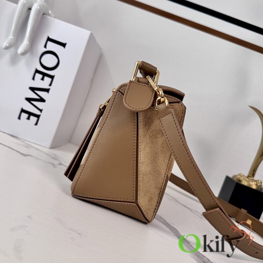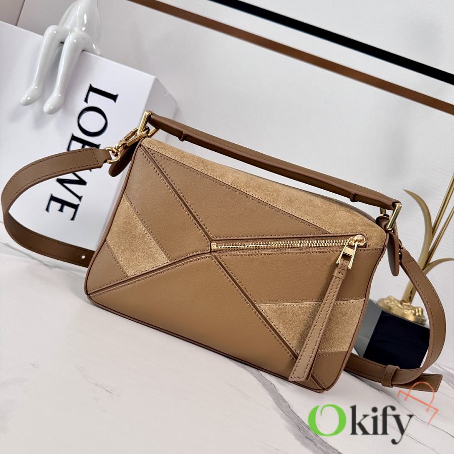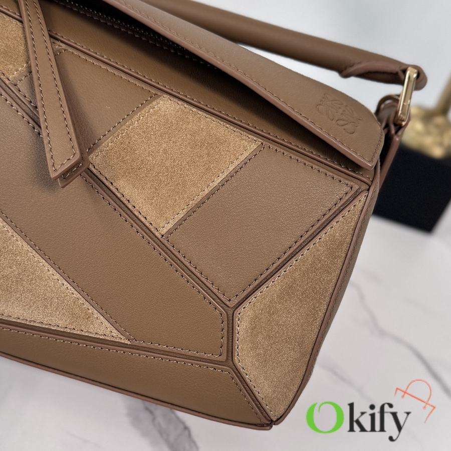 This small version is crafted from classic cowhide and suede with intarsia stripes in a color-matching pattern.