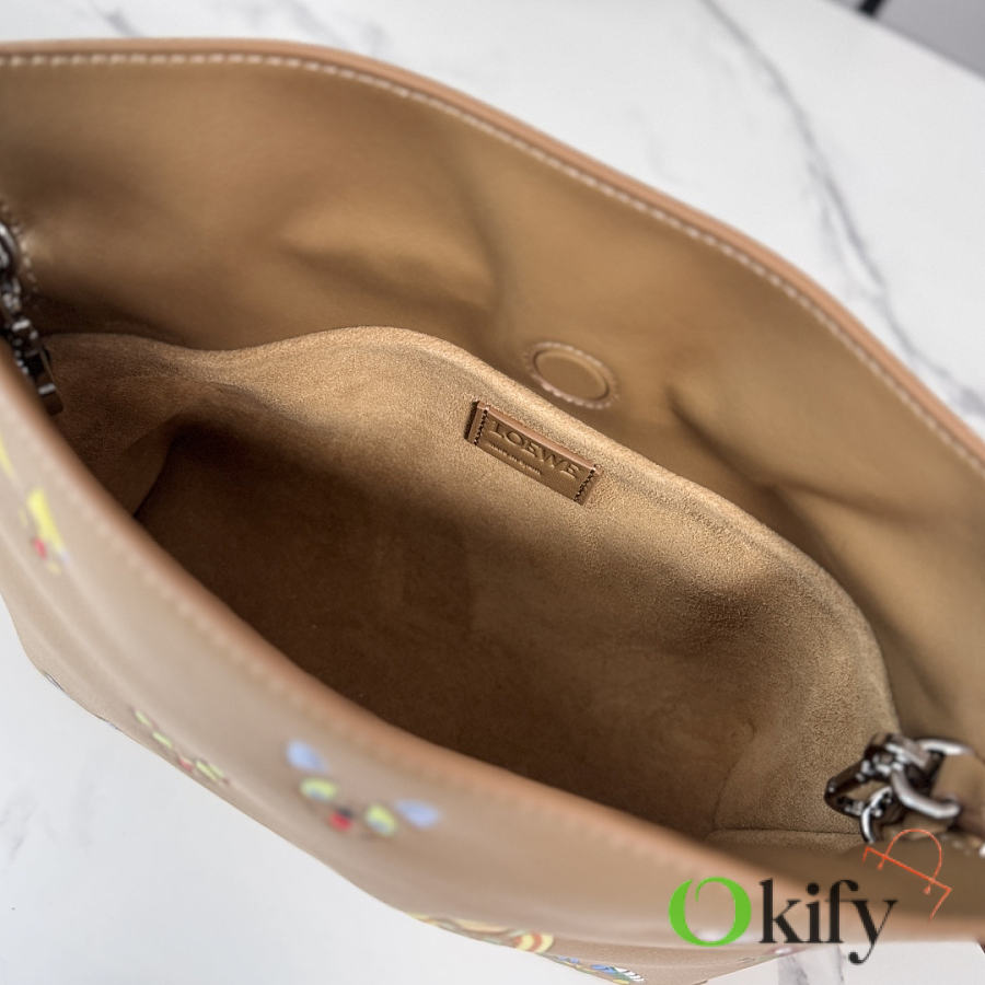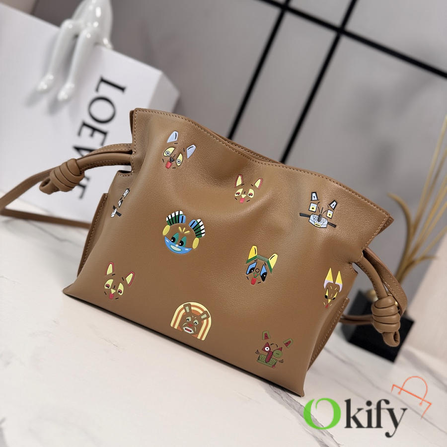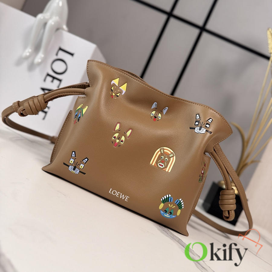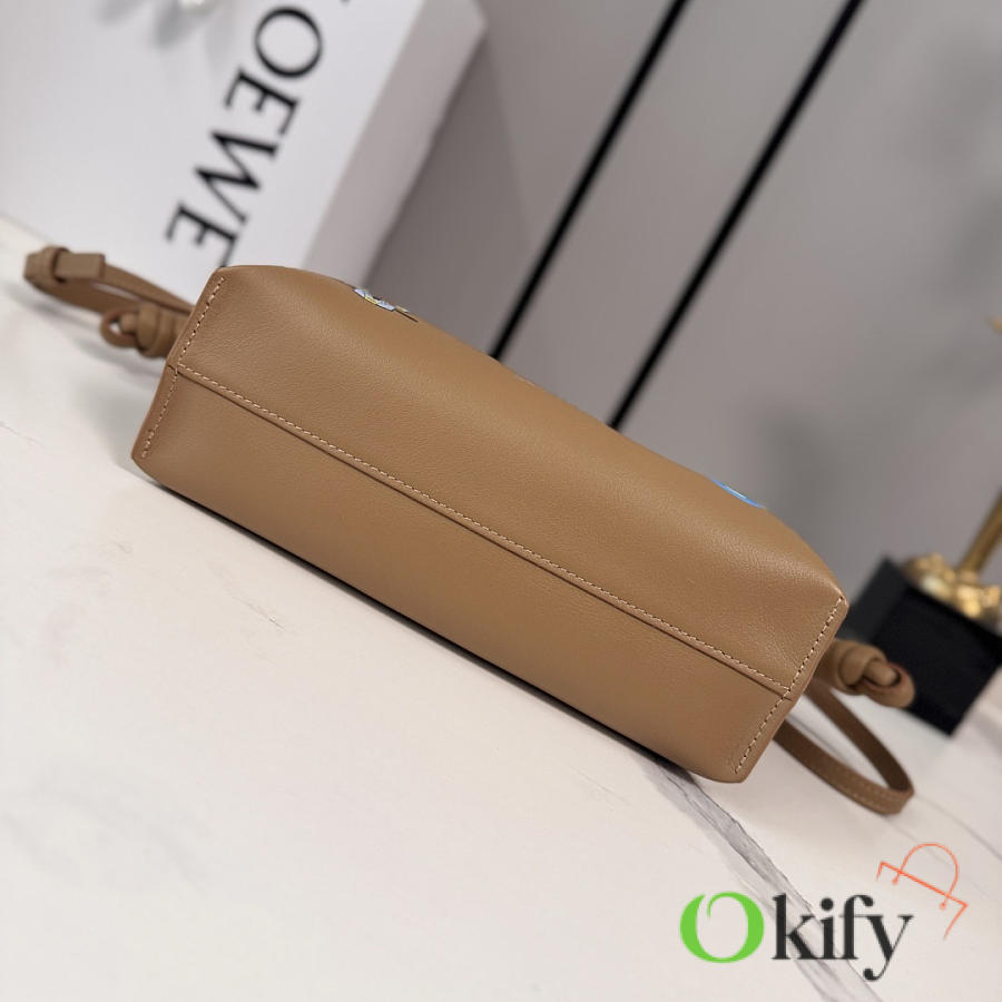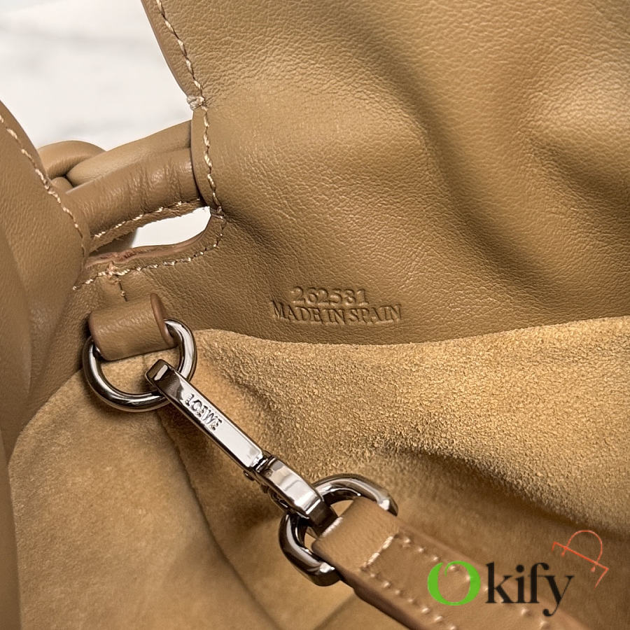 Featuring a drawstring closure and a signature coiled knot, crafted from premium supple calfskin Flamenco, this bag can hold, for example, a small wallet, a phone of any size, or an A5 notebook. It also accommodates a 0.5-liter bottle and sunglasses. It can be worn over the shoulder, crossbody, or carried by hand. The detachable and adjustable shoulder strap adds to its appeal. A simple magnetic closure ensures a comfortable fit. The bag features a subtle magnetic closure and a gold suede lining. It is available with gold or silver foil stamping. Model: 062563