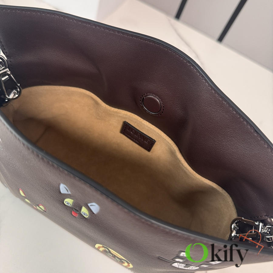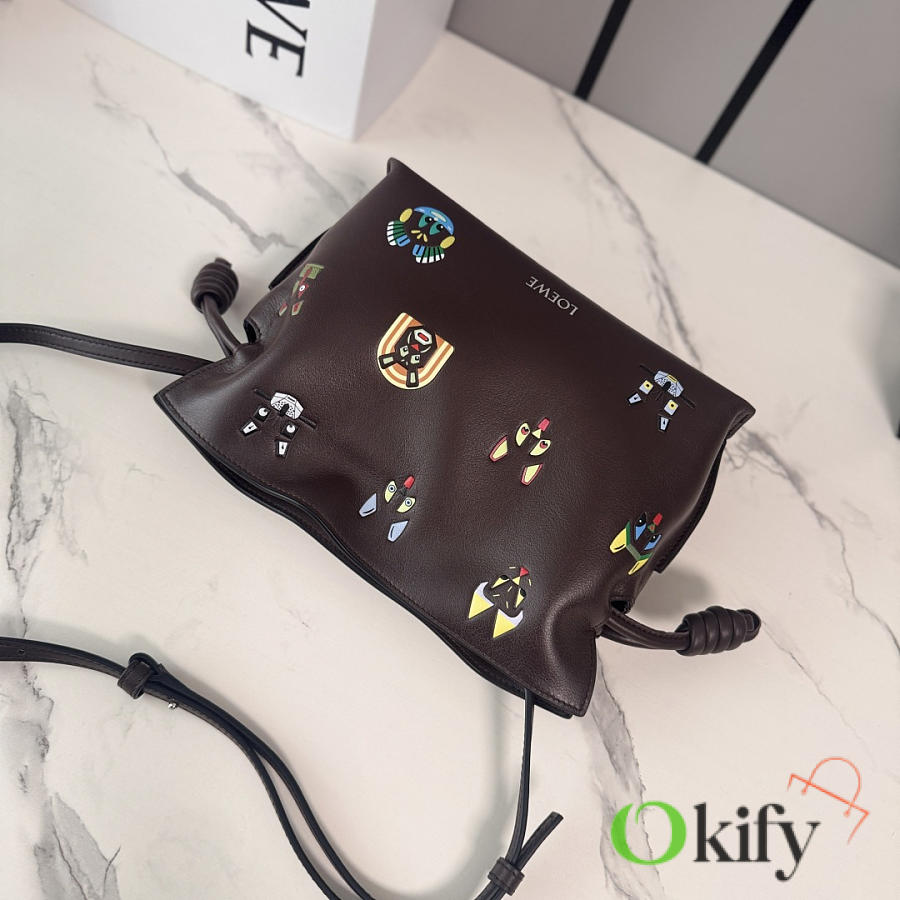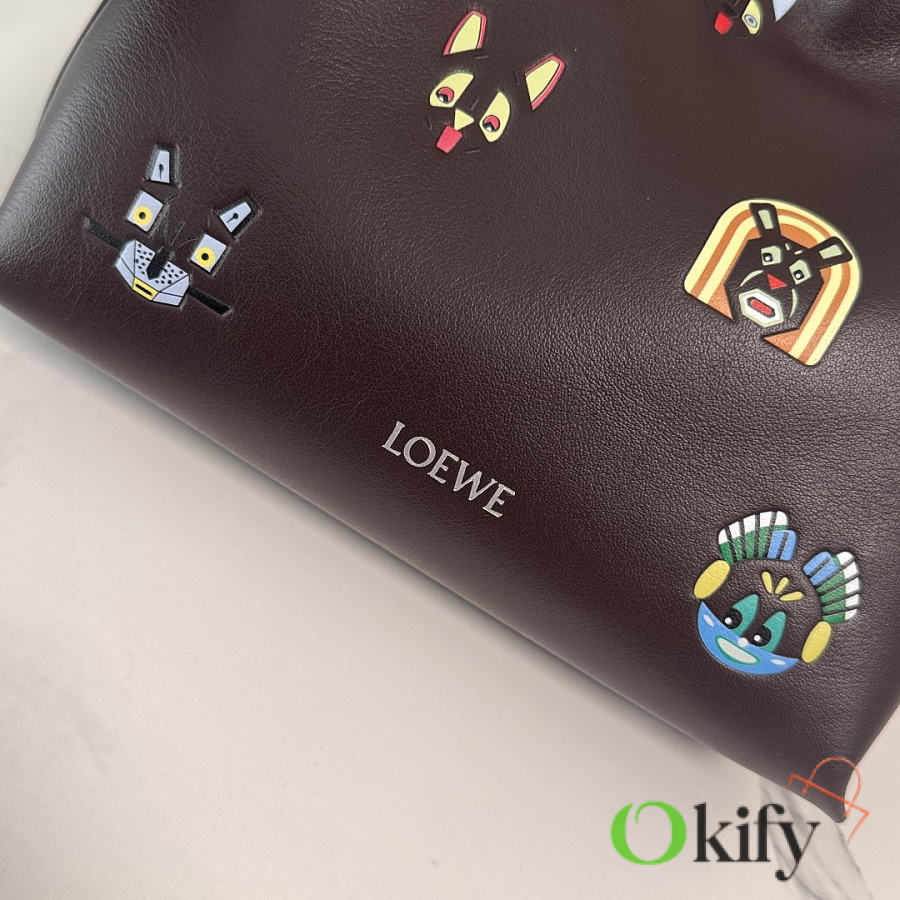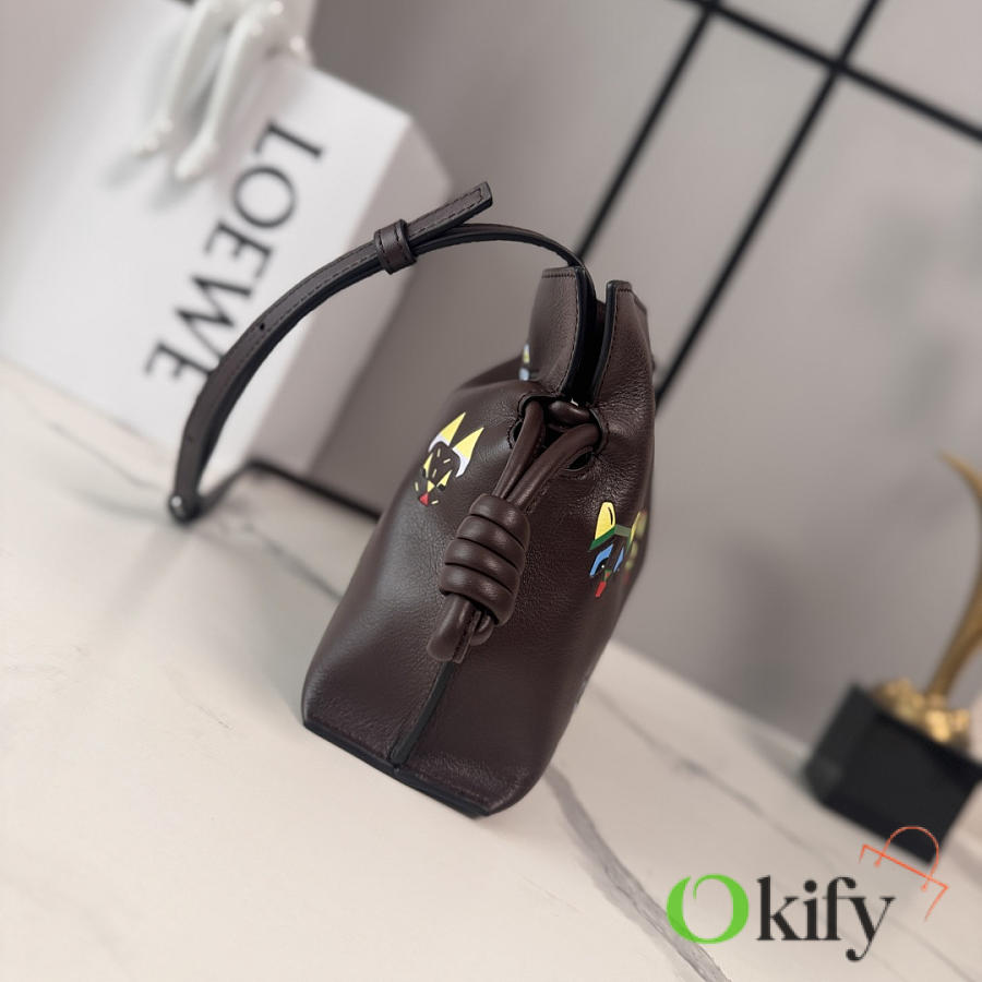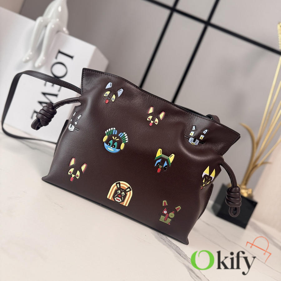 Okify Loewe Small Flamenco Cats Clutch Bag Dark Brown 23x18x9cm