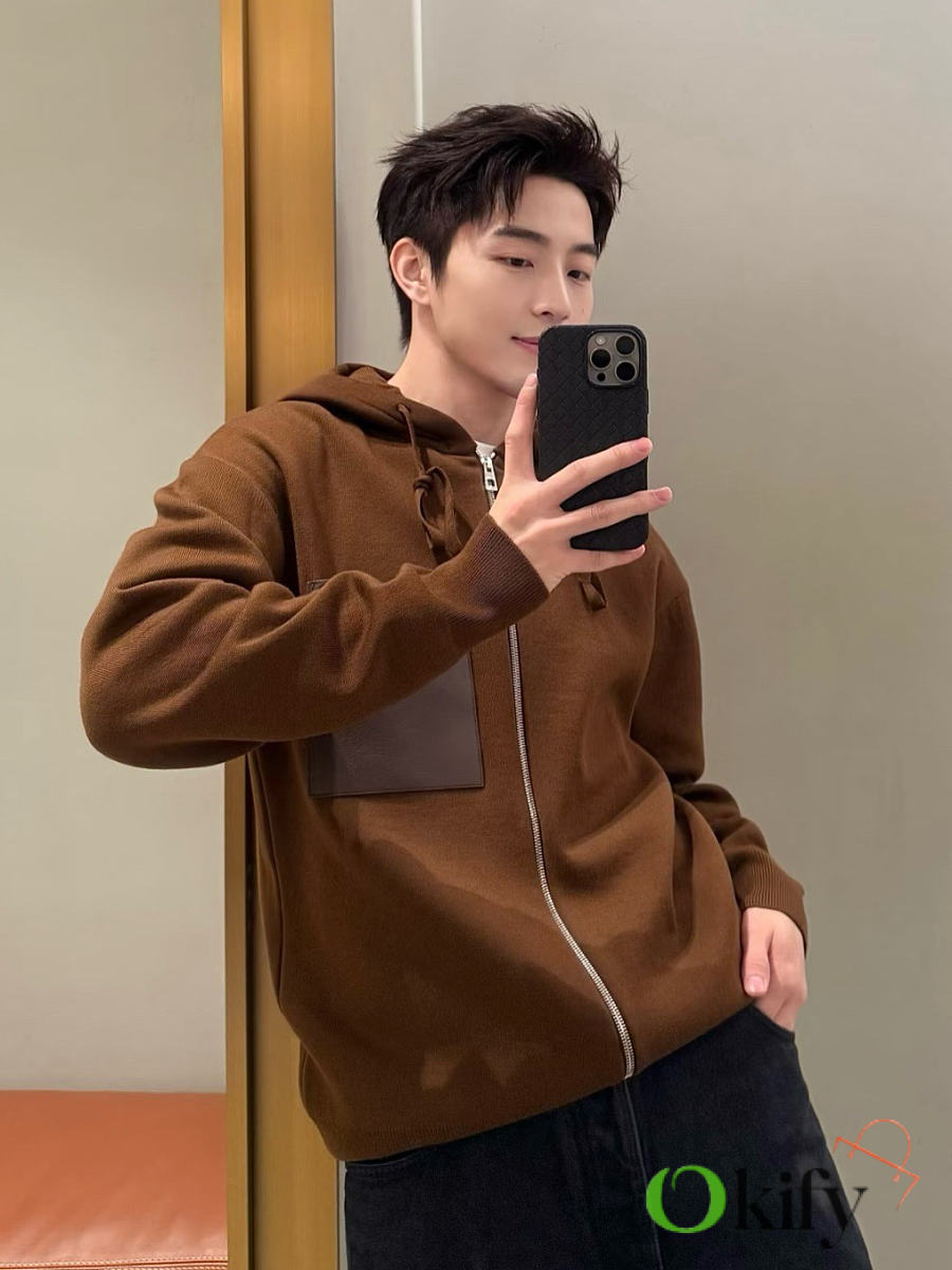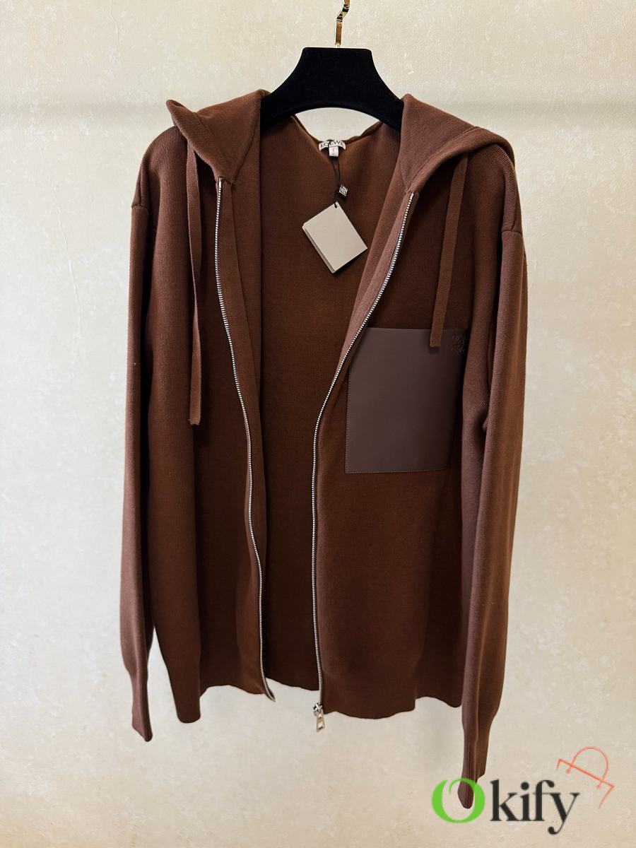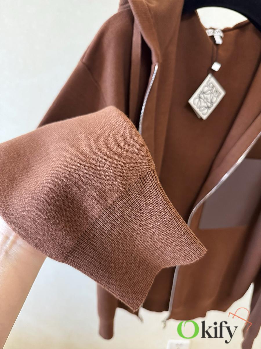 Okify Loewe Wool Zip-up Hoodie Jacket Brown Unisex
