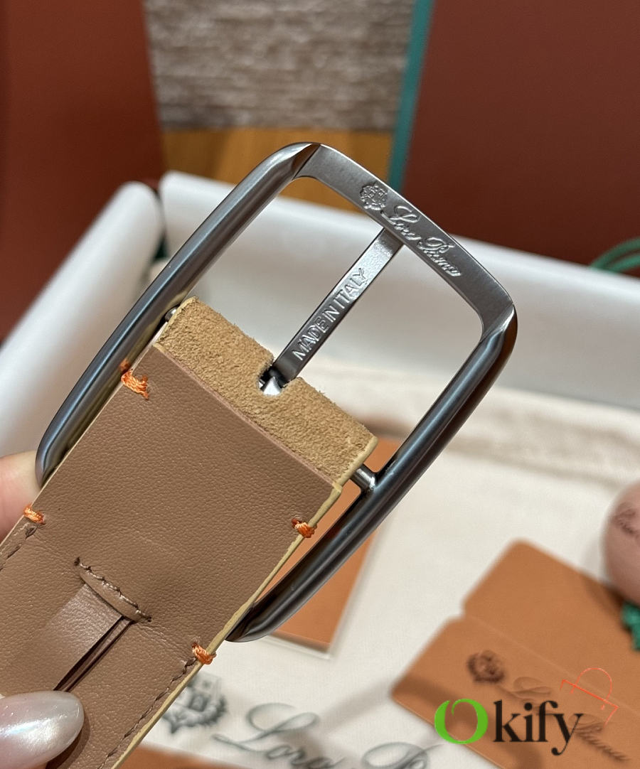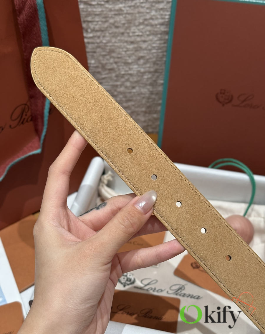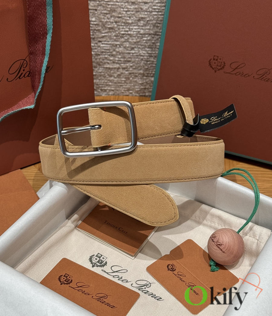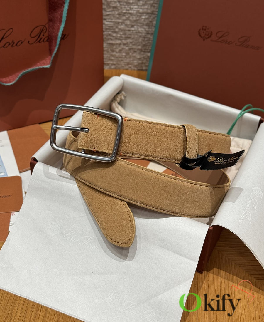 Okify Loro Piana Balloon Brown Suede Men Belt 3.5cm