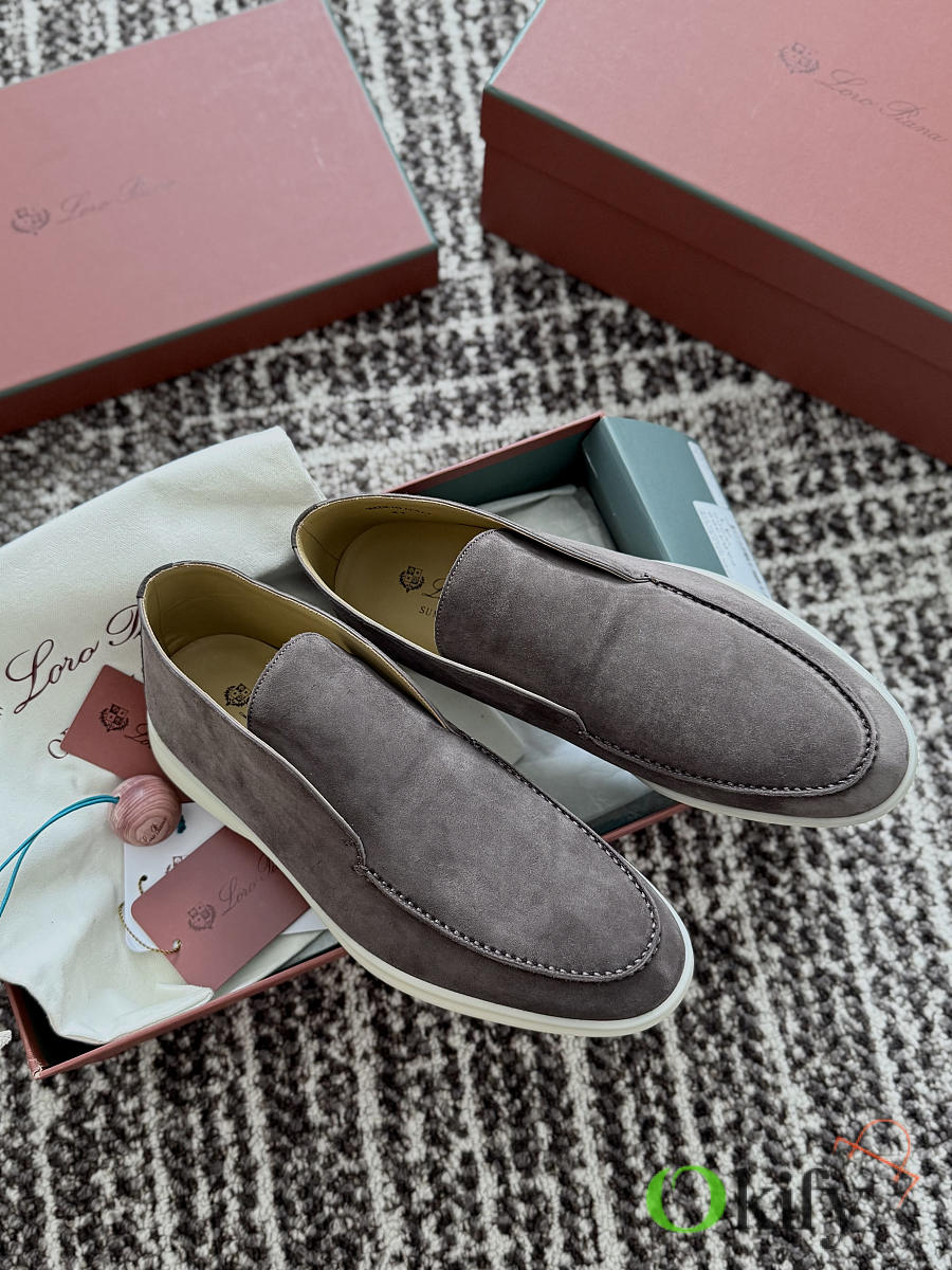 Okify Loro Piana Open Walk Gray Men Loafers