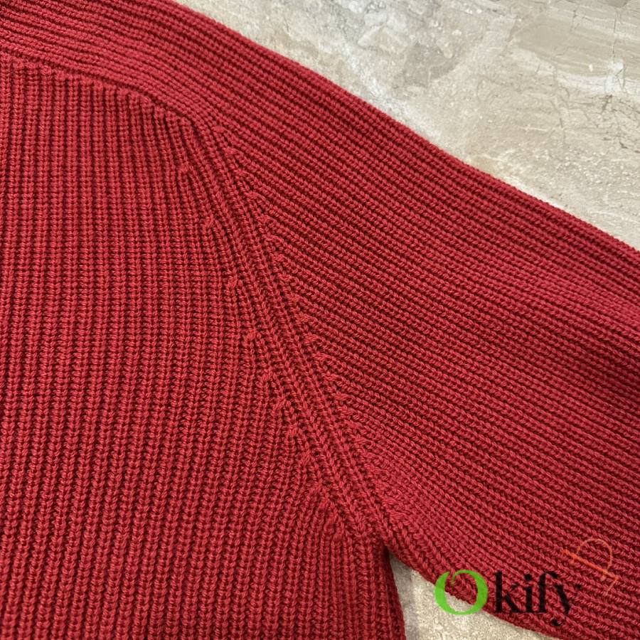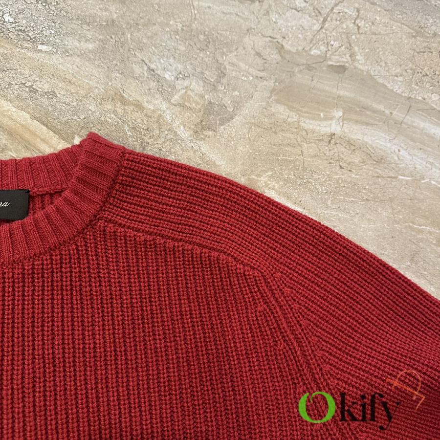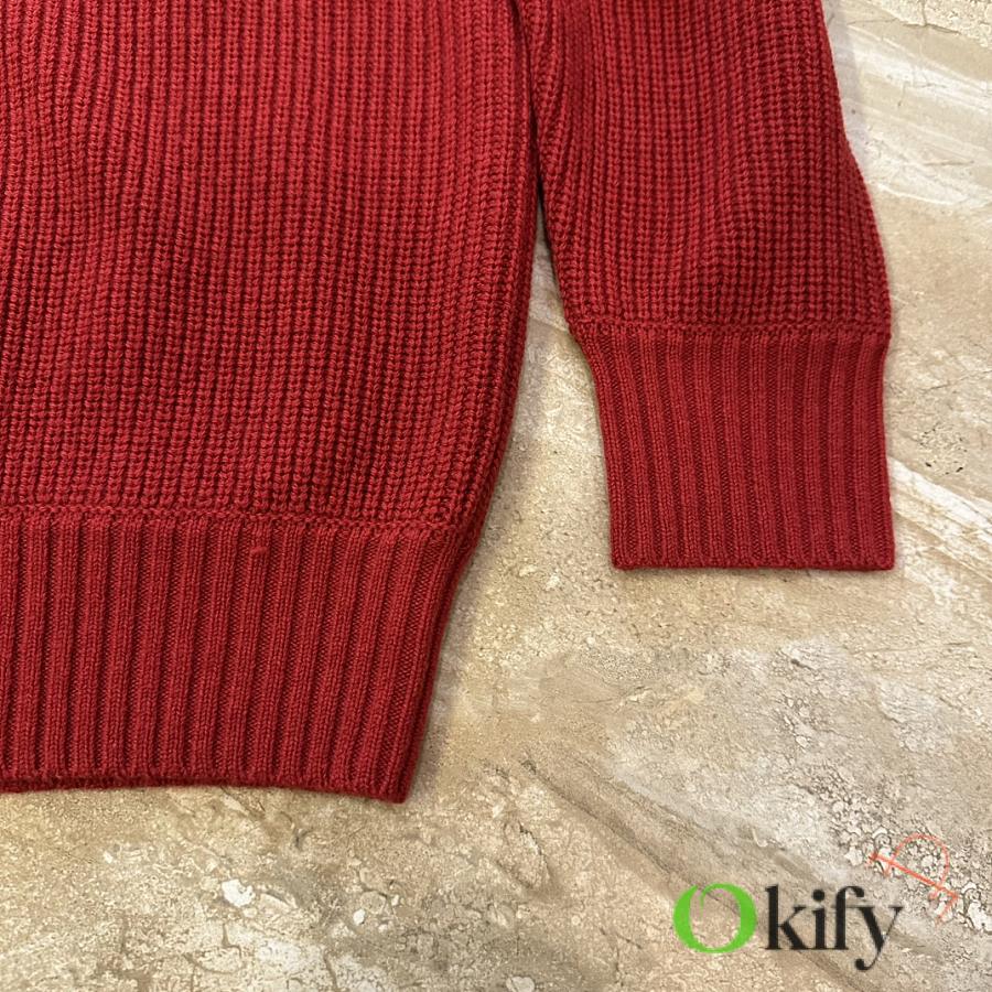 Made with 100% Merino wool yarn using a custom-supplied chunky knitting technique, this sweater has a soft, bouncy, and thick feel, similar to cashmere. It features a ribbed knit pattern and a knitted ribbed finish on the collar and cuffs, offering a soft, comfortable, and breathable feel. Fashionable and trendy, the rounded shoulder sleeves flatter the back. The simple design is all about the cut and fit, suitable for all ages. Details are identical to the original.