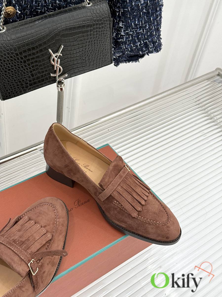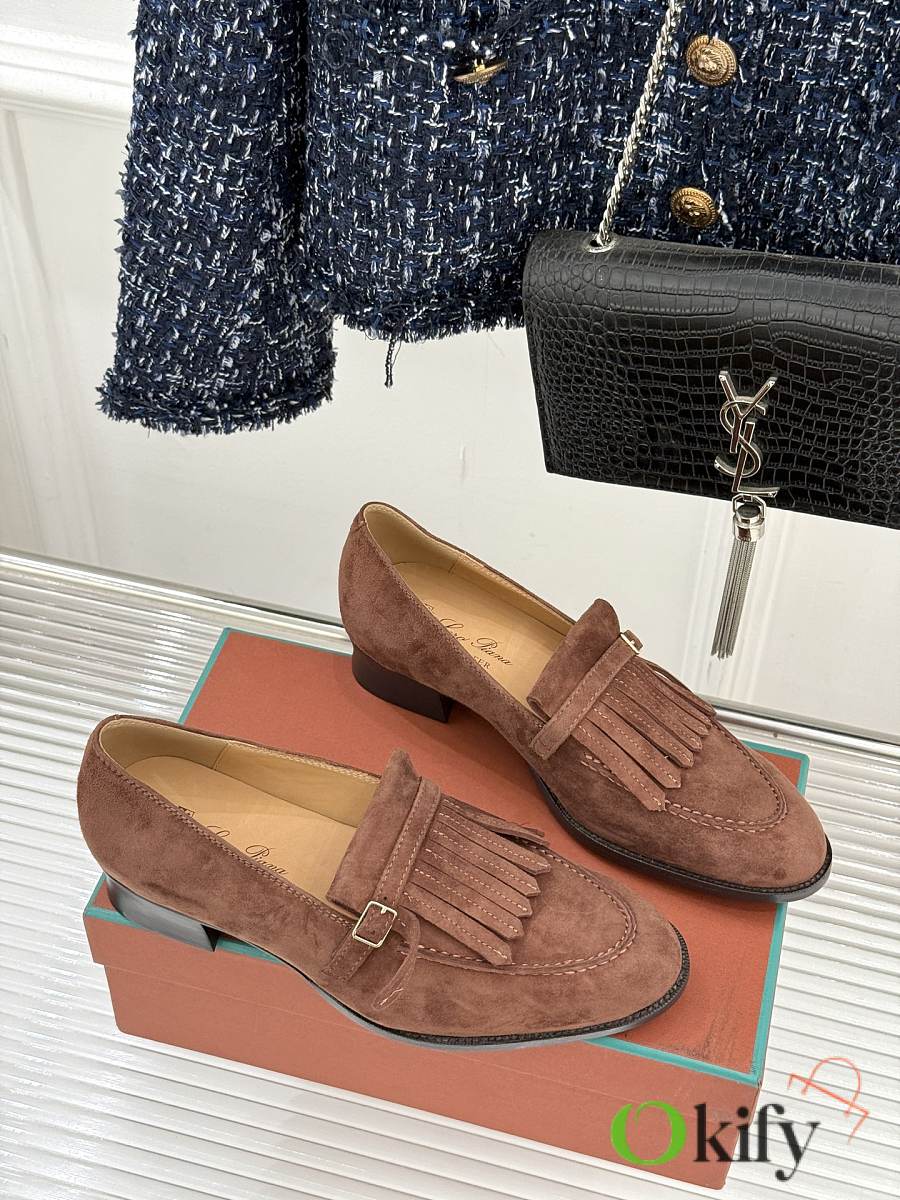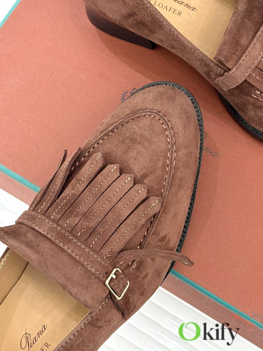 Okify Loro Piana Tassel Brick Orange Suede Women Loafers