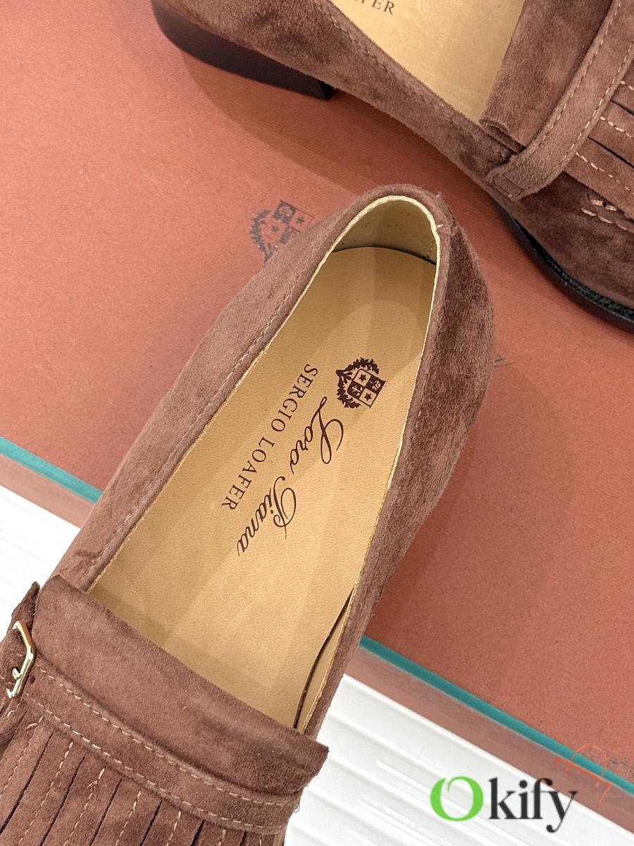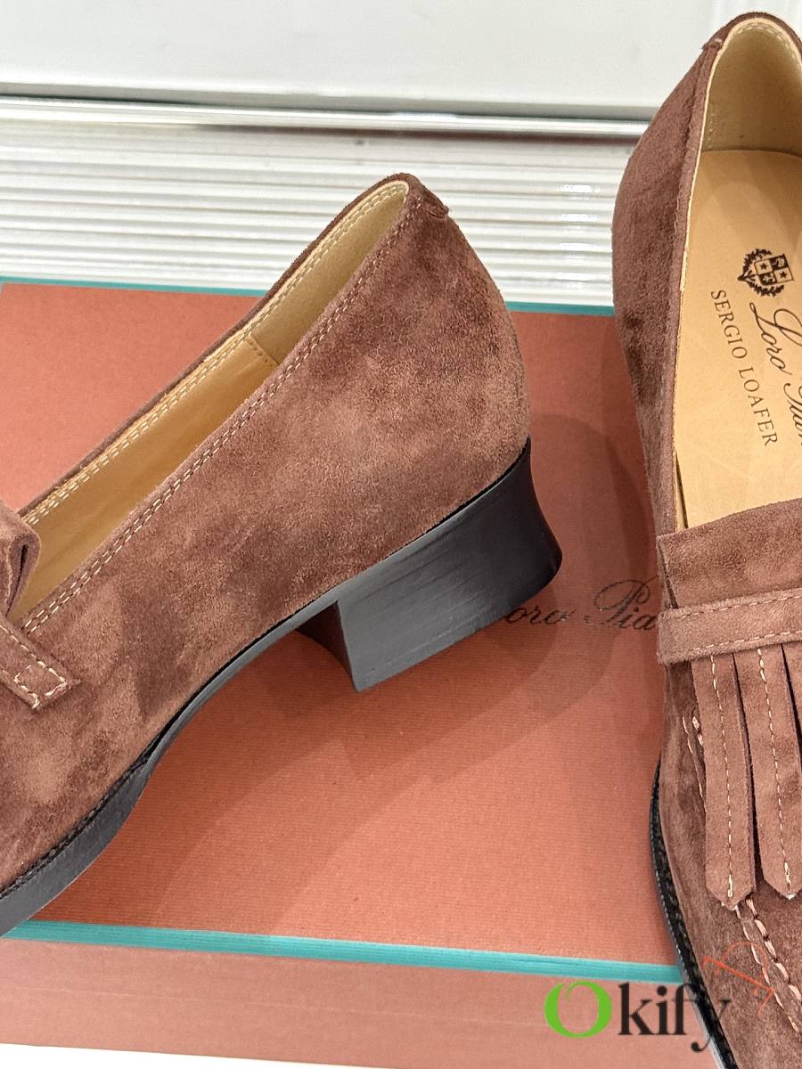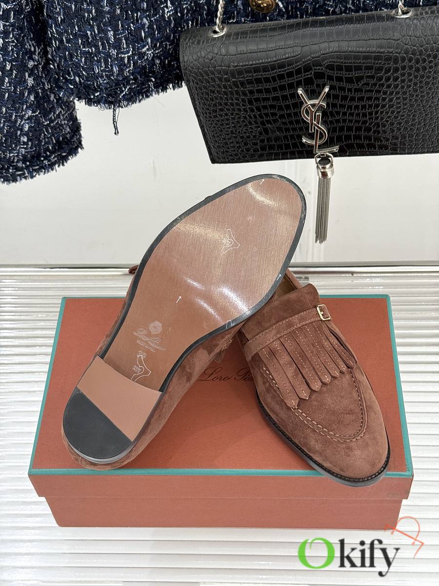 Okify Loro Piana Tassel Brick Orange Suede Women Loafers