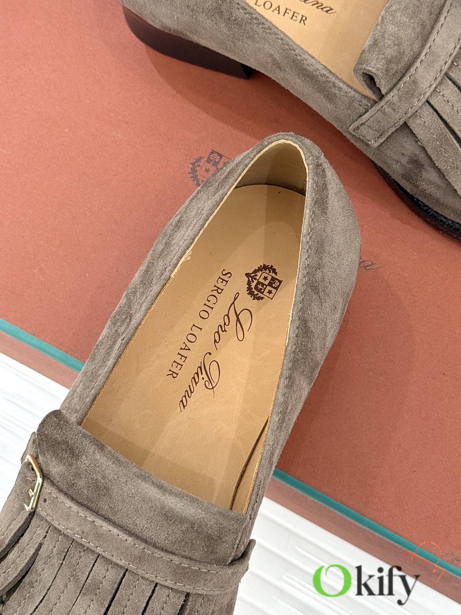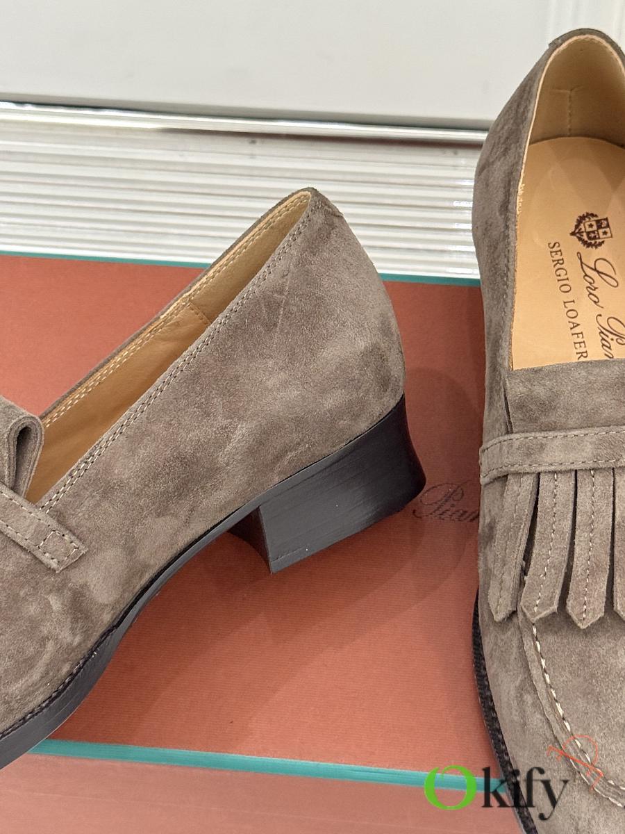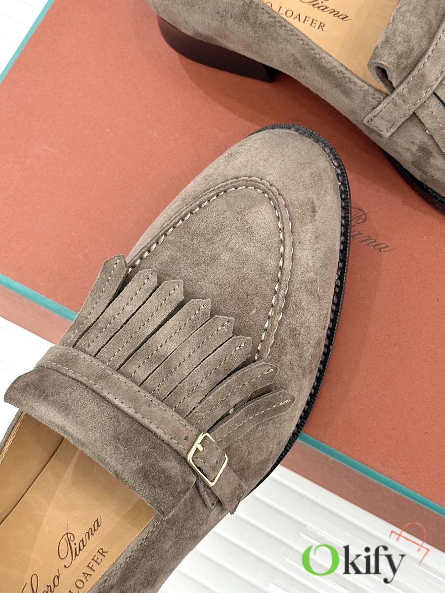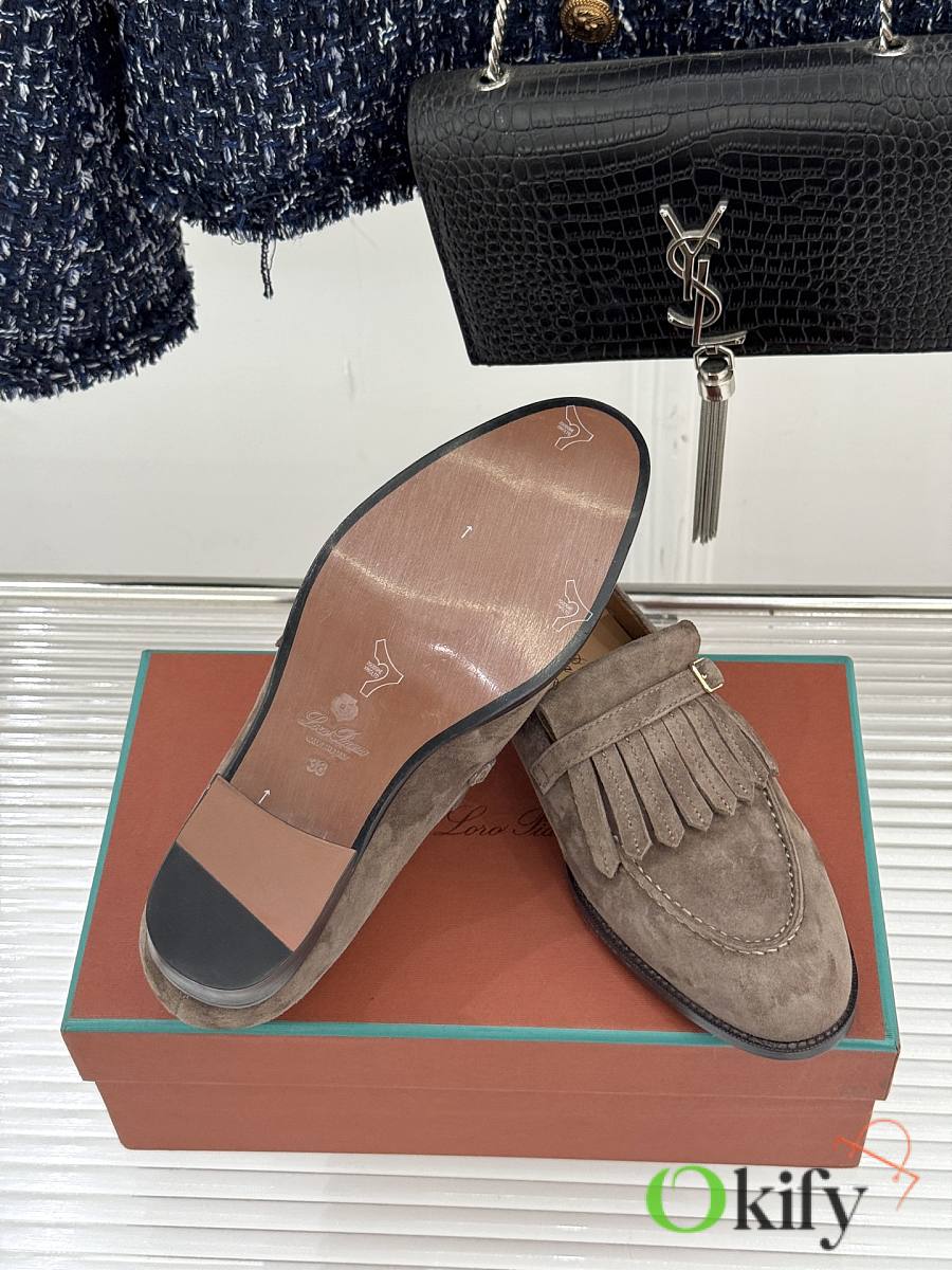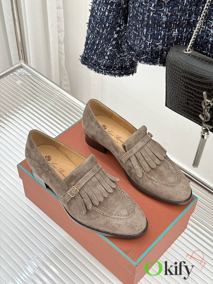 Okify Loro Piana Tassel Light Brown Suede Women Loafers