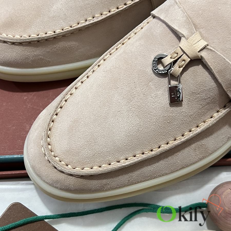 Custom-made imported double-sided cashmere fabric, custom-made imported calfskin lining. Imported aniline-dyed calfskin insoles, custom-made cowhide midsole, matching milk-colored custom mold outsole, original hardware with matching pendant, and matching foam midsole.