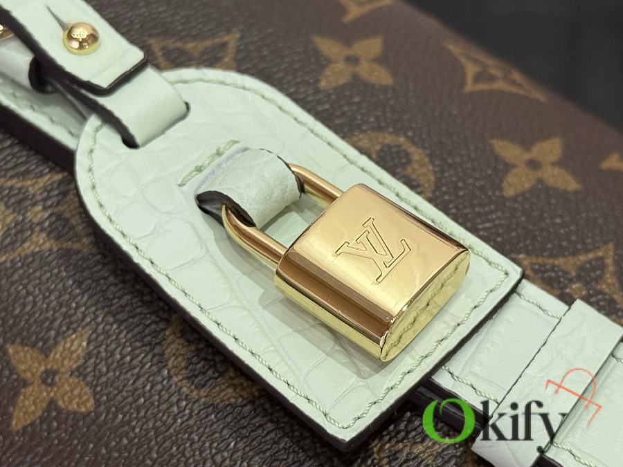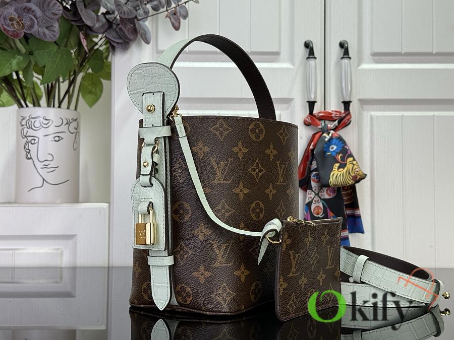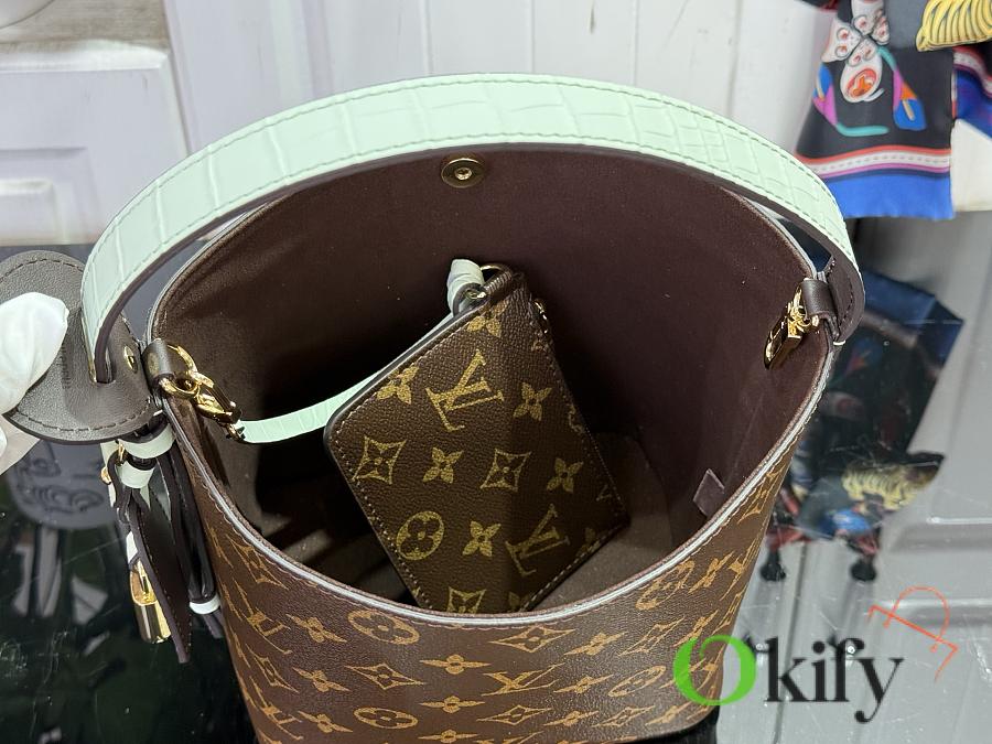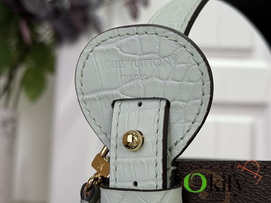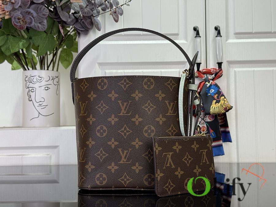 This All In BB handbag, from the Lunar New Year collection, features Monogram canvas with a bright lining and leather trim. The classic bucket bag silhouette includes a chic padlock and a detachable zippered interior pocket, and can be worn crossbody, over the shoulder, or carried by hand using the top handle.