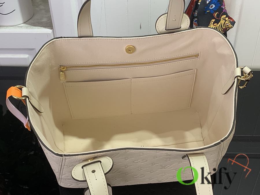 This All-In One small handbag expands the capacity definition of the All-In collection, transforming into a rounded Hobo bag or an open tote bag for easy carrying of everyday essentials. The Monogram Empreinte leather body is paired with dazzling metal hardware, and the LV padlock and nameplate highlight sophisticated details.