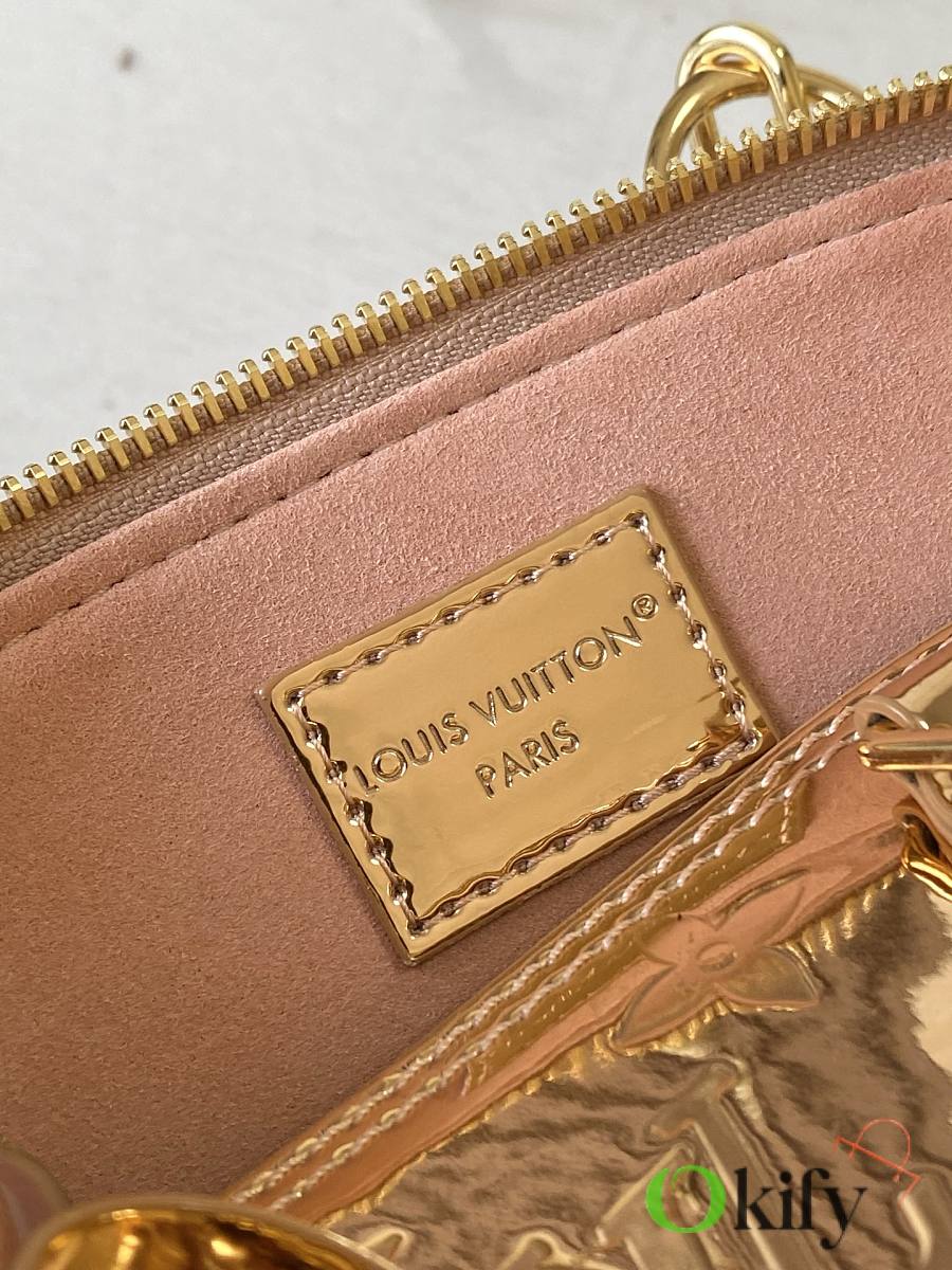 showcases the LV Ski series' style with this season's technological details. The Monogram Miroir weather-resistant canvas is dyed in a Silver hue, paired with tonal metal hardware for a dazzling finish. It adds a touch of retro-futuristic flair to any outfit. An LV logo padlock and a detachable shoulder strap complete the look.