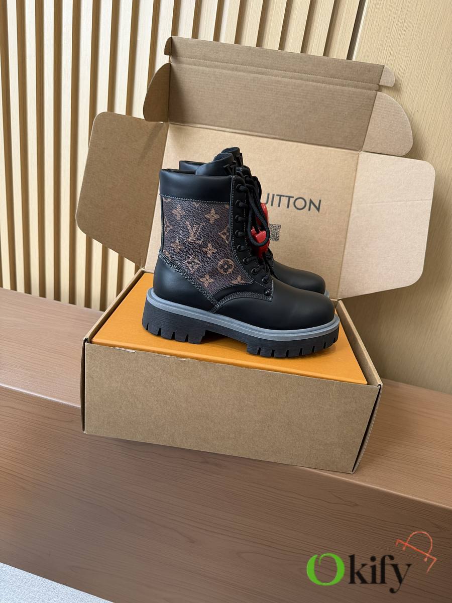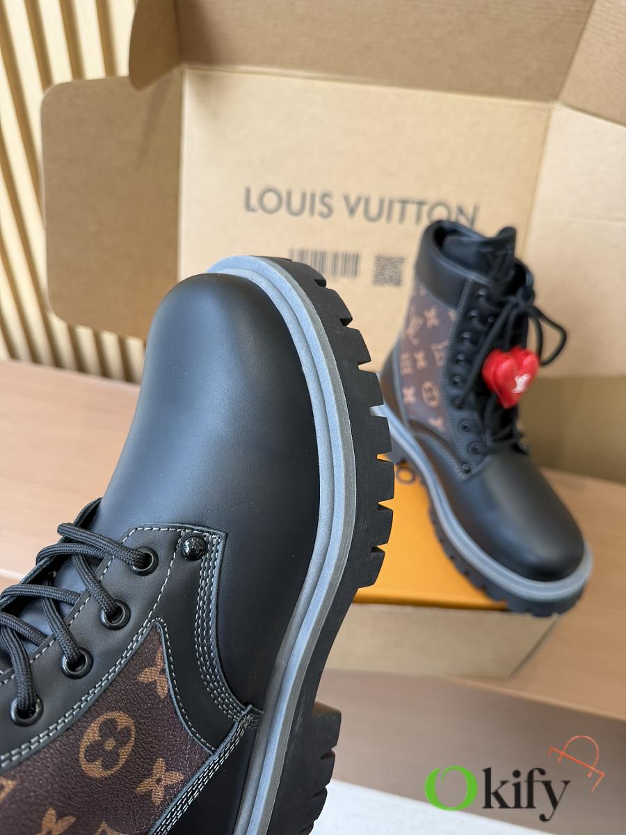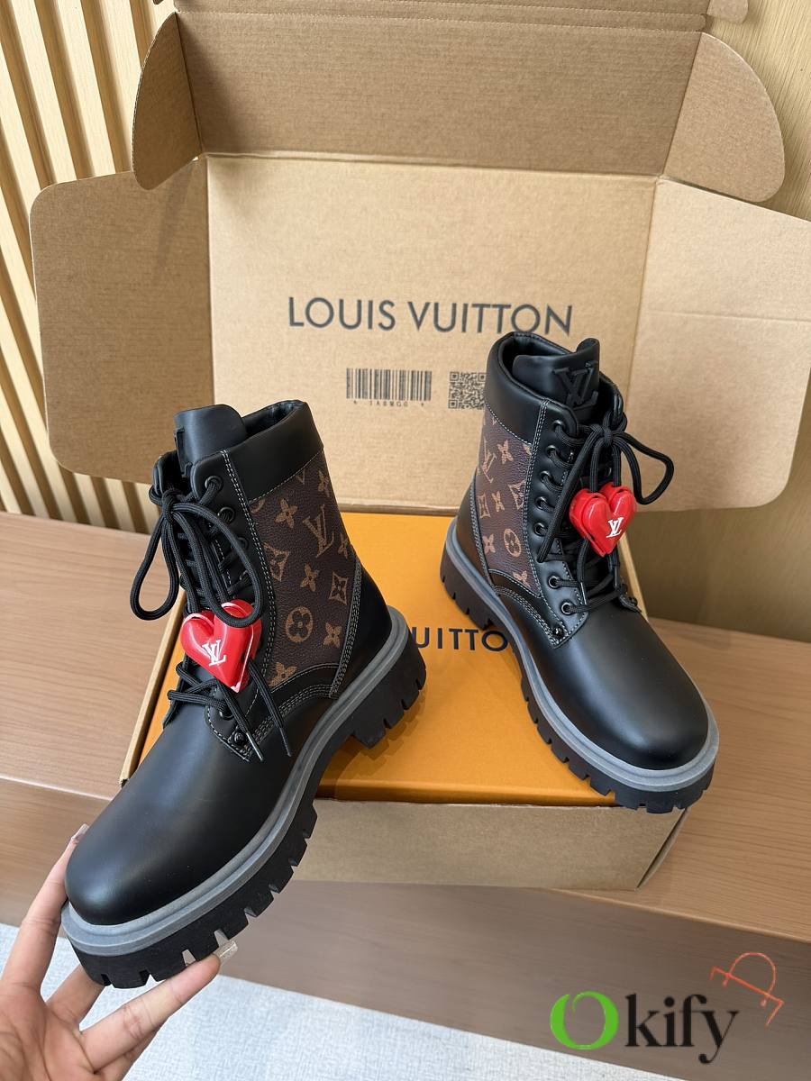 Okify Louis Vuitton Black And Brown Ankle Boots With Heart Charm