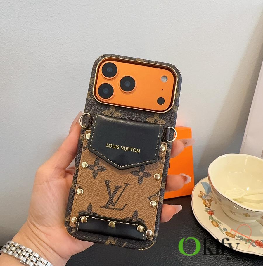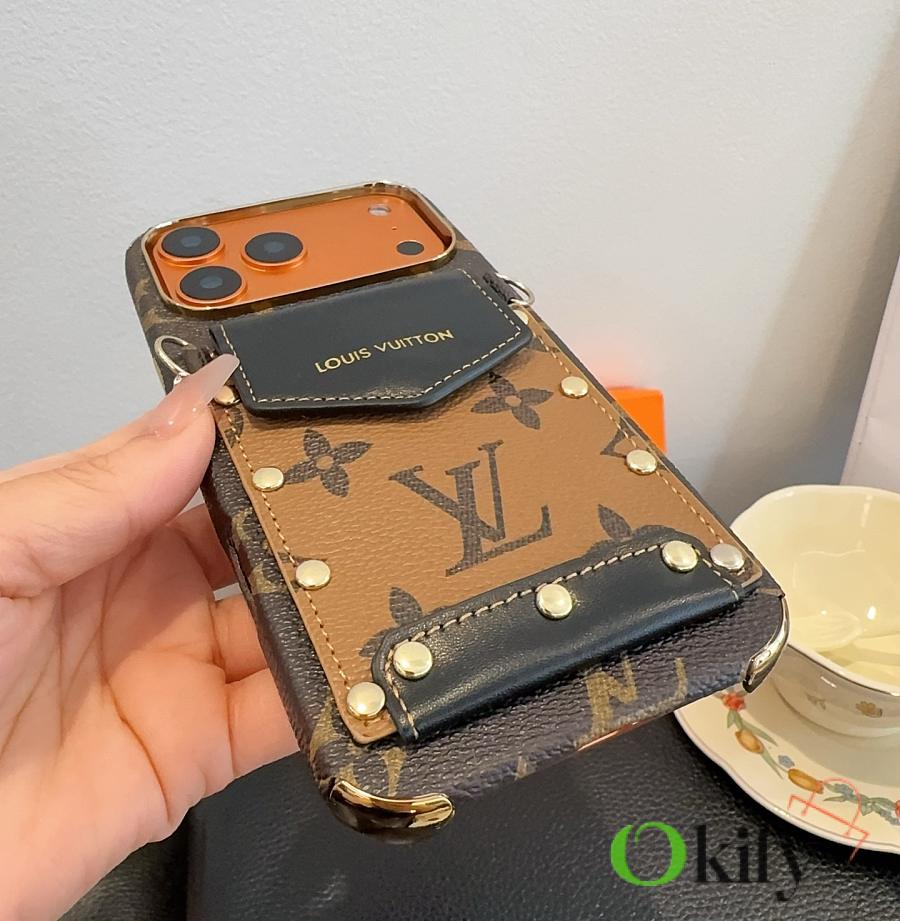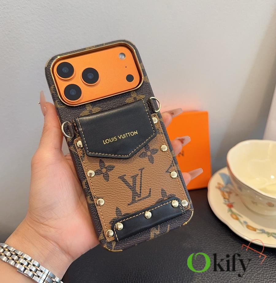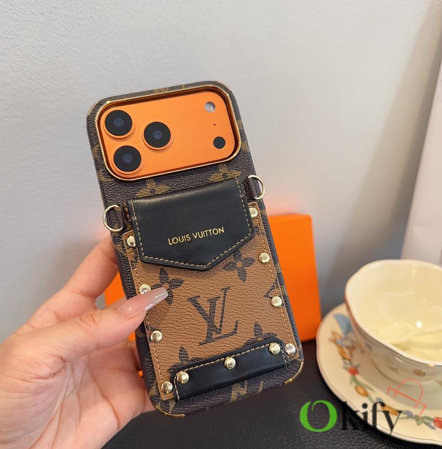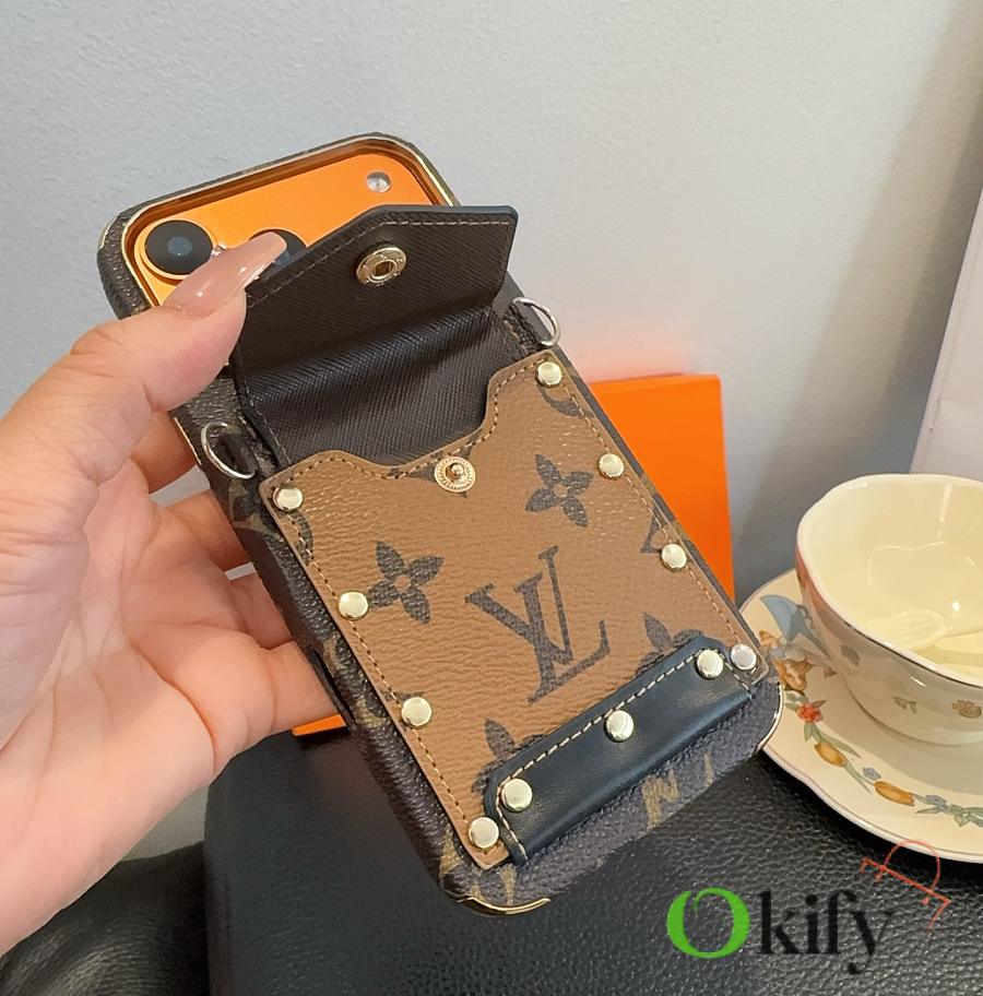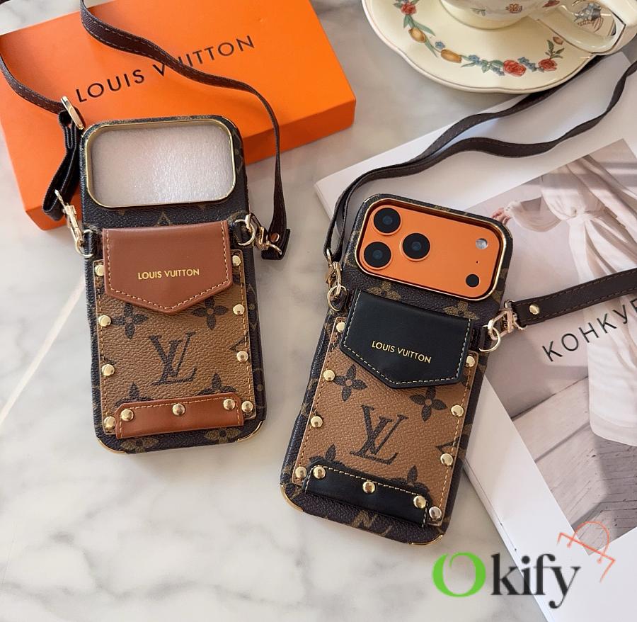 Okify Louis Vuitton Black Card Holder Phone Case Crossbody Strap