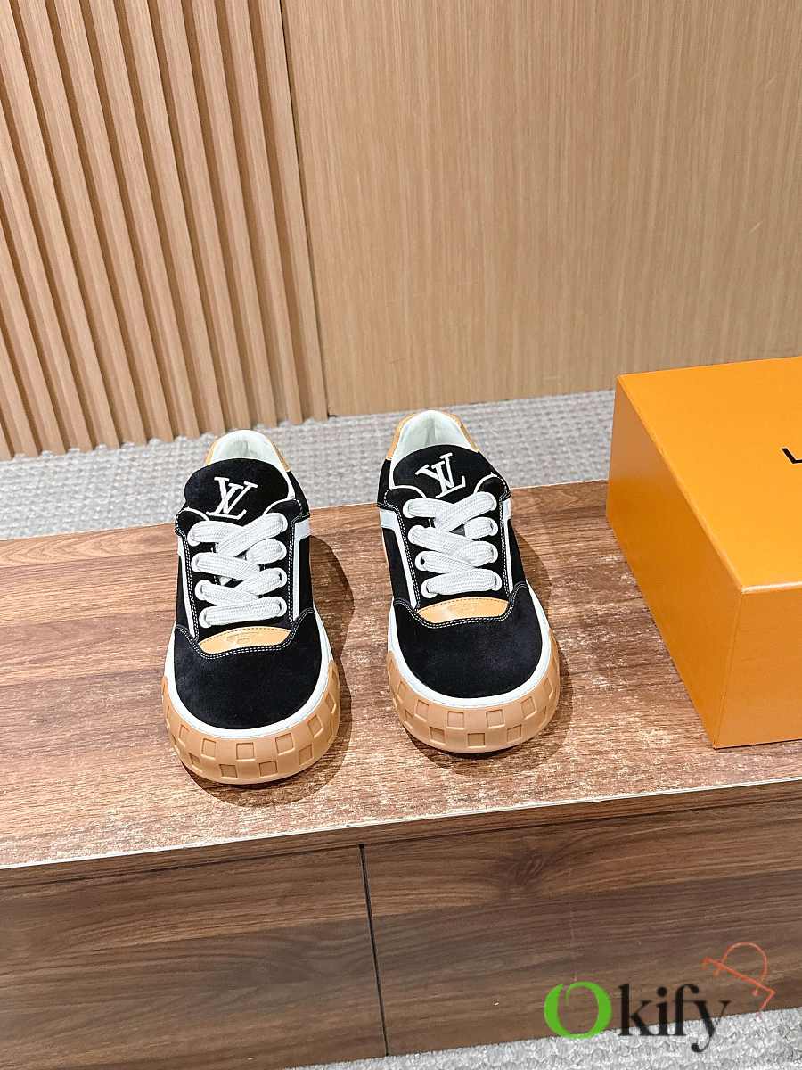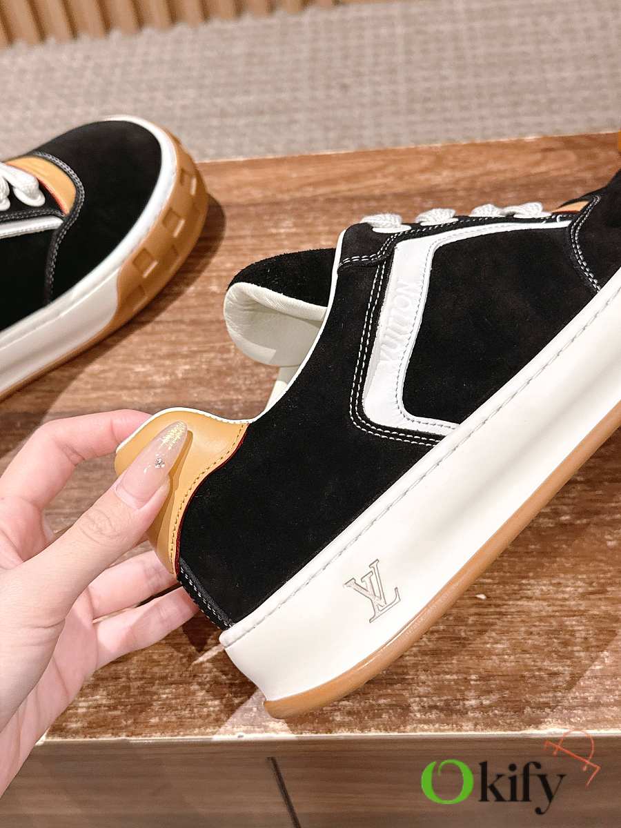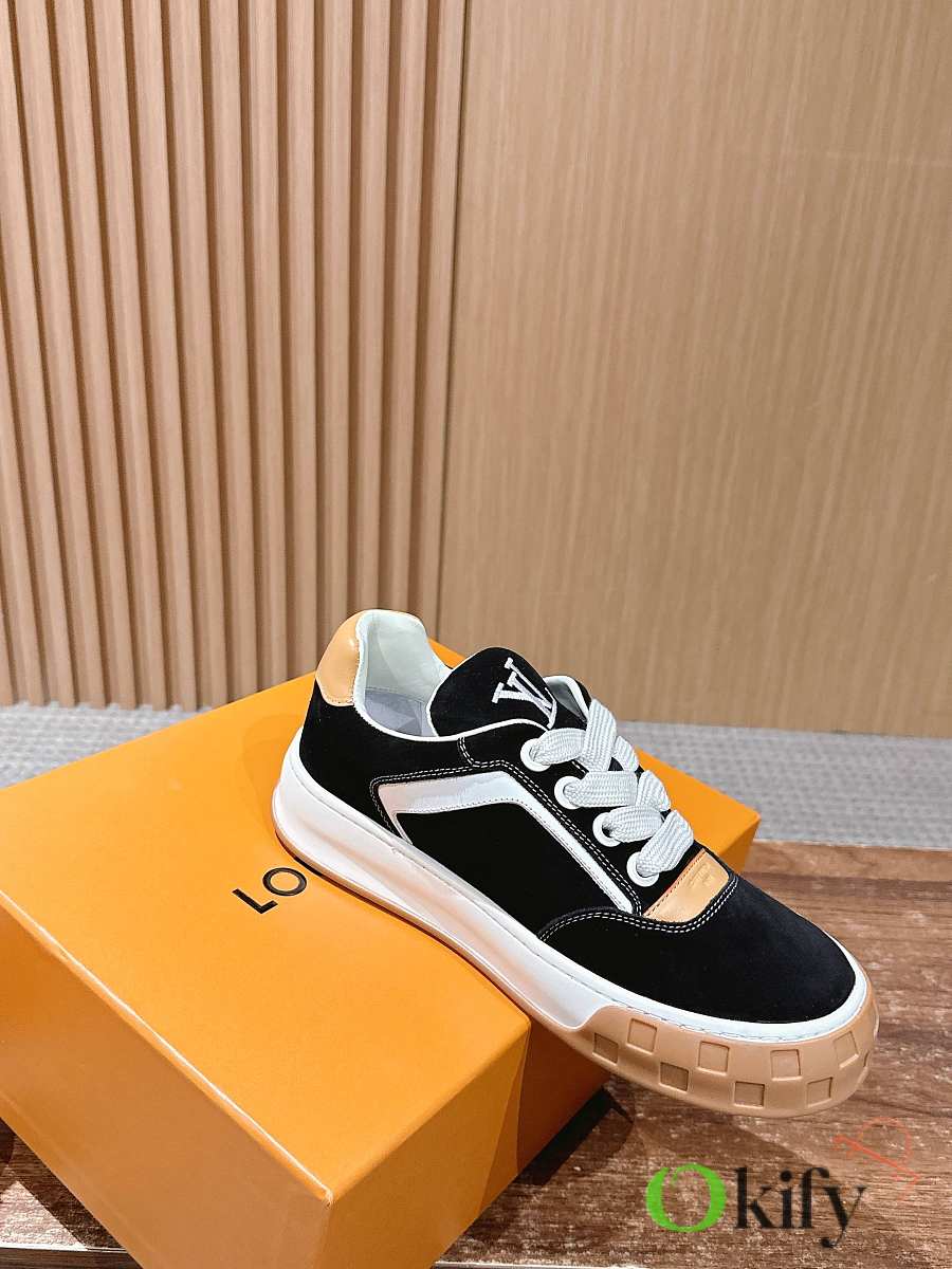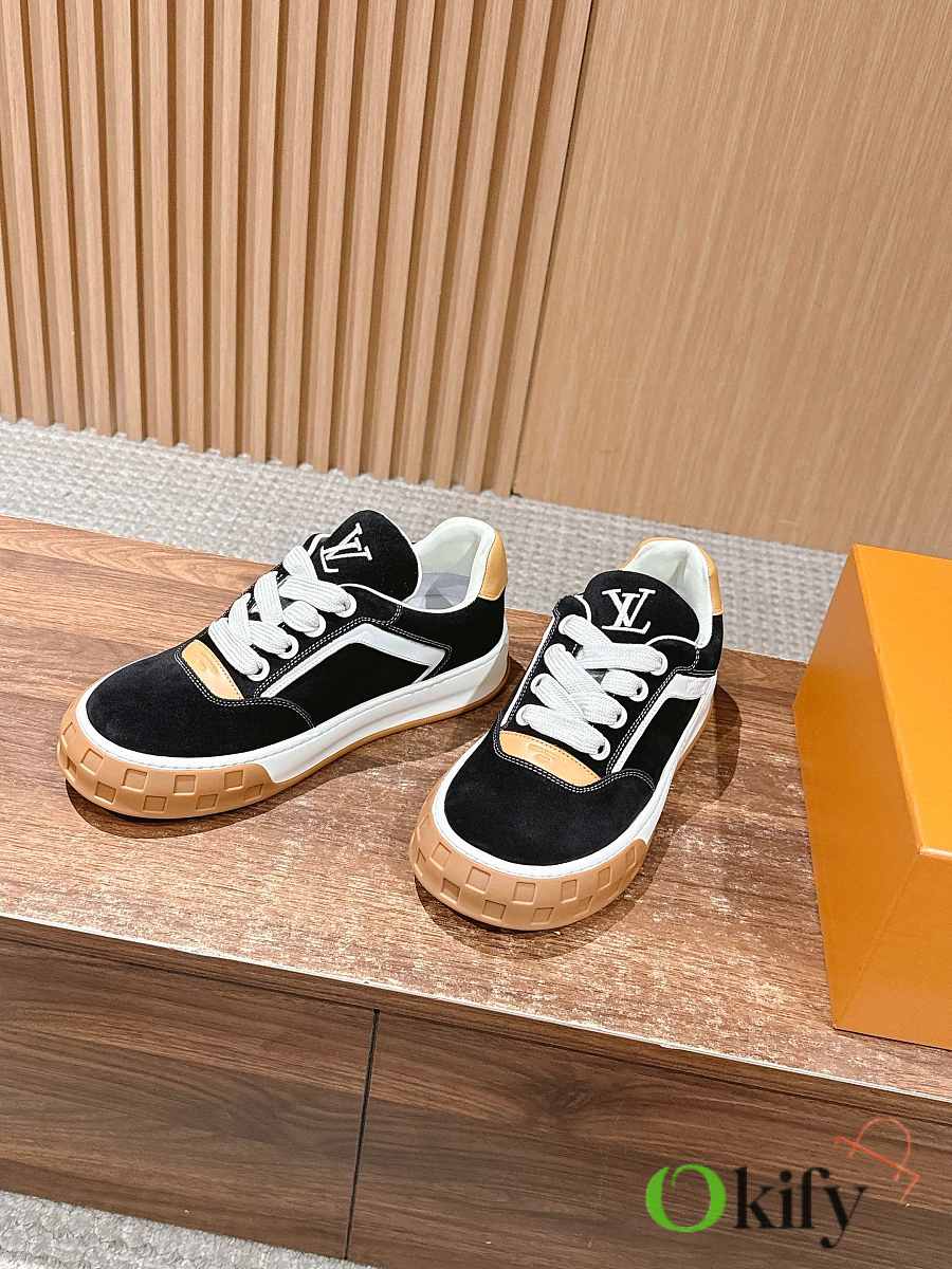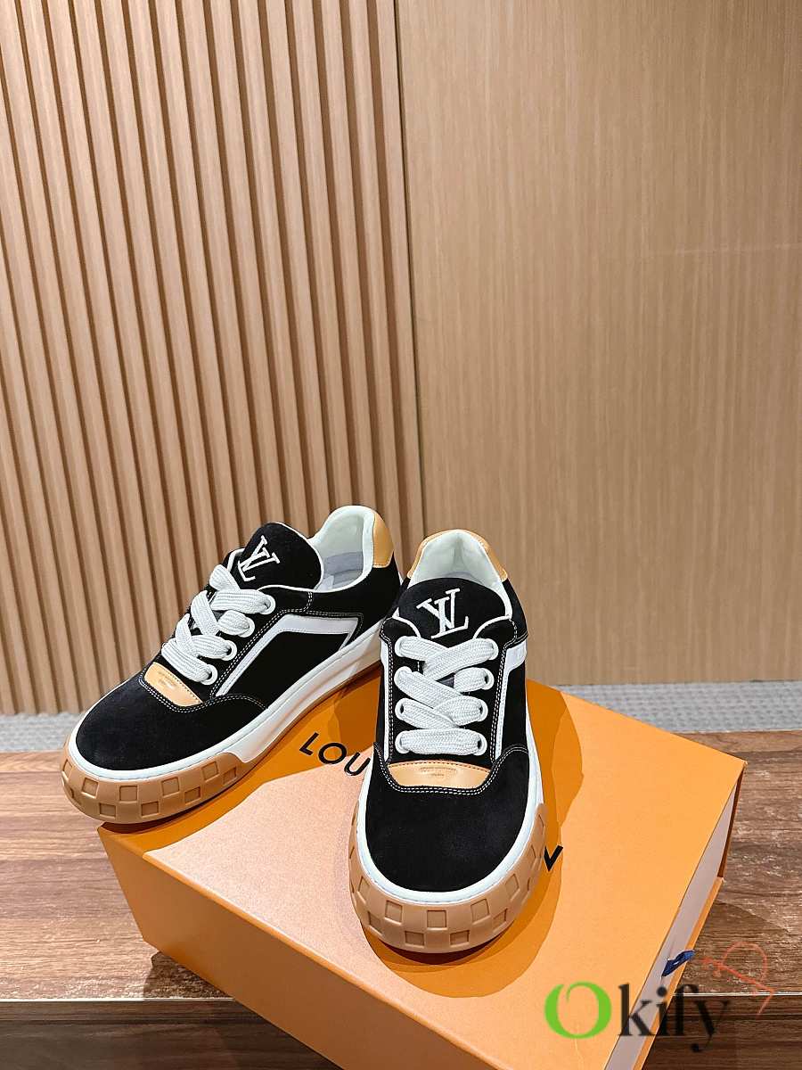 Wide fabric laces and a thick rubber outsole; the toe features a Damier checkerboard pattern, and the outsole is adorned with Monogram flowers, giving it a retro yet brand-recognizable look; the low-top design blends 2000s retro feel with modern trends, making it a casual and versatile luxury sneaker. Suede material, sheepskin lining, mold original outsole Size: 35-45 (Women's size 40/Men's size 45/46 are custom-made and non-refundable/exchangeable)