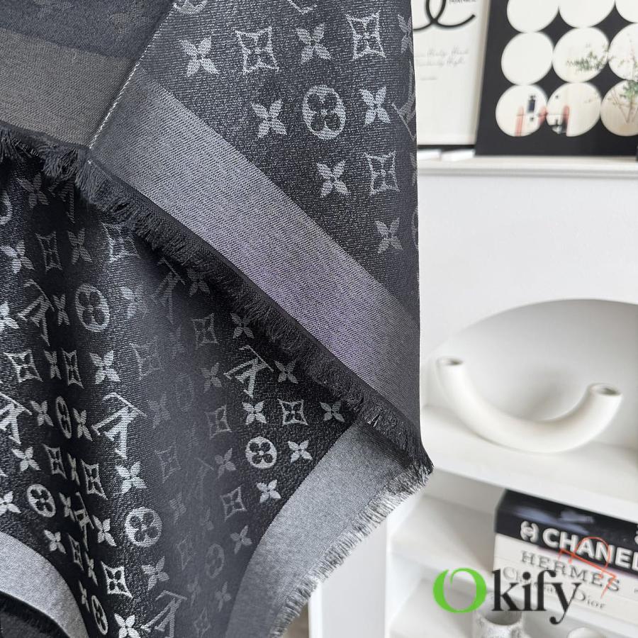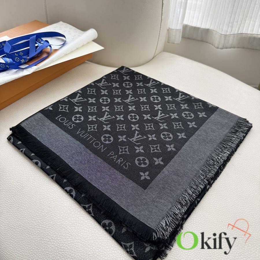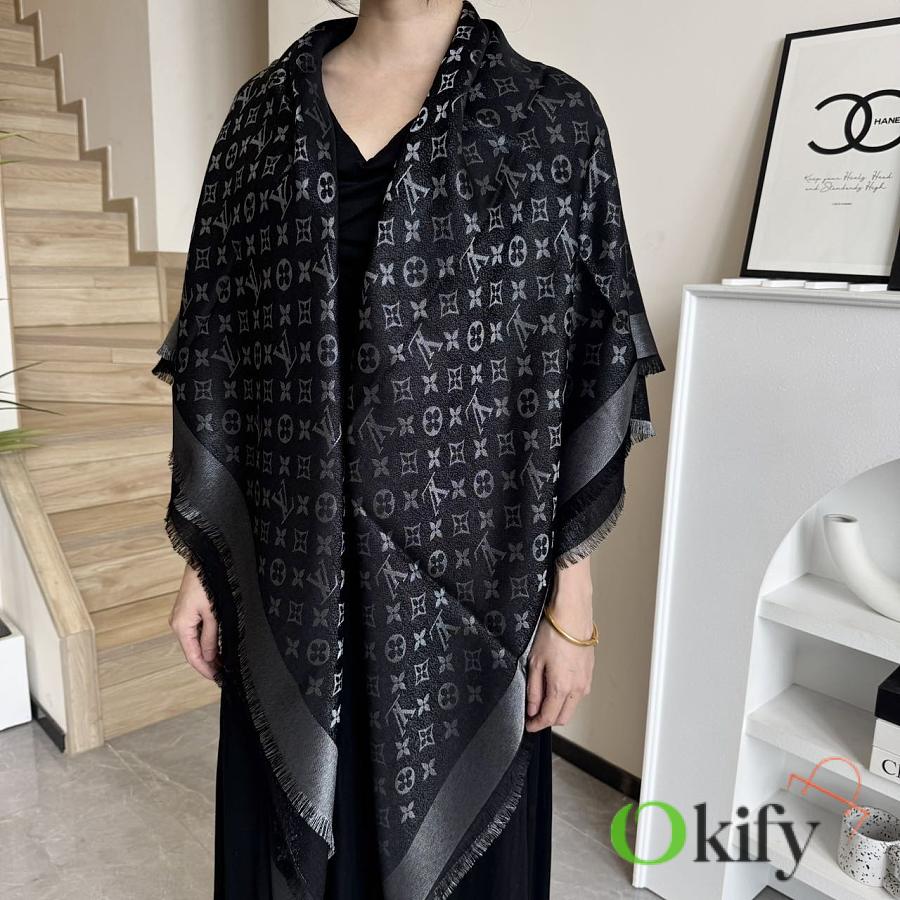 Okify Louis Vuitton Black Wool And Silk Square Scarf 140x140cm