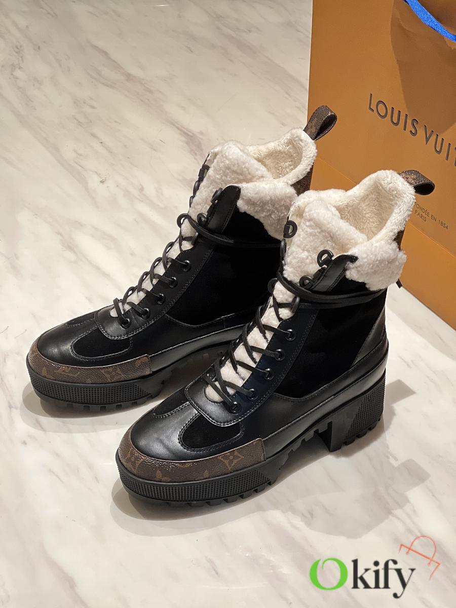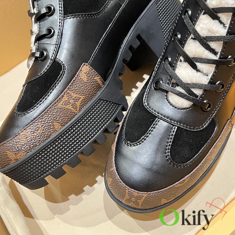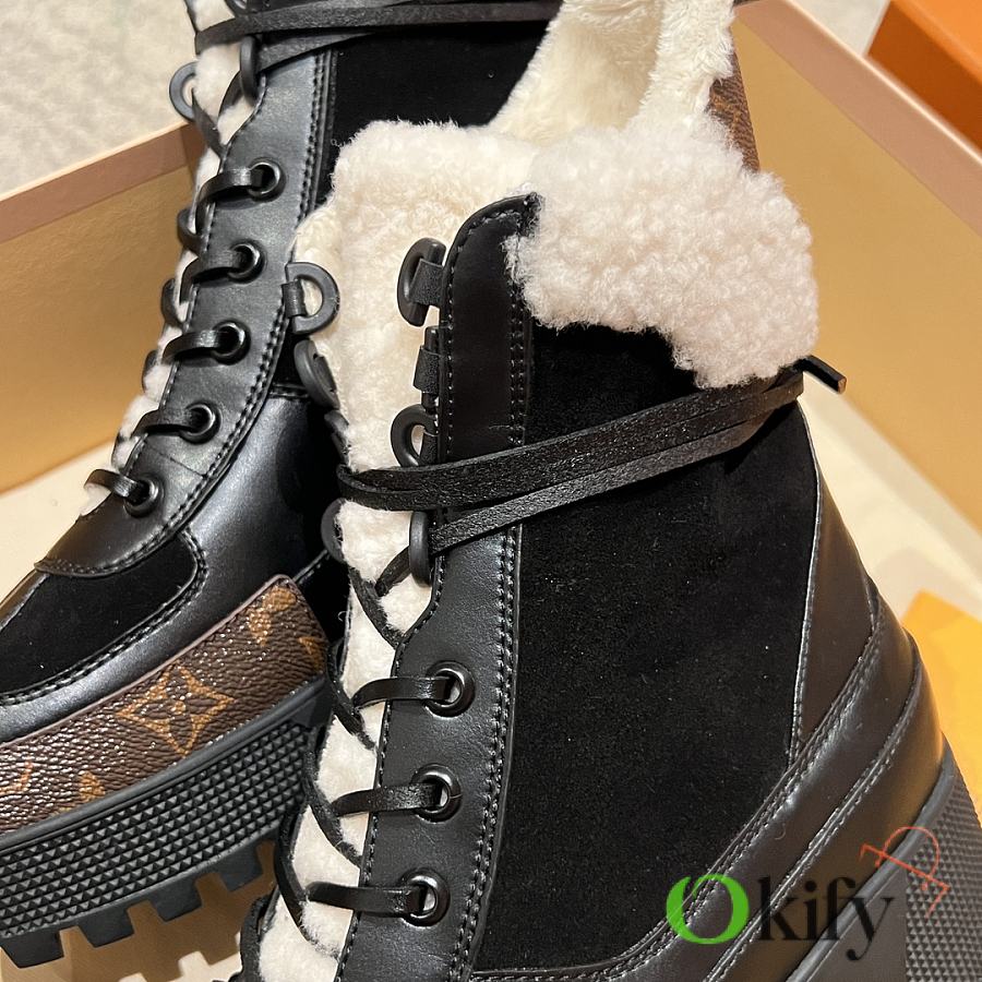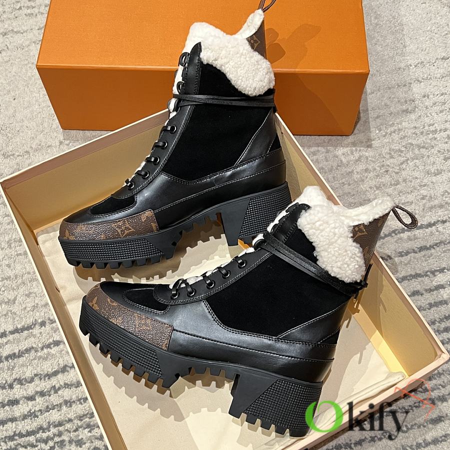 Outer material: cowhide/monogram leather/wool; inner lining: fleece; genuine leather laces; original TPU outsole.