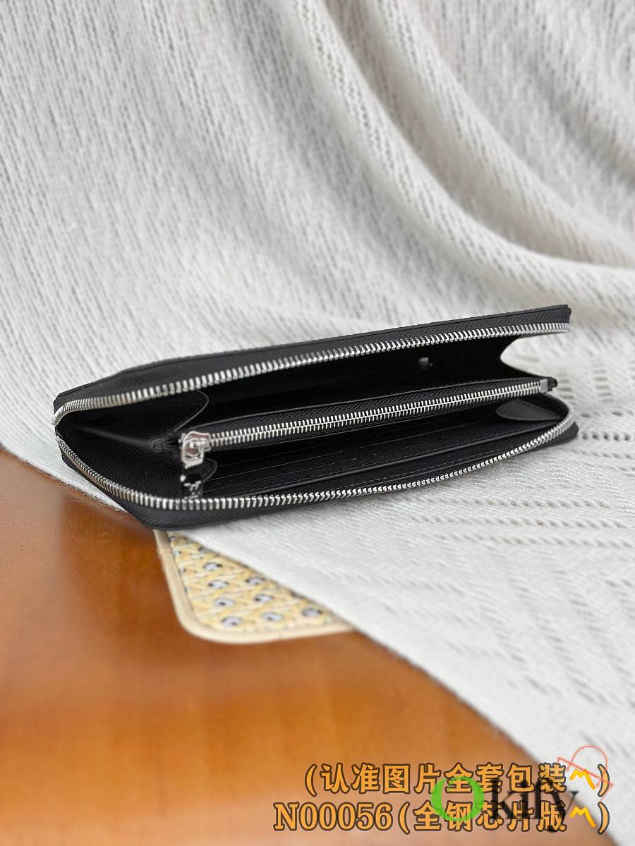 This Zippy Horizontal Wallet features Monogram Eclipse canvas with gleaming metal hardware, reimagining the classic Zippy Vertical Wallet in a horizontal configuration. A wraparound zipper opens the main compartment, while a central zippered pocket, two side card slots, and receipt compartments add further functionality.