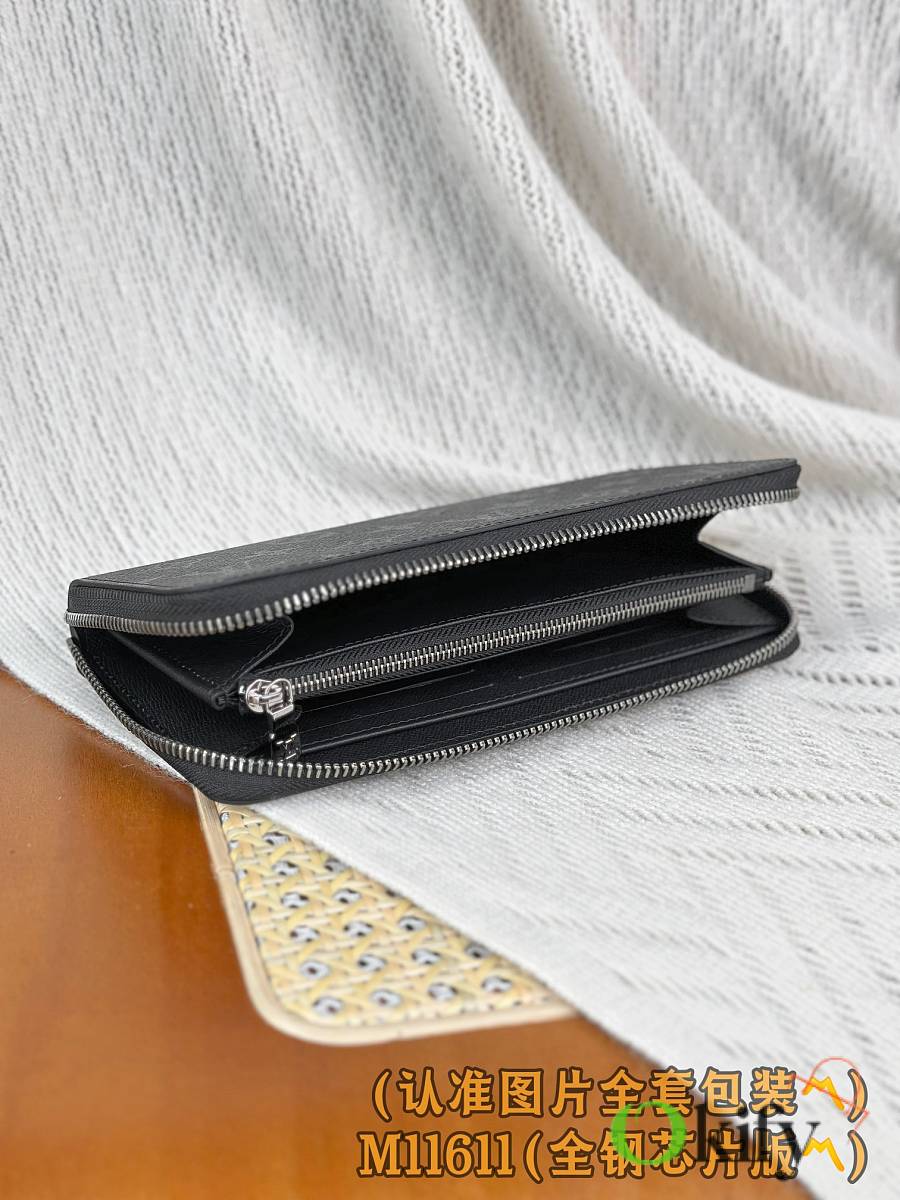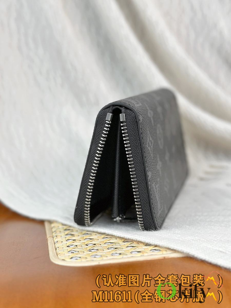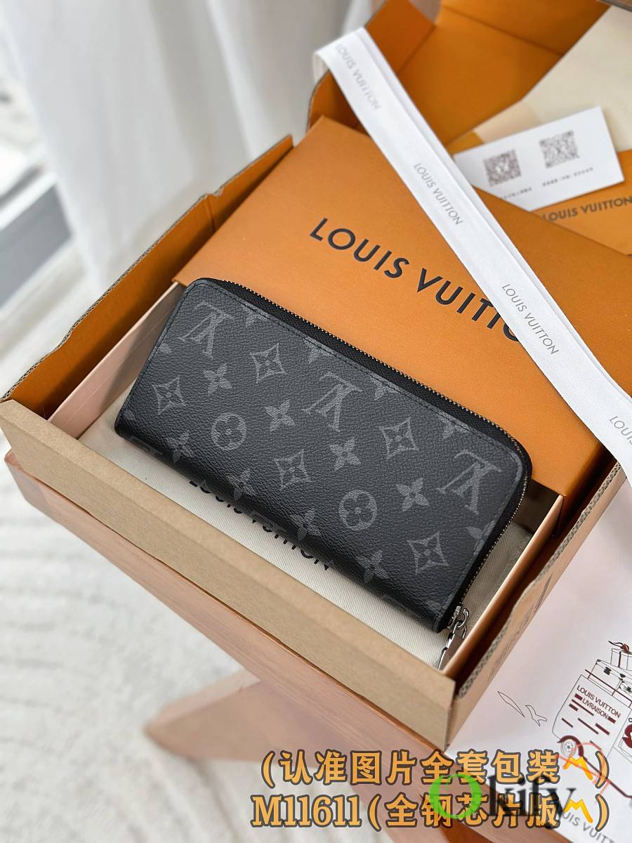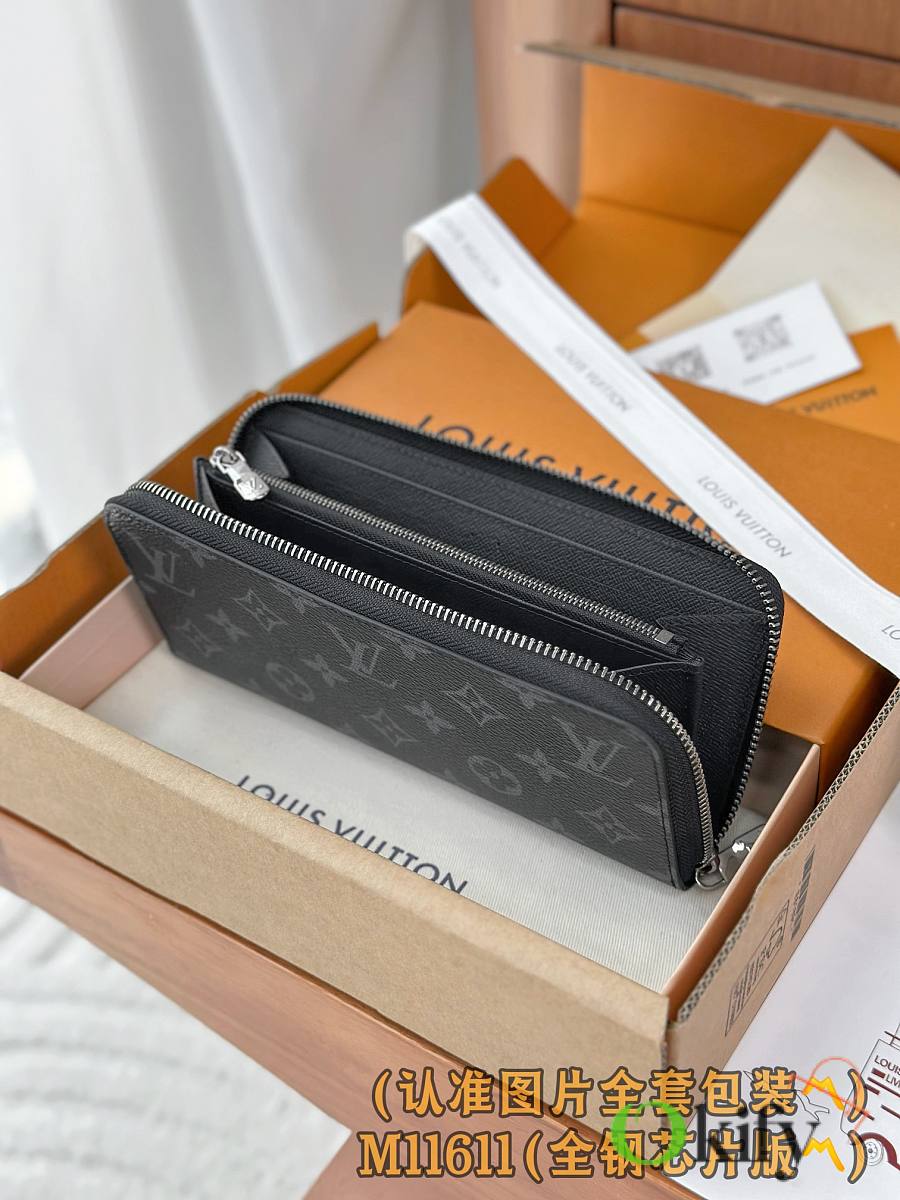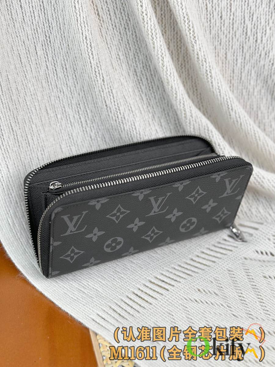 This Zippy Horizontal wallet features Monogram Eclipse canvas with gleaming metal hardware, reinterpreting the classic Zippy Vertical wallet in a horizontal configuration. A wraparound zipper opens the main compartment, while a central zippered pocket, two side card slots, and receipt compartments add functional considerations.