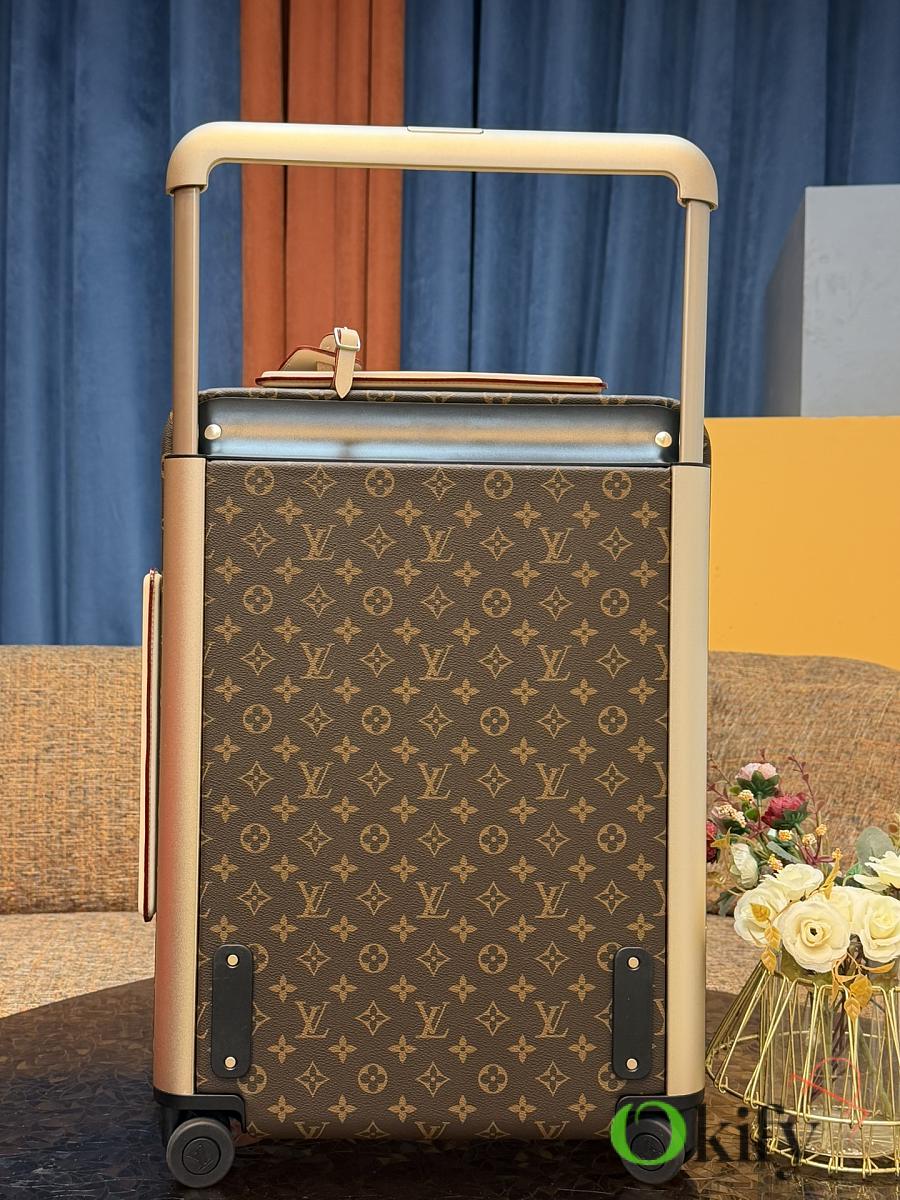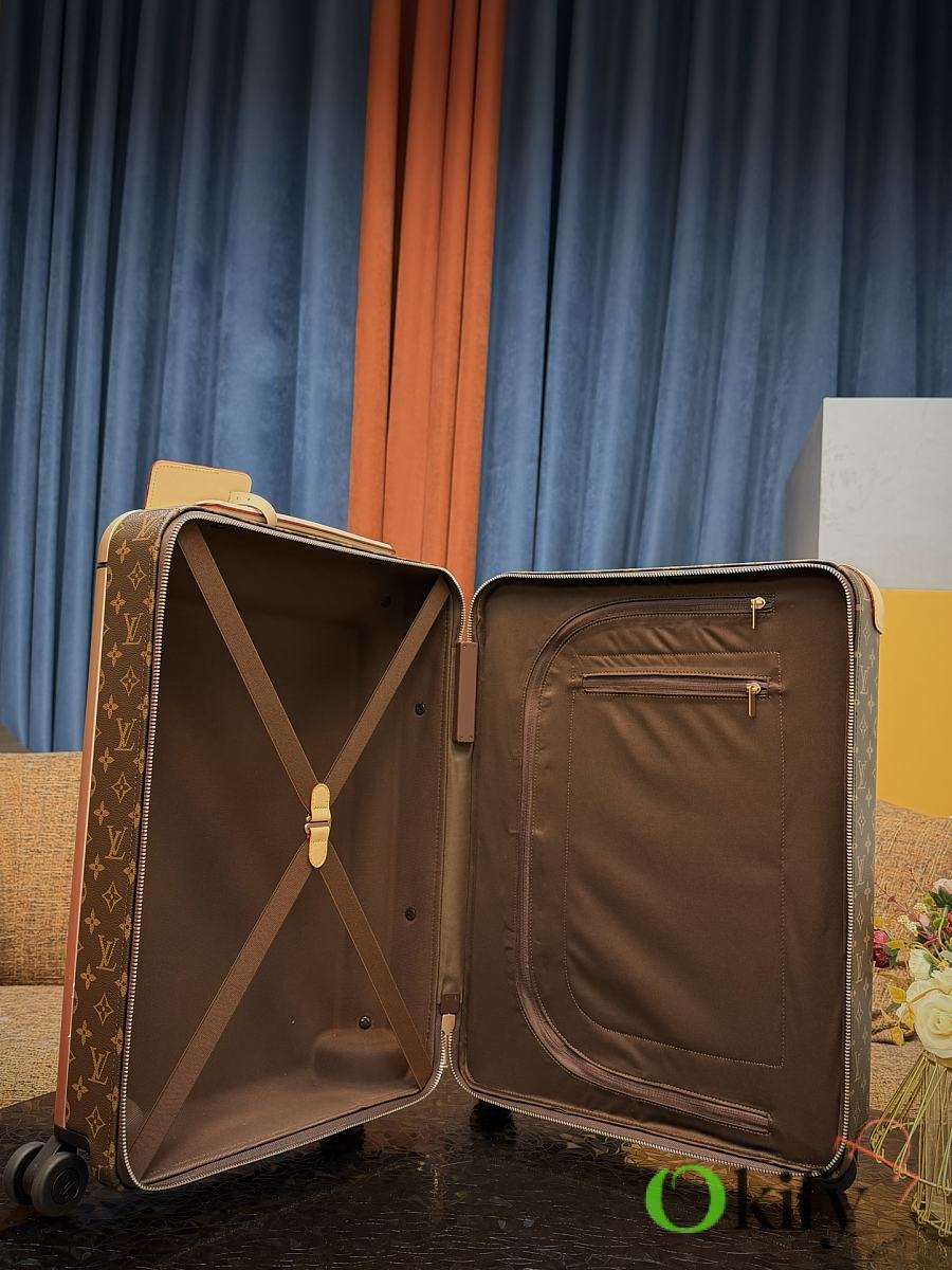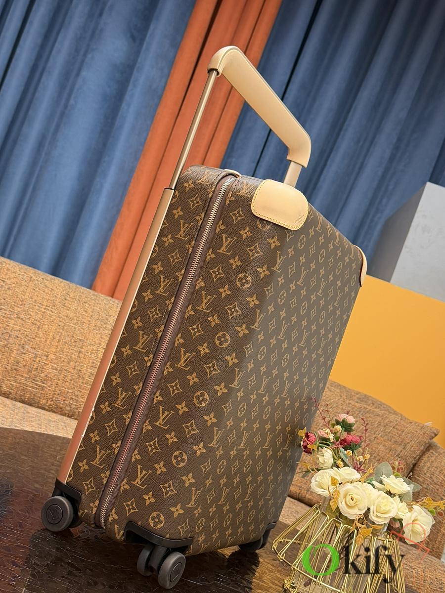 Dimensions: 50cm (H) x 36cm (W) x 18cm (D) (Carry-on) The Louis Vuitton Horizon series four-wheeled suitcase is a refreshed version of the brand's classic travel trunk. It incorporates striking lemon-yellow leather corner protectors and a pull handle design on the iconic Monogram canvas, combining retro recognizability with modern vitality. The suitcase features 360° silent universal wheels and a multi-position adjustable pull handle, ensuring durability while making travel smoother and lighter – a desirable choice for travelers who value individuality and quality.