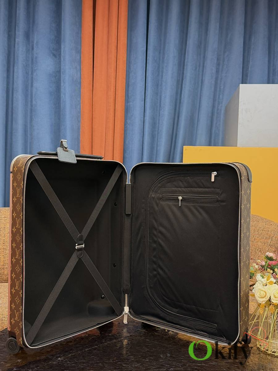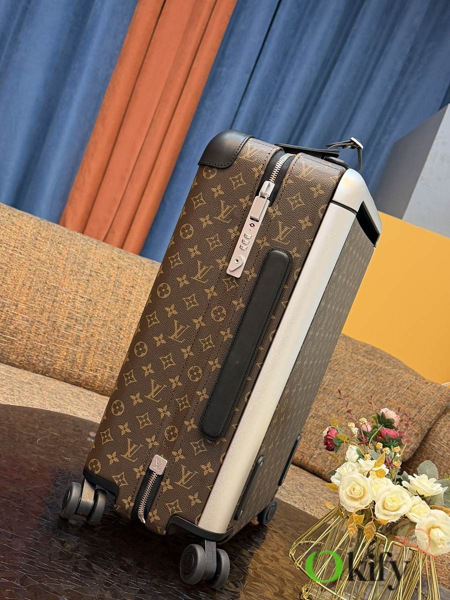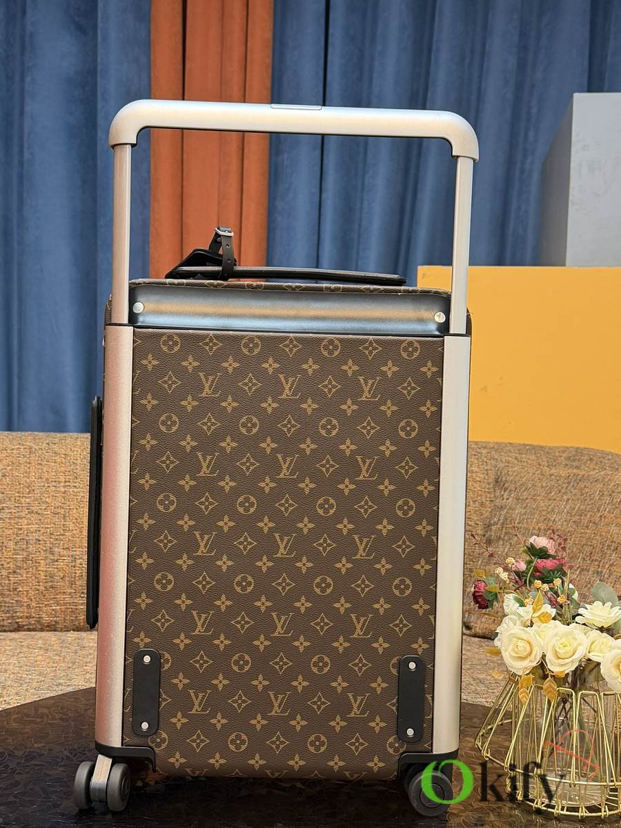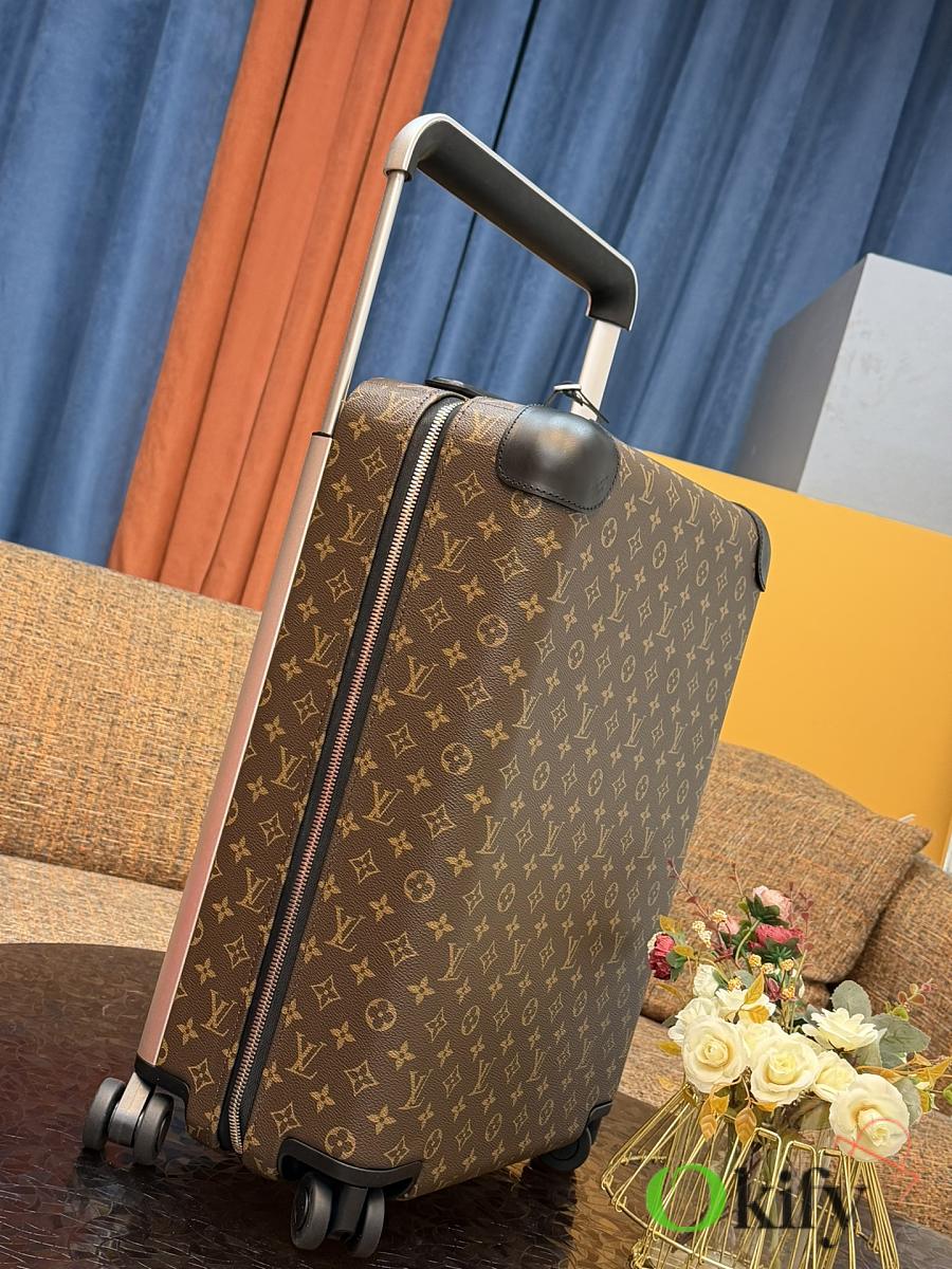 Dimensions: 50cm (H) x 36cm (W) x 18cm (D) (Carry-on) The Louis Vuitton Horizon series four-wheeled suitcase is a refreshed version of the brand's classic travel trunk. It incorporates striking lemon-yellow leather corner protectors and a pull handle design on the iconic Monogram canvas, combining retro recognizability with modern vitality. The suitcase features 360° silent universal wheels and a multi-position adjustable pull handle, ensuring durability while making travel smoother and lighter – a desirable choice for travelers who value individuality and quality.