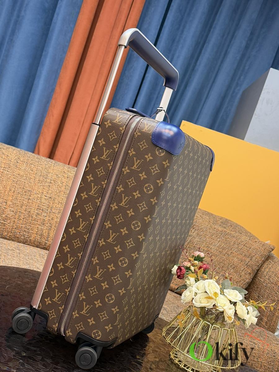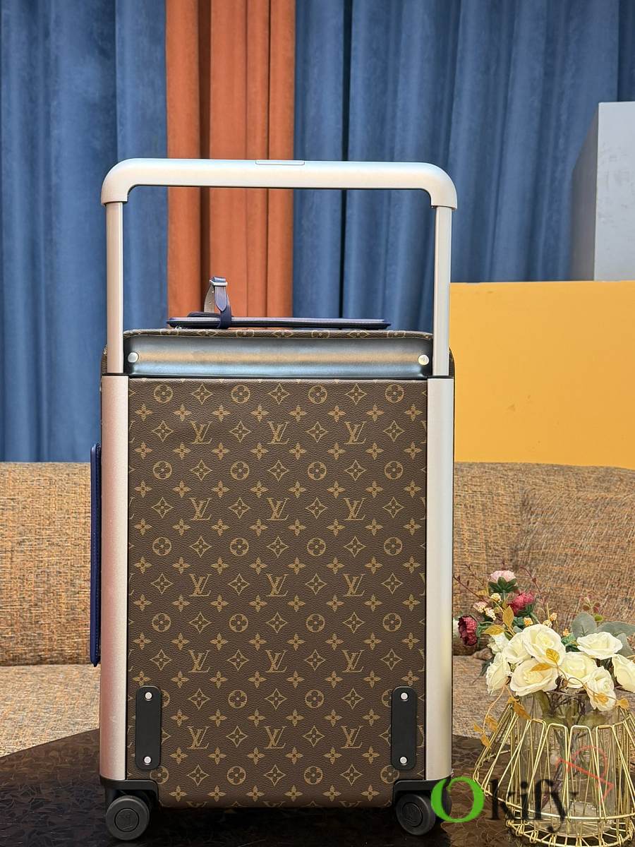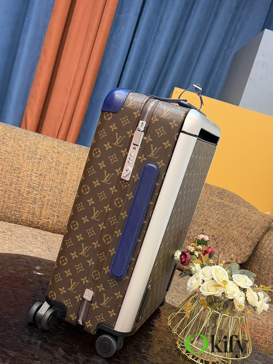 Dimensions: 50cm (H) x 36cm (W) x 18cm (D) (Carry-on) The Louis Vuitton Horizon series four-wheeled suitcase is a refreshed version of the brand's classic travel trunk. It incorporates striking lemon-yellow leather corner protectors and a pull handle design on the iconic Monogram canvas, combining retro recognizability with modern vitality. The suitcase features 360° silent universal wheels and a multi-position adjustable pull handle, ensuring durability while making travel smoother and lighter – a desirable choice for travelers who value individuality and quality.