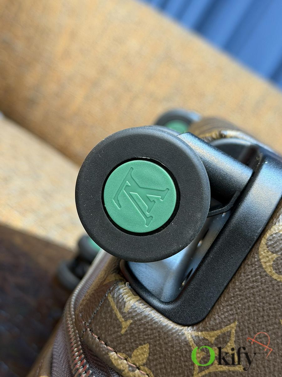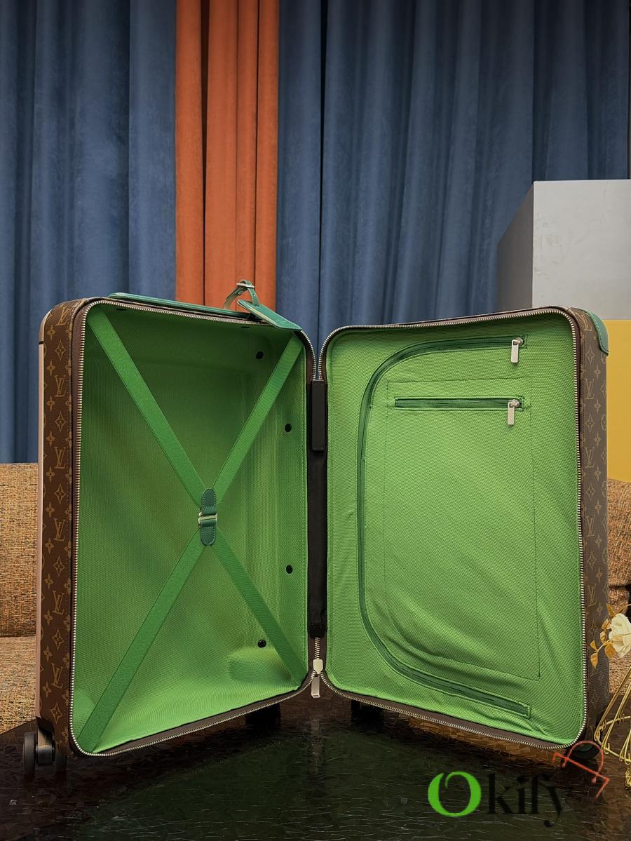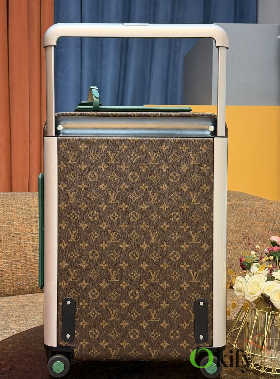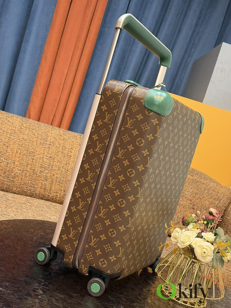 Dimensions: 50cm (H) x 36cm (W) x 18cm (D) (Carry-on) The Louis Vuitton Horizon series four-wheeled suitcase is a refreshed version of the brand's classic travel trunk. It incorporates striking lemon-yellow leather corner protectors and a pull handle design on the iconic Monogram canvas, combining retro recognizability with modern vitality. The suitcase features 360° silent universal wheels and a multi-position adjustable pull handle, ensuring durability while making travel smoother and lighter – a desirable choice for travelers who value individuality and quality.
