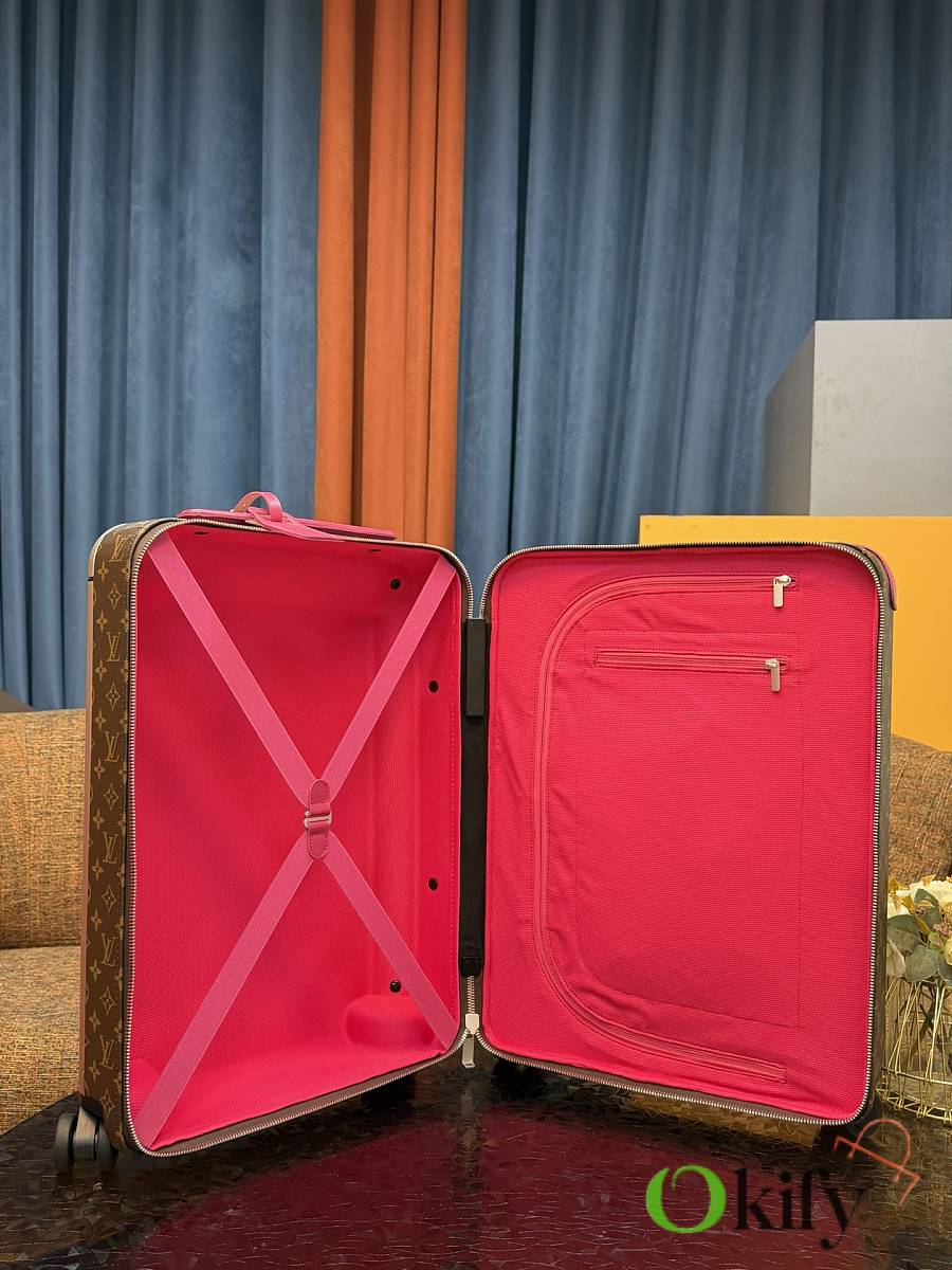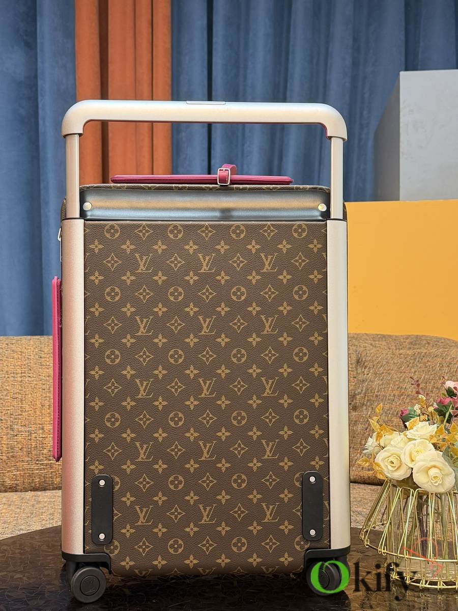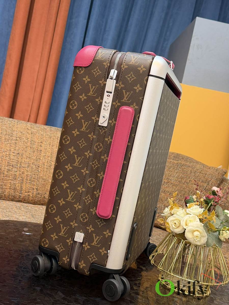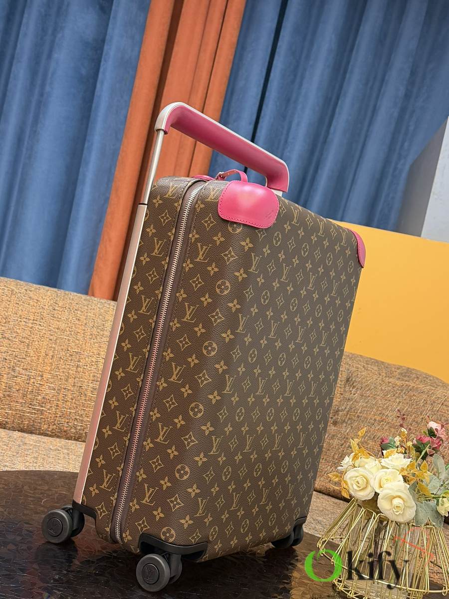 Dimensions: 50cm (H) x 36cm (W) x 18cm (D) (Carry-on) The Louis Vuitton Horizon series four-wheeled suitcase is a refreshed version of the brand's classic travel trunk. It incorporates striking lemon-yellow leather corner protectors and a pull handle design on the iconic Monogram canvas, combining retro recognizability with modern vitality. The suitcase features 360° silent universal wheels and a multi-position adjustable pull handle, ensuring durability while making travel smoother and lighter – a desirable choice for travelers who value individuality and quality.