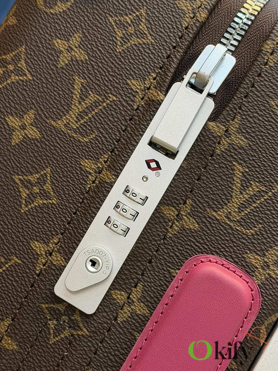 • Corner Protectors and Pull Handle Trimming: Fuchsia red Taurillon calfskin, soft and delicate to the touch, highly resilient, providing impact protection for the suitcase while brightening the overall look with its vibrant color.