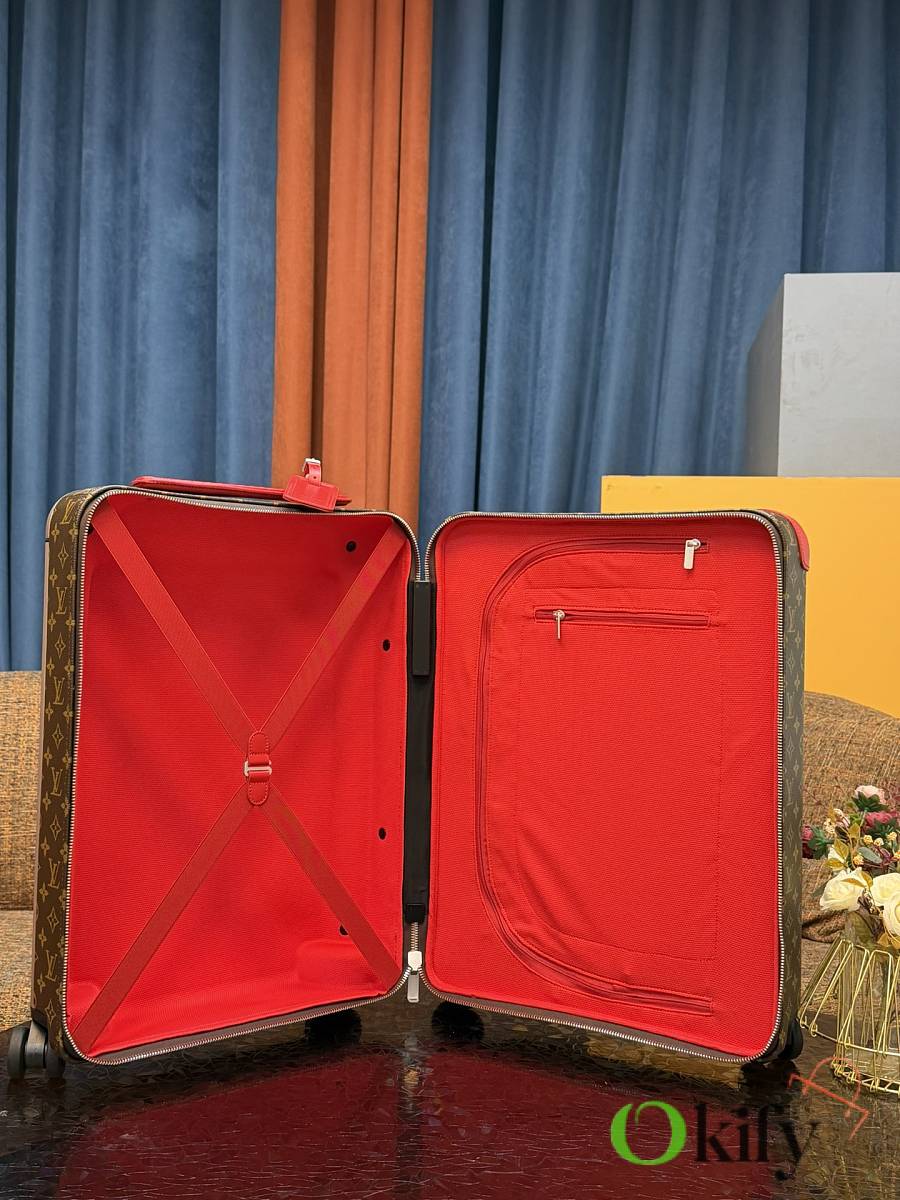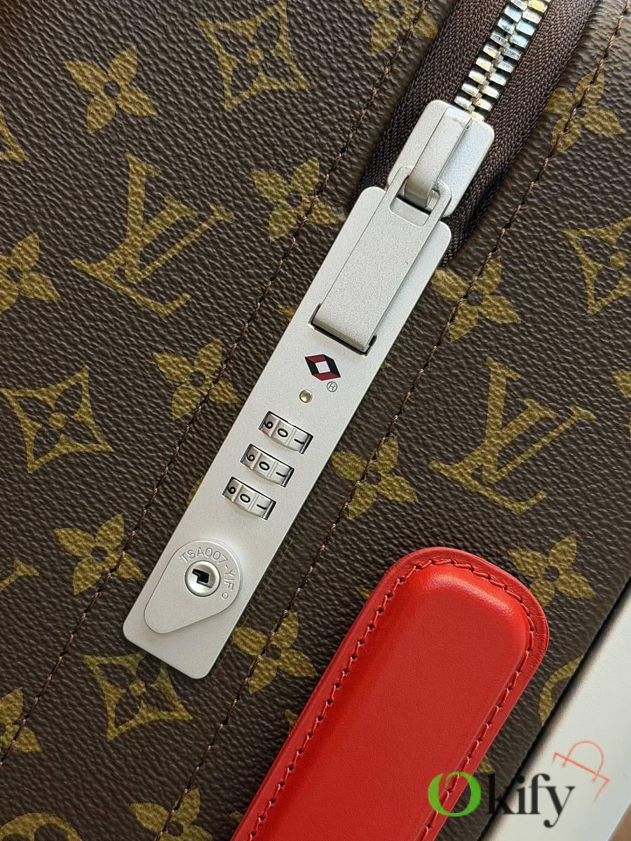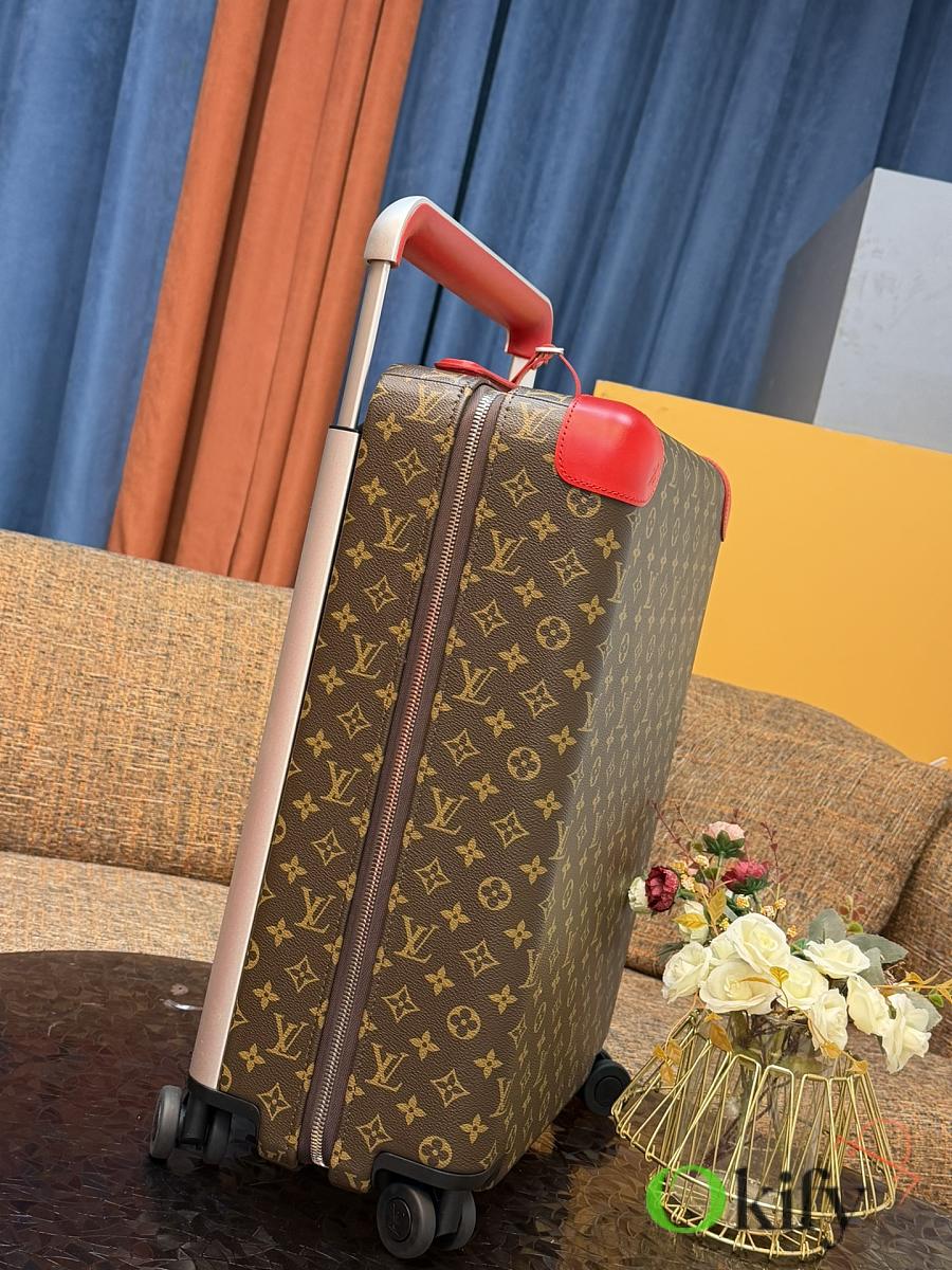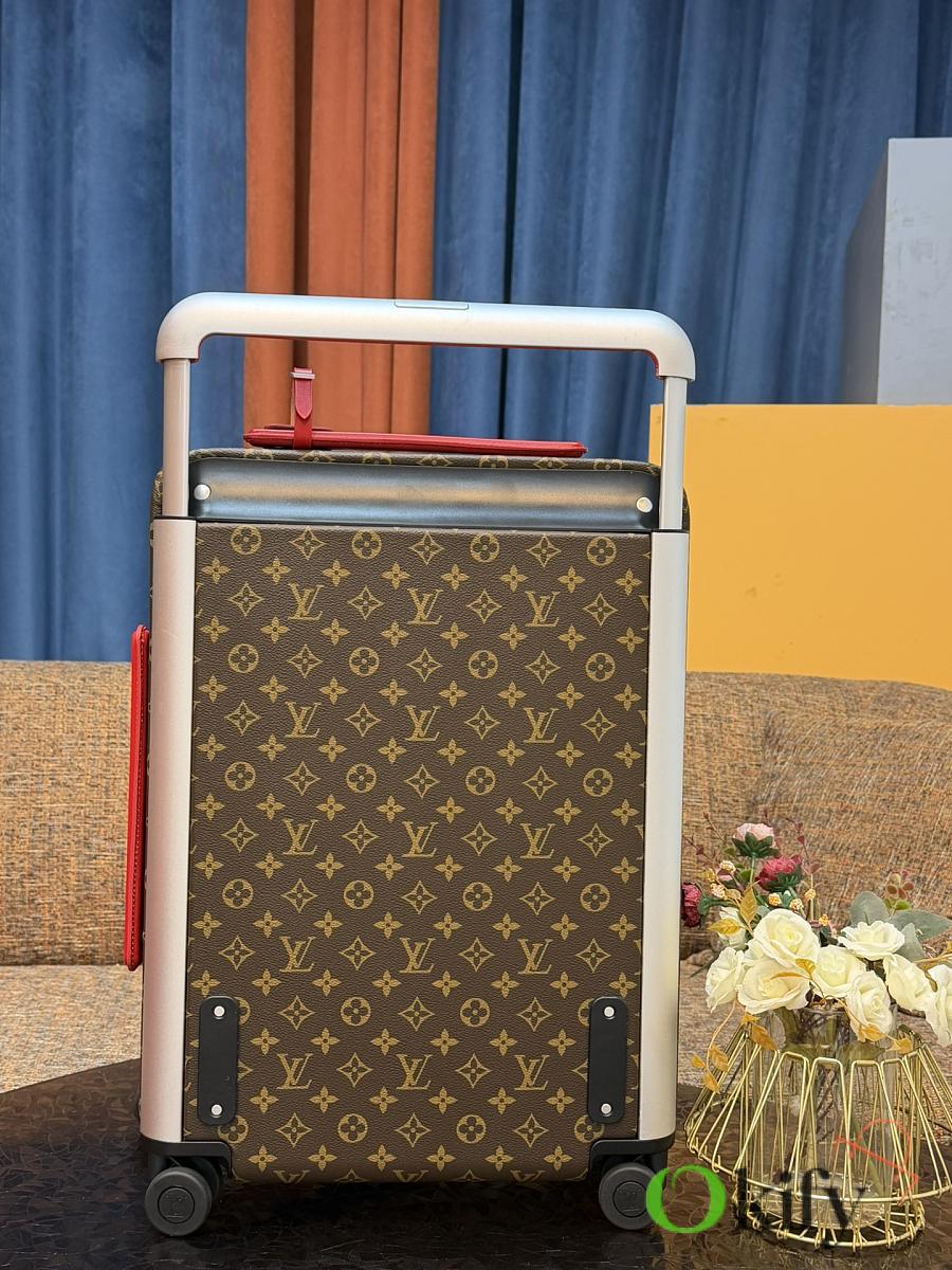 Dimensions: 50cm (H) x 36cm (W) x 18cm (D) (Carry-on) The Louis Vuitton Horizon series four-wheeled suitcase is a refreshed version of the brand's classic travel trunk. It incorporates striking lemon-yellow leather corner protectors and a pull handle design on the iconic Monogram canvas, combining retro recognizability with modern vitality. The suitcase features 360° silent universal wheels and a multi-position adjustable pull handle, ensuring durability while making travel smoother and lighter – a desirable choice for travelers who value individuality and quality.