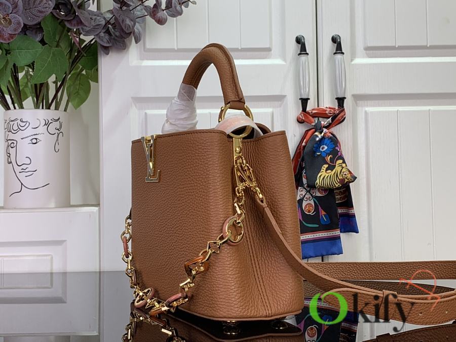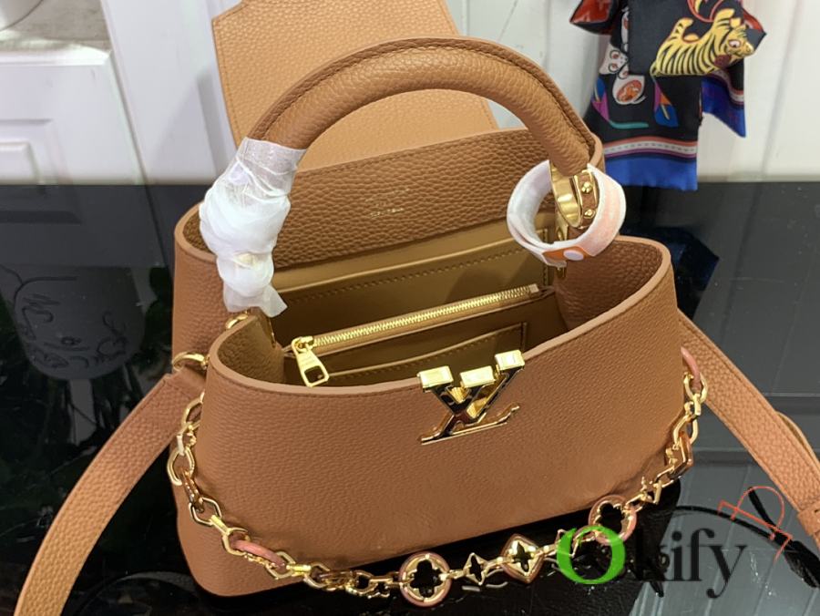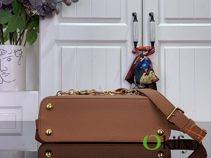 Okify Louis Vuitton Capucine Bag In Brown With Floral Chain M14381 27x17.3x9cm