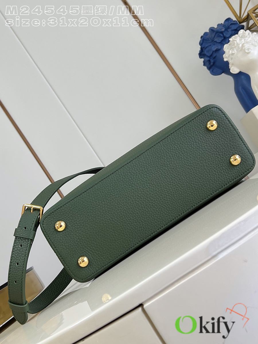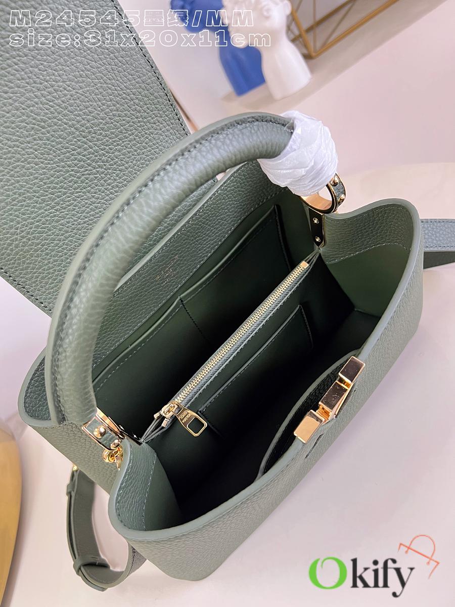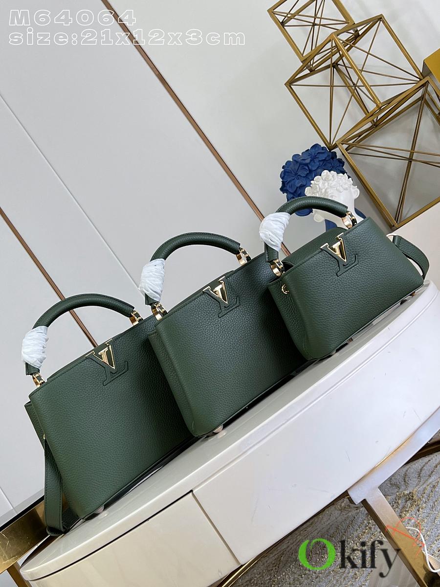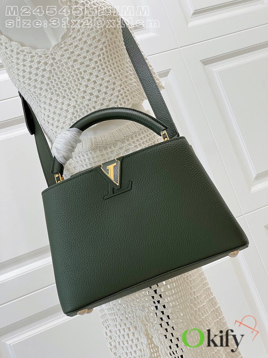 The Capucines medium handbag was launched in 2013, named after the Parisian street where Louis Vuitton first opened its store in 1854. It features full-grain Taurillon calfskin leather with a classic flap: an exterior adorned with blooming Monogram flowers, and an interior with leather-covered LV monogram. Its compact design is suitable for various dimensions